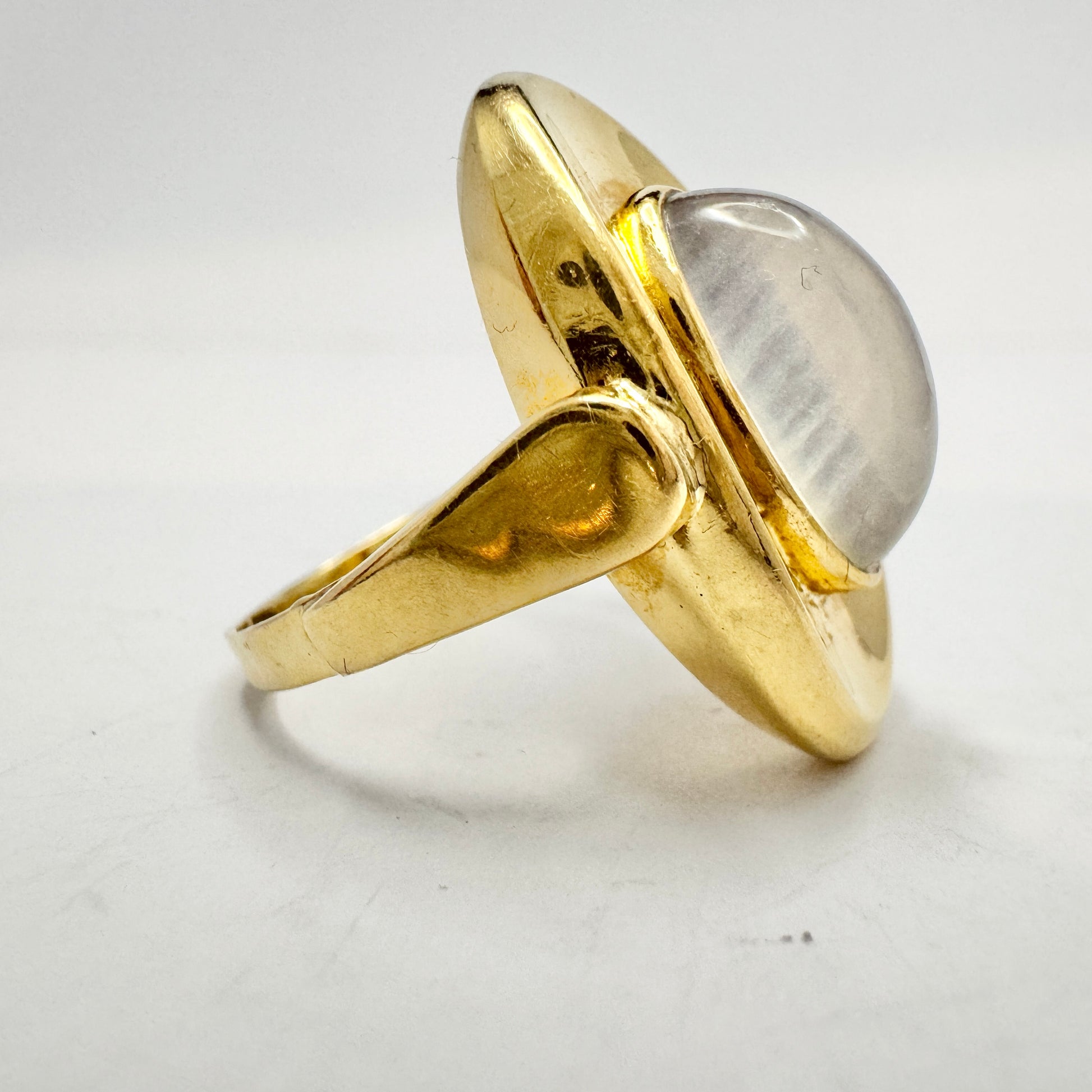 素晴らしい、非常に人気のあるヴィンテージ 18k ゴールド ムーンストーン リング。18k ゴールドの刻印が完全に入っています。メーカーは Kaplan、スウェーデン ストックホルム、1960 年。