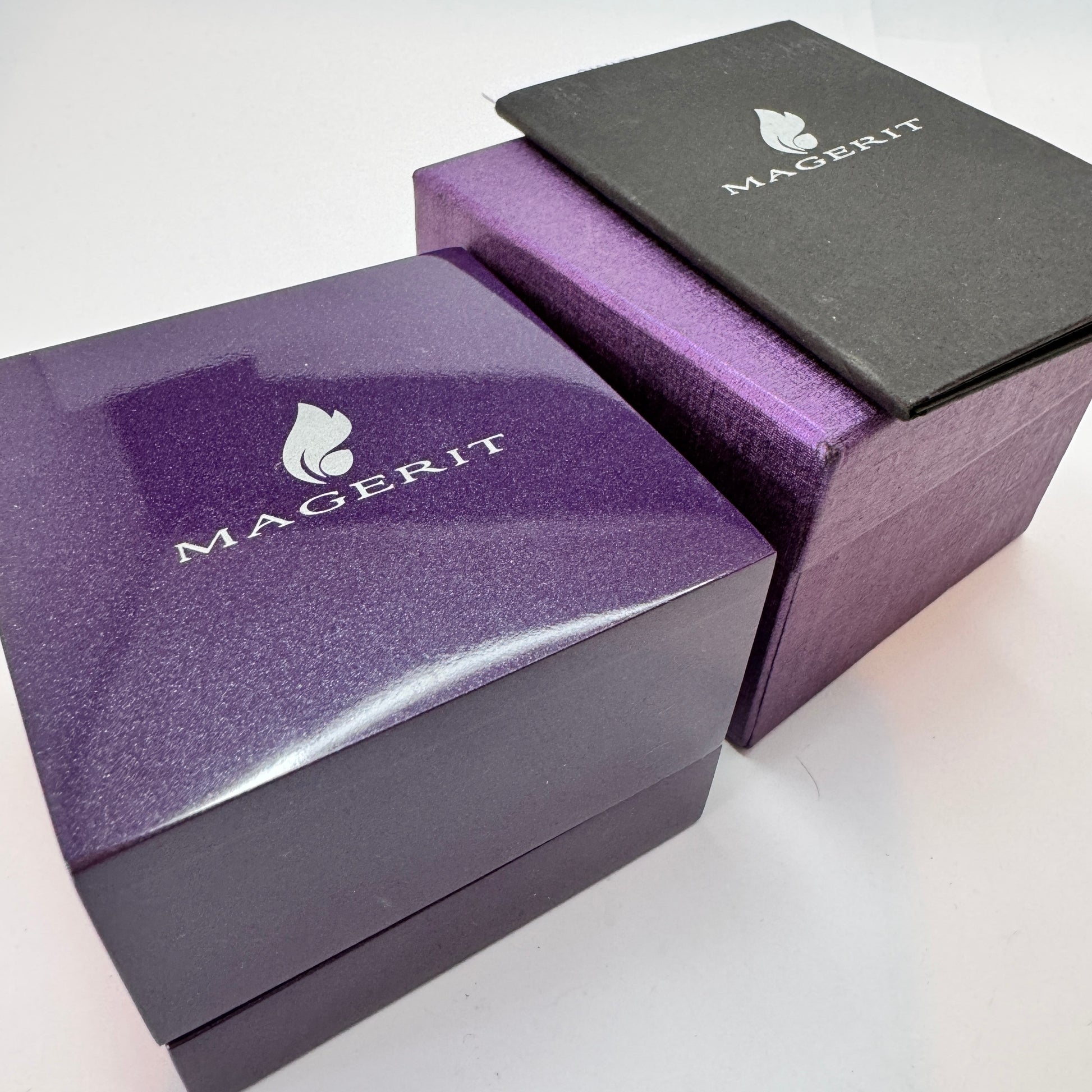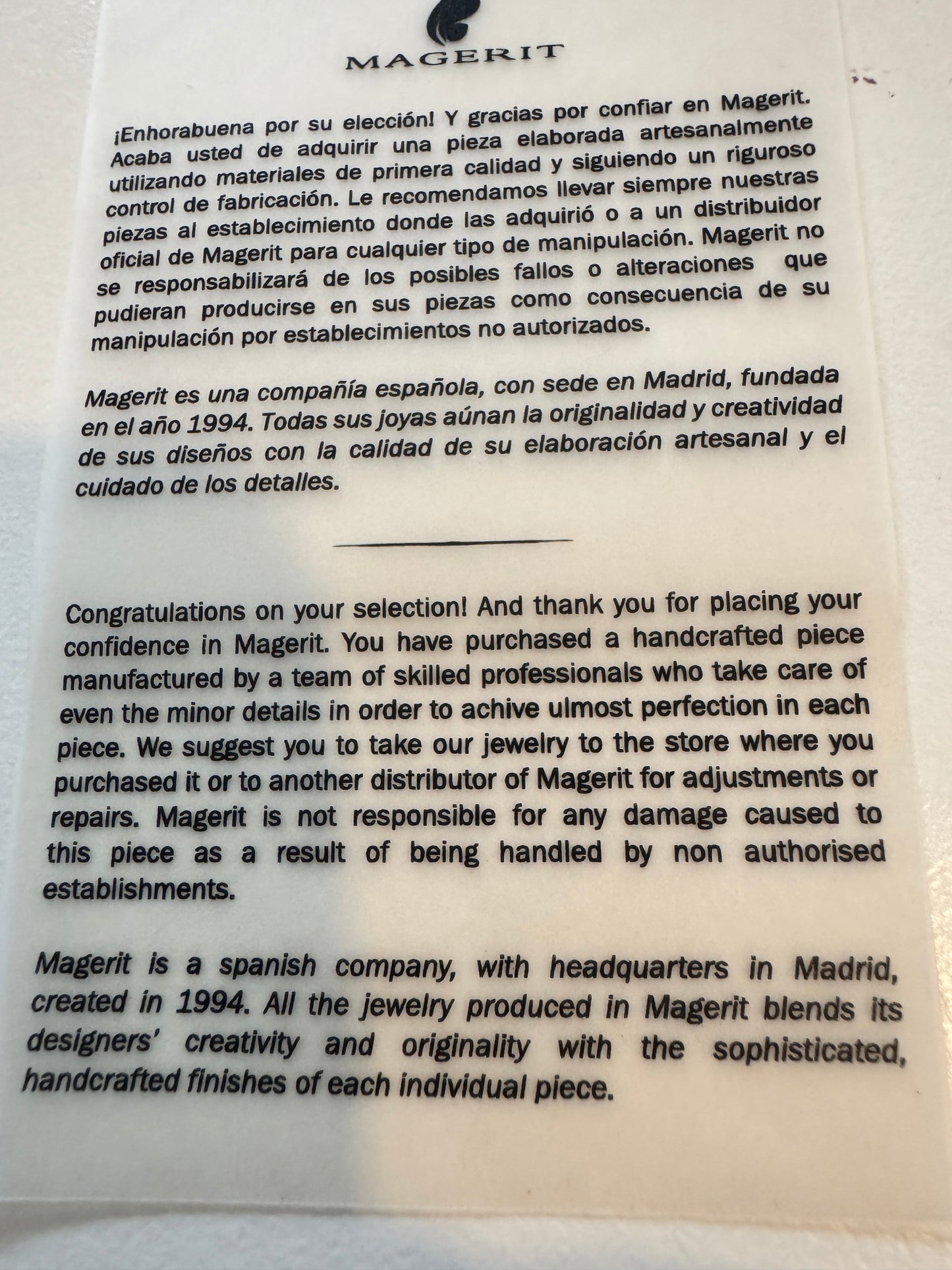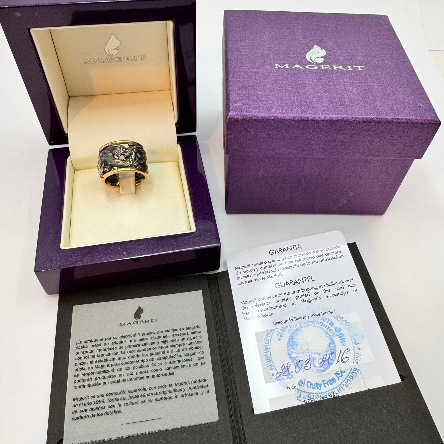 素晴らしい 18K ゴールド スターリング シルバー オレンジ ファイア サファイア (目) リング。18K ゴールドの刻印と Magerit シリアル番号が刻印されており、2016 年の認定保証書にも同じ番号が記載されています。オリジナル ボックス入り。