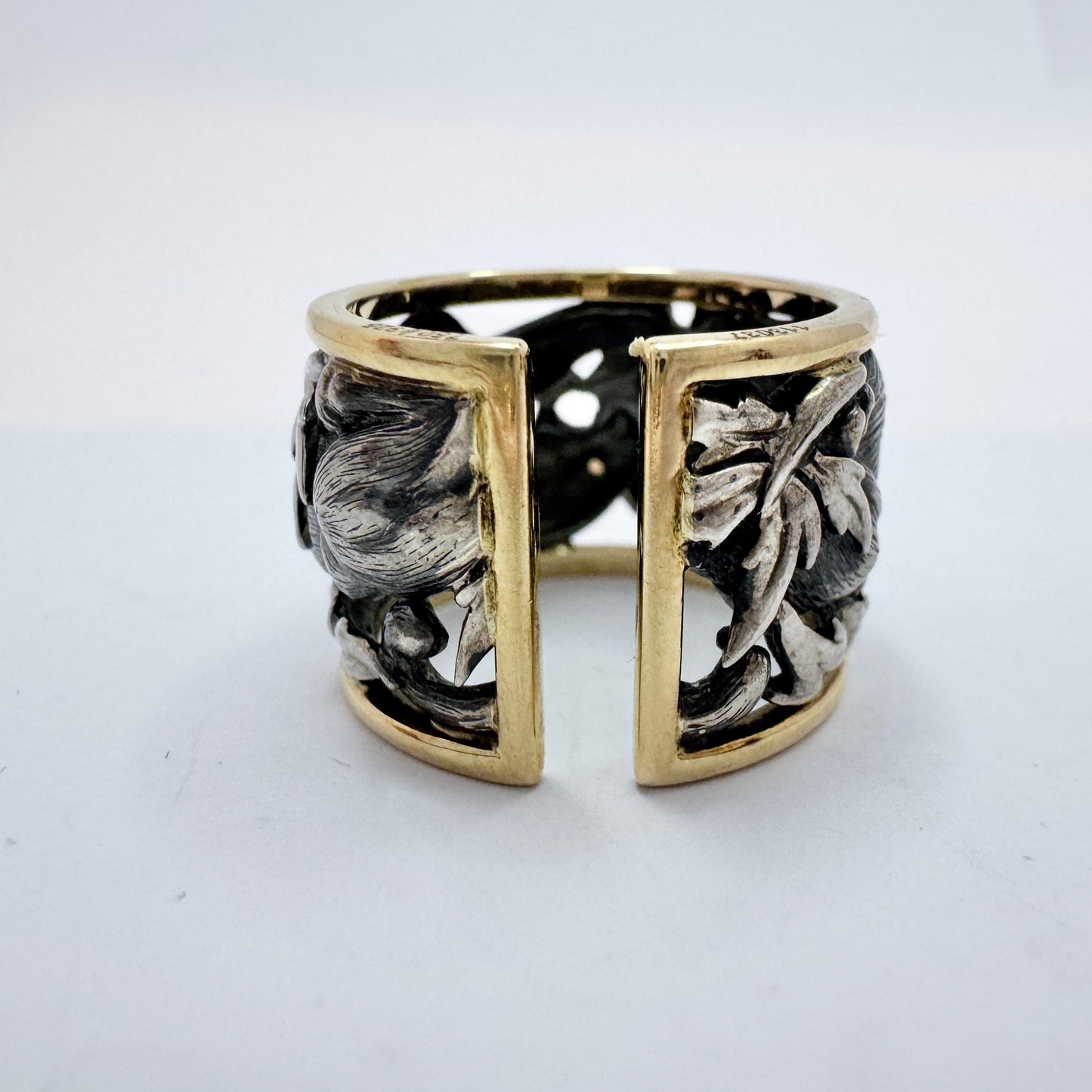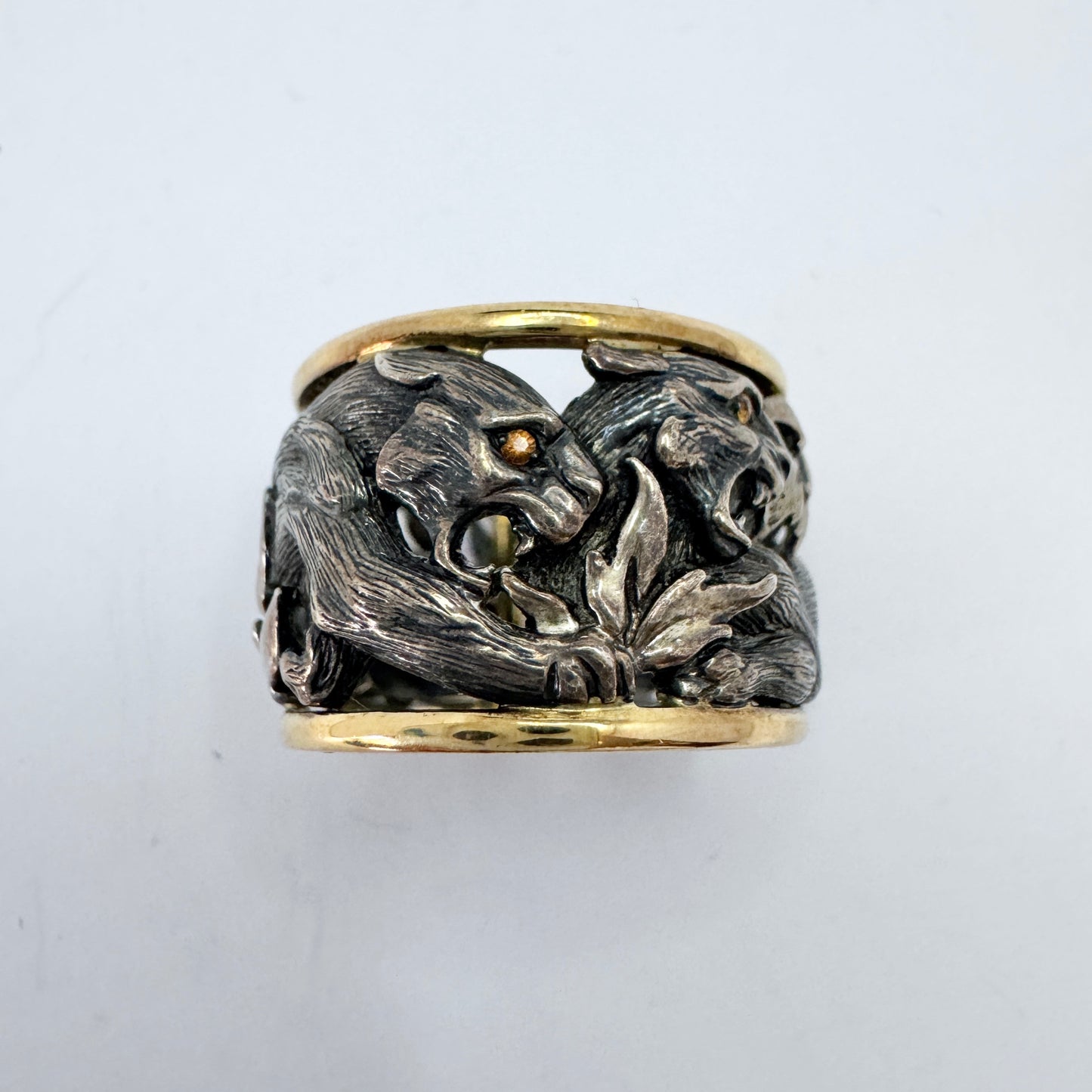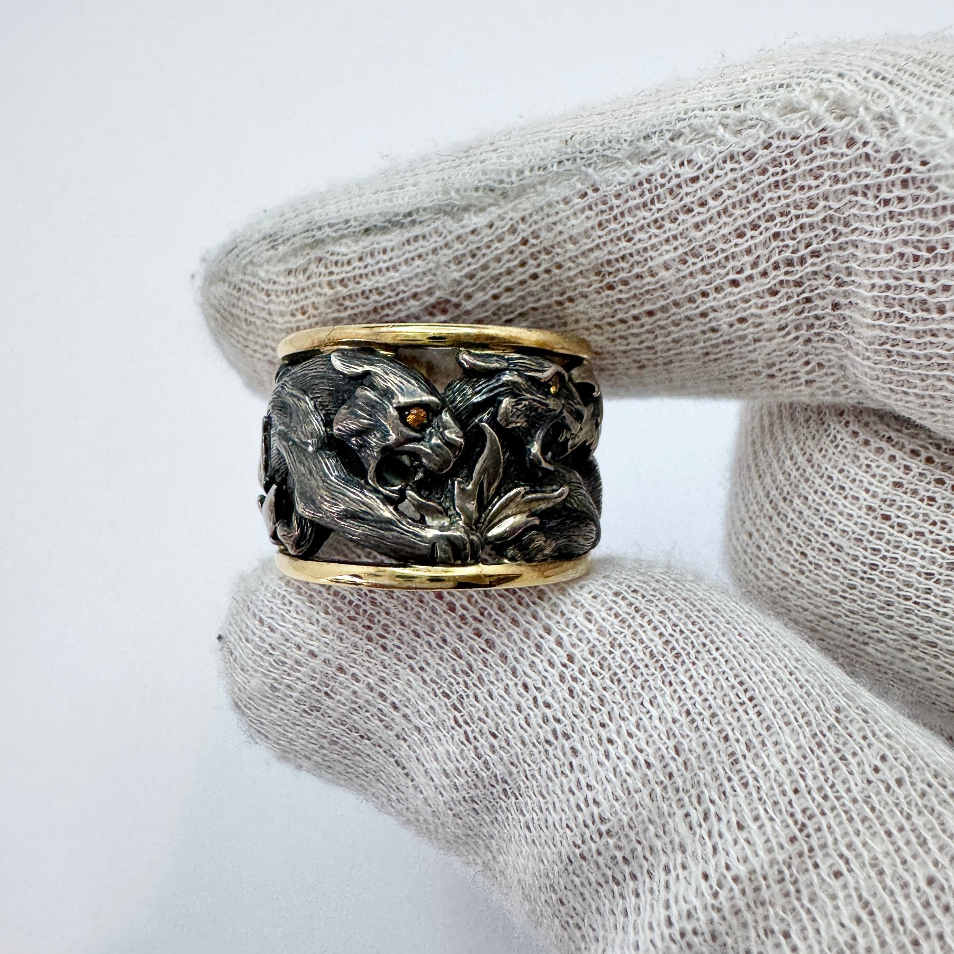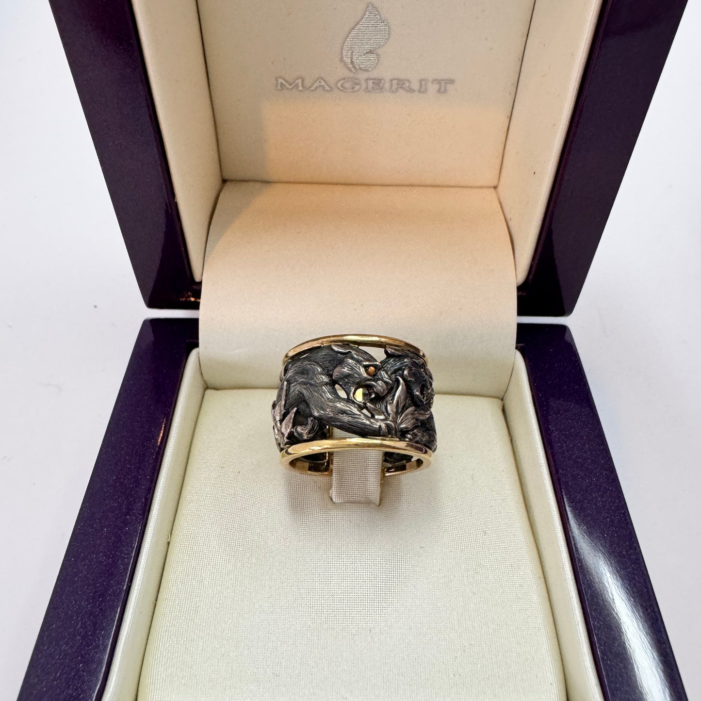 マゲリット、マドリード、スペイン。18K ゴールド スターリング シルバー サファイア プーマ リング。
