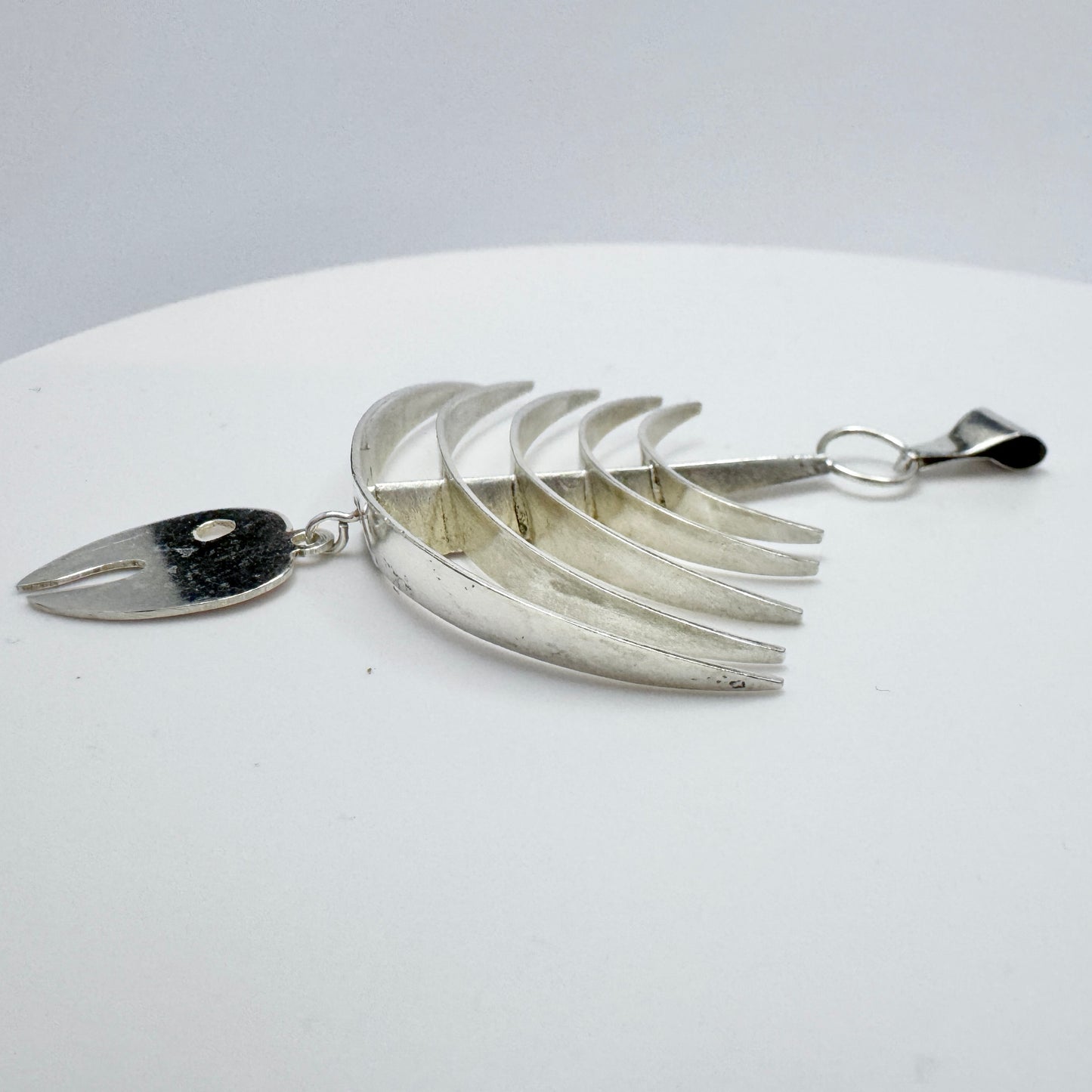 メキシコ、1950~60年代頃。ビンテージ スターリング シルバー フィッシュ ボーン ペンダント。