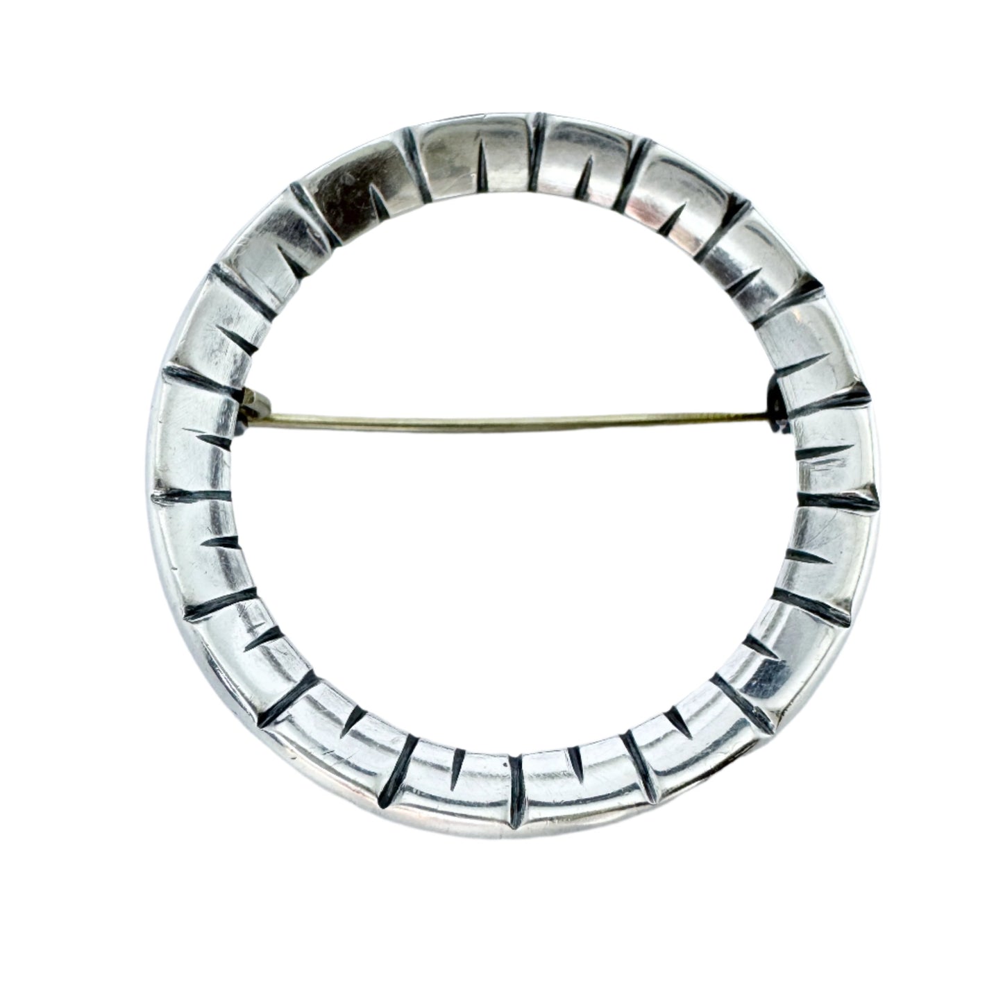 美しく希少なビンテージのスターリングシルバーのブローチ。人気のミシェルセン社 (スウェーデン、ストックホルム) の 1948 年製で、完全な刻印があります。