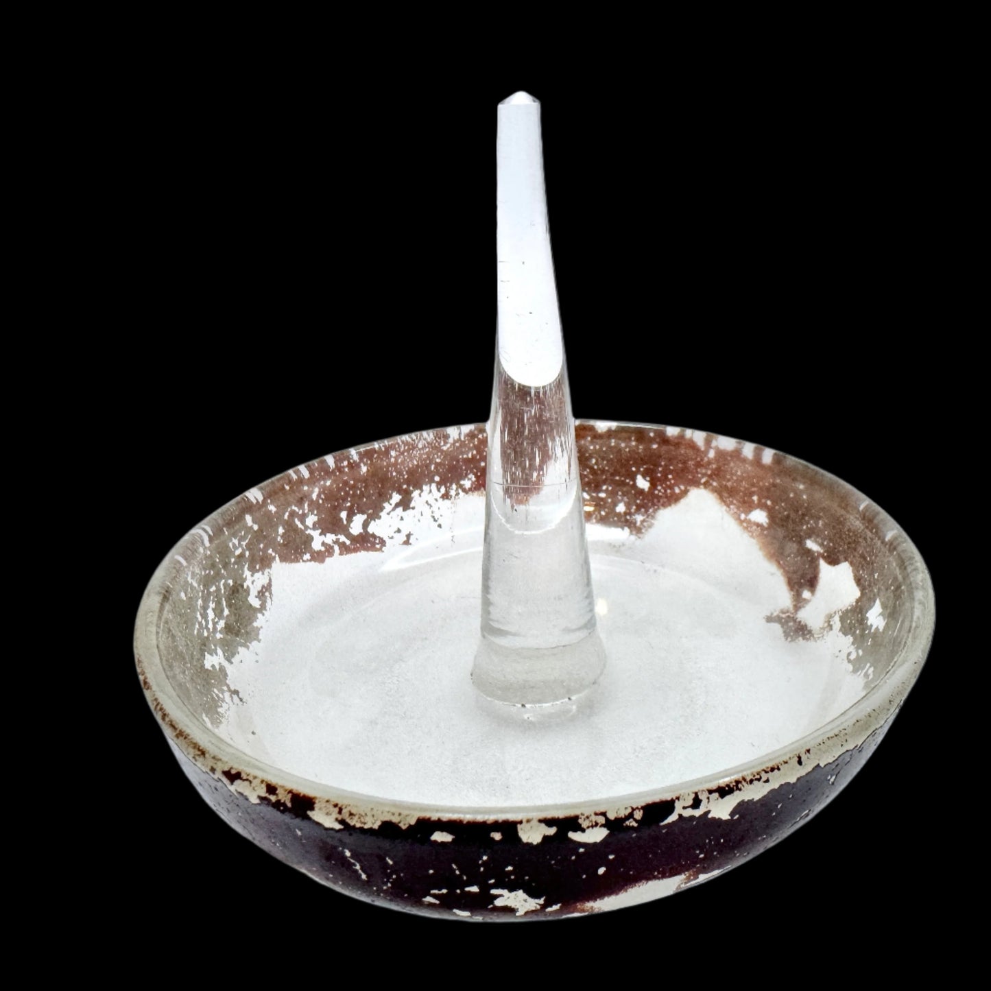 魅力的なビンテージの曇りガラス エナメル リング ホルダー。刻印はないようである。ヨーロッパ大陸、1940 年代から 1950 年代頃。