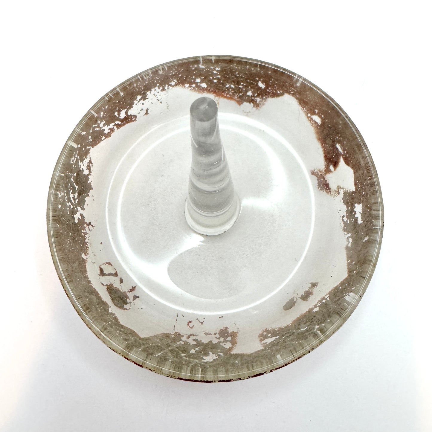 1900 年代半ばのすりガラスのエナメル製リングホルダー皿。