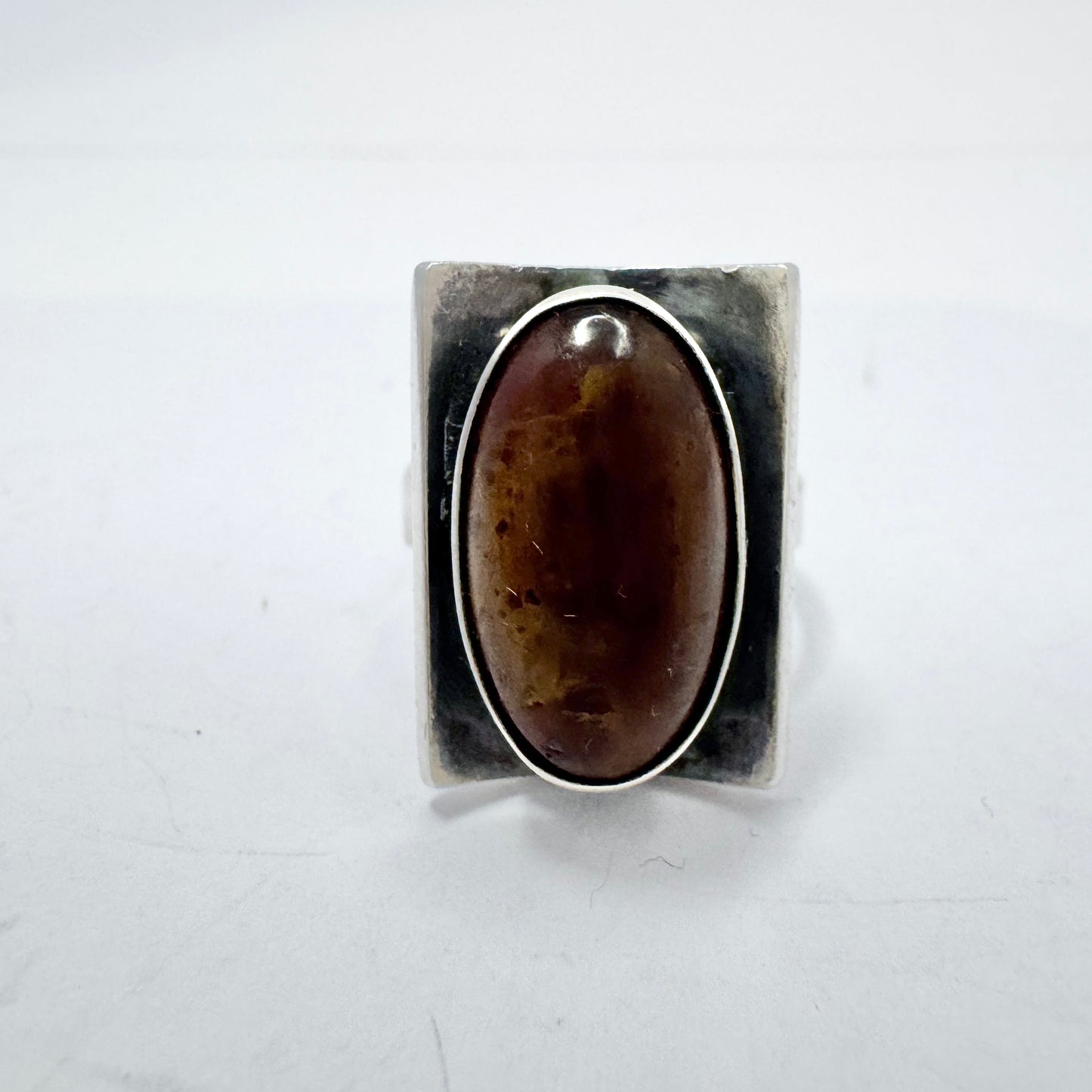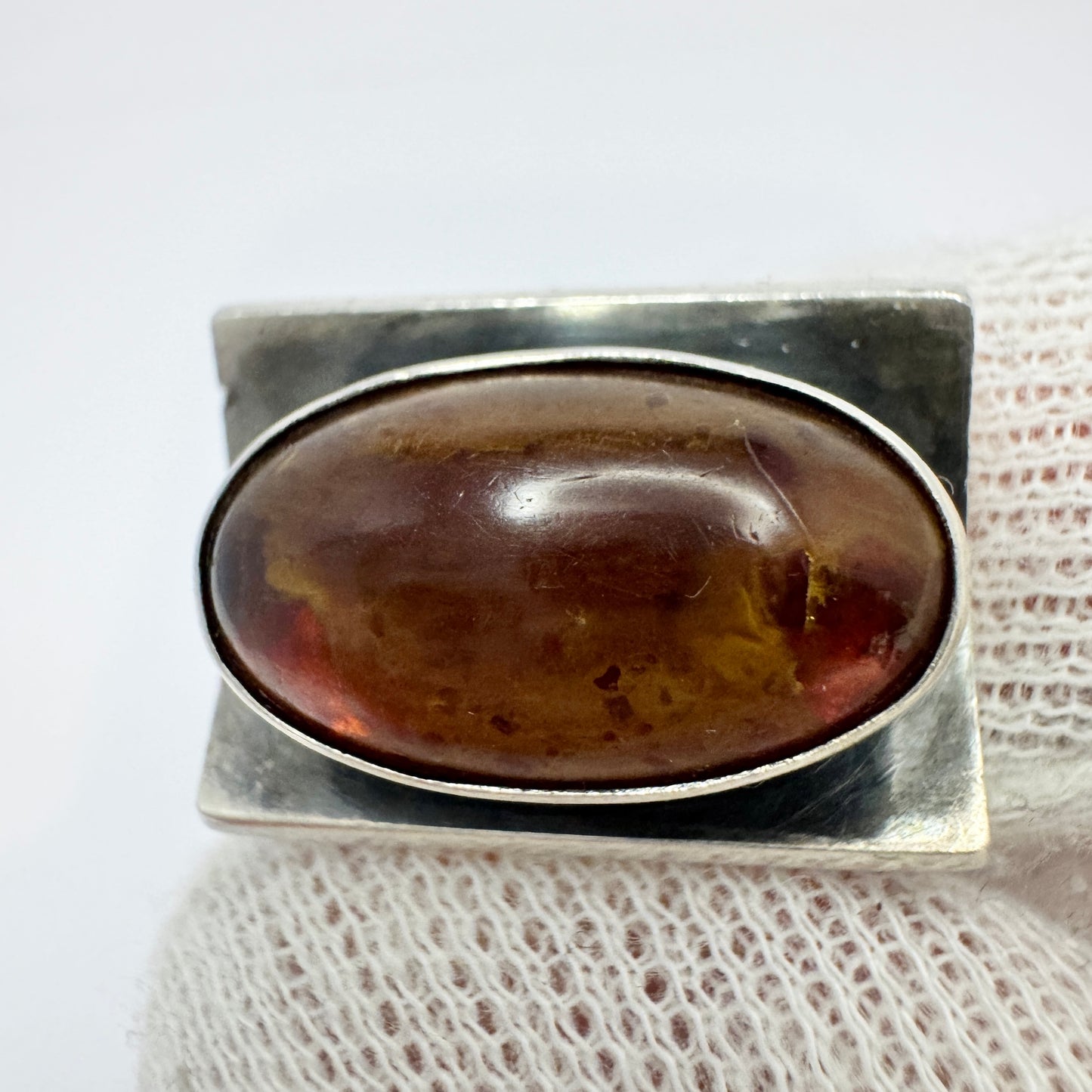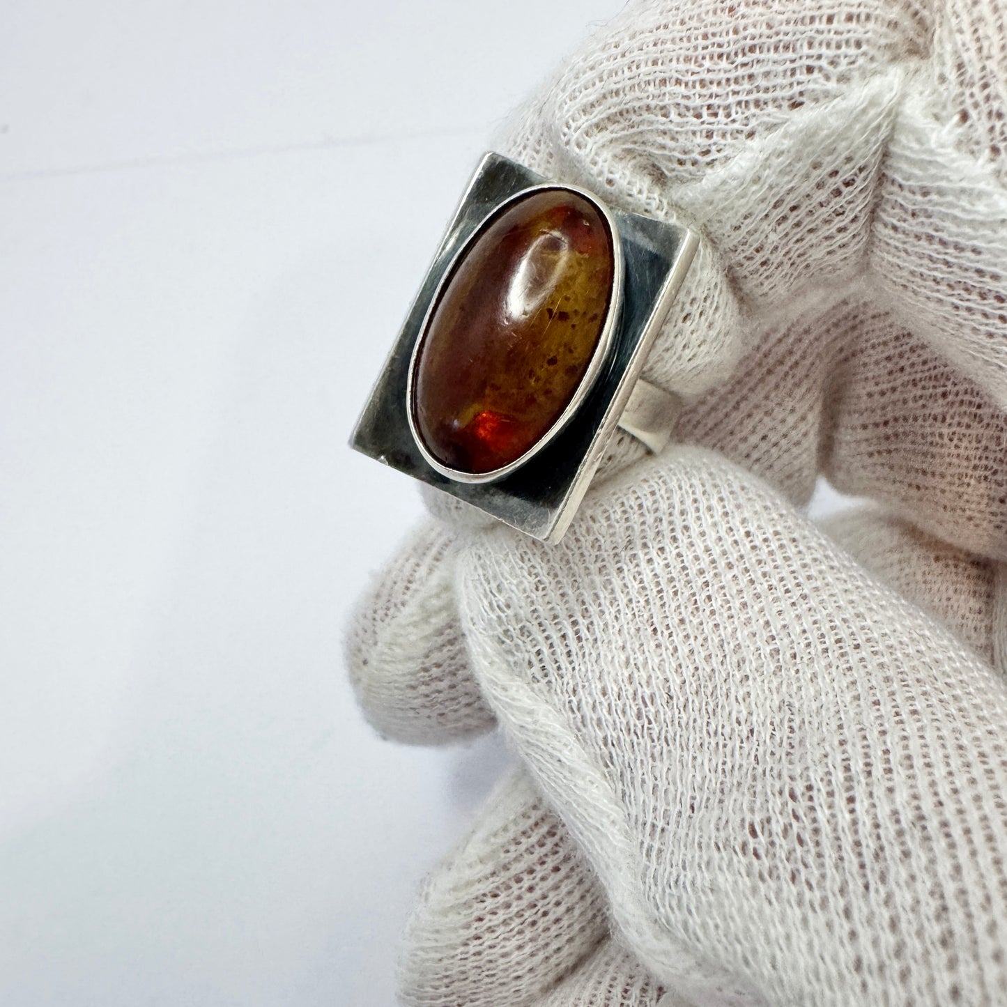 Niels Erik 作、デンマーク、1960 年代。ヴィンテージ スターリング シルバー アンバー リング。