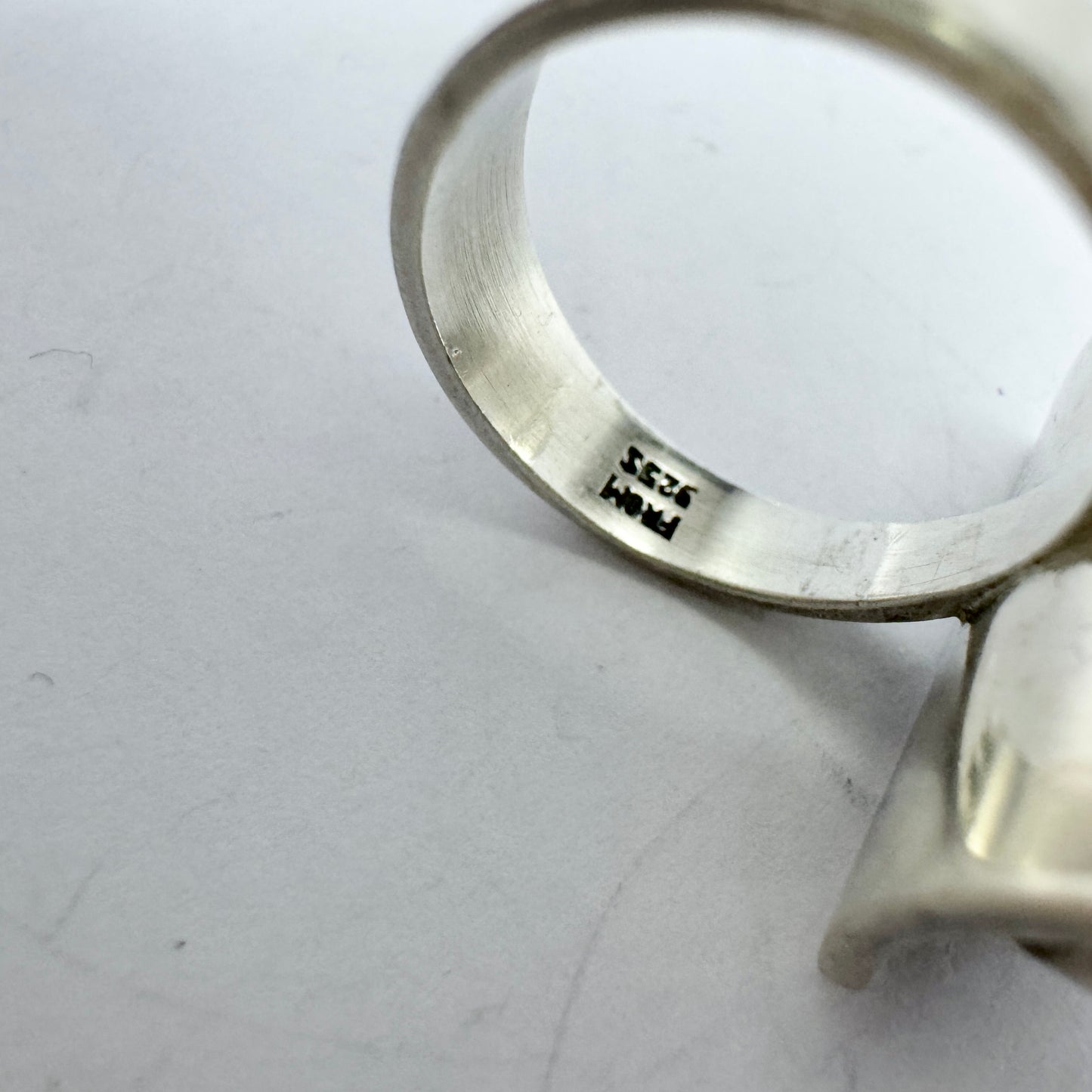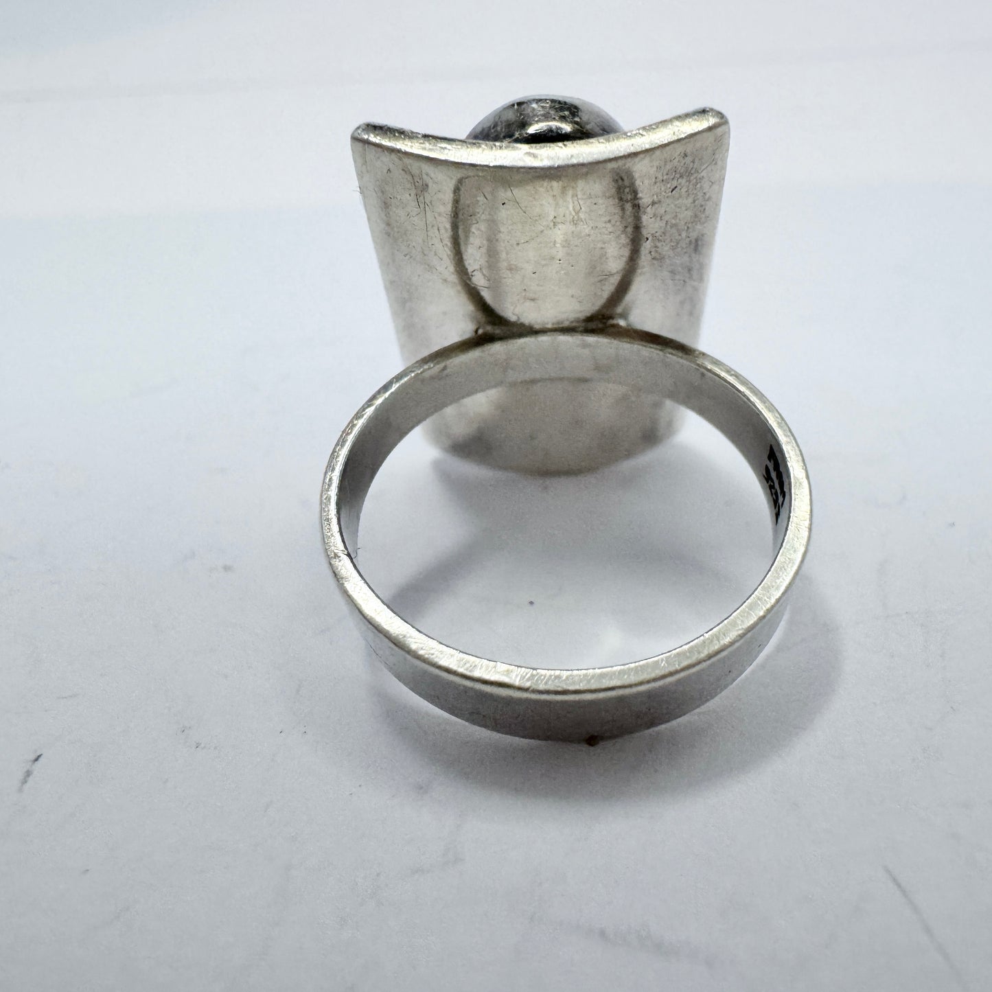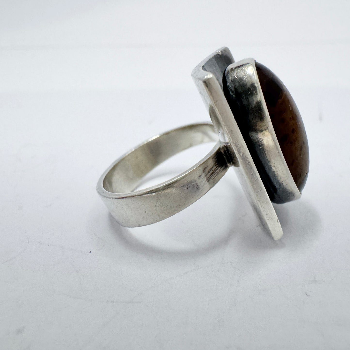 Niels Erik 作、デンマーク、1960 年代。ヴィンテージ スターリング シルバー アンバー リング。