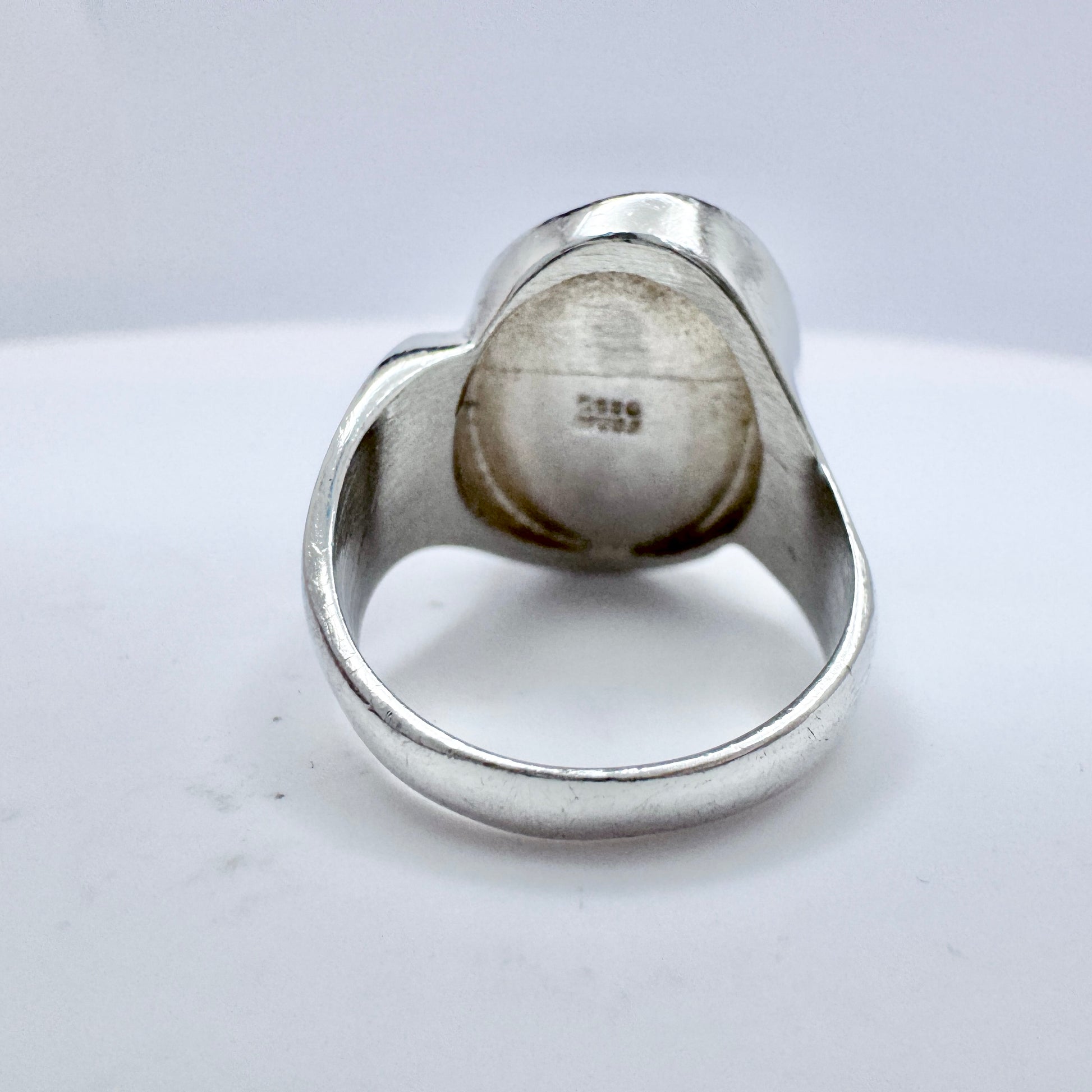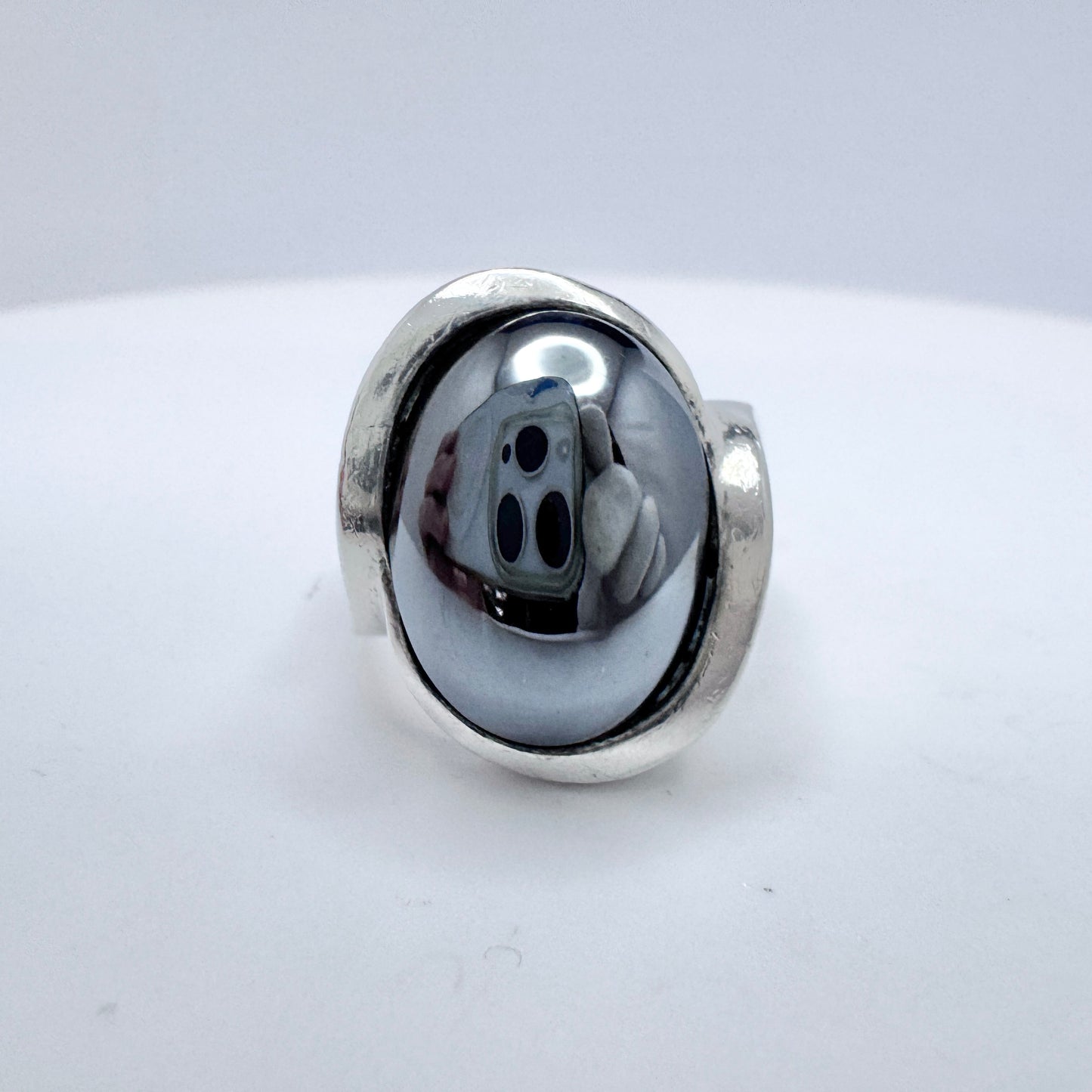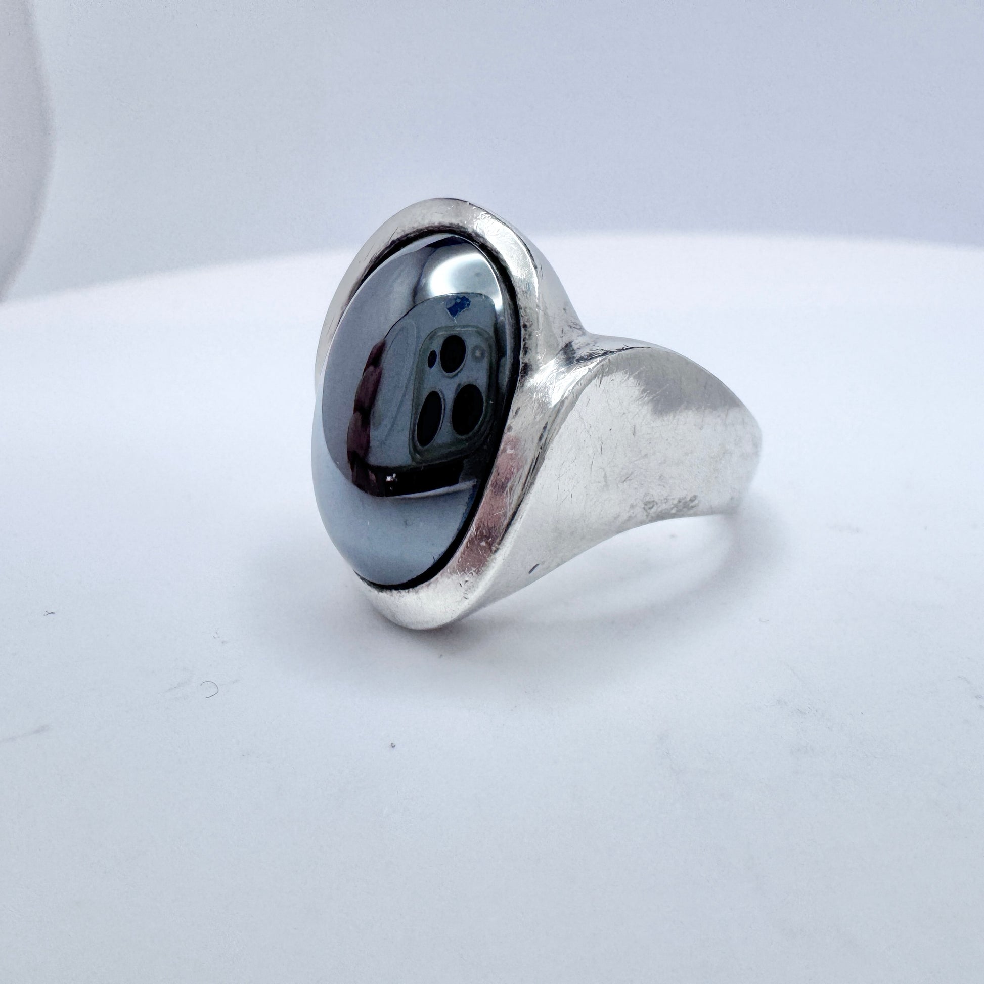 Wonderful and rare vintage sterling silver hematite ring. Hallmarked for sought after Niels Erik From, Denmark ca 1960s.
