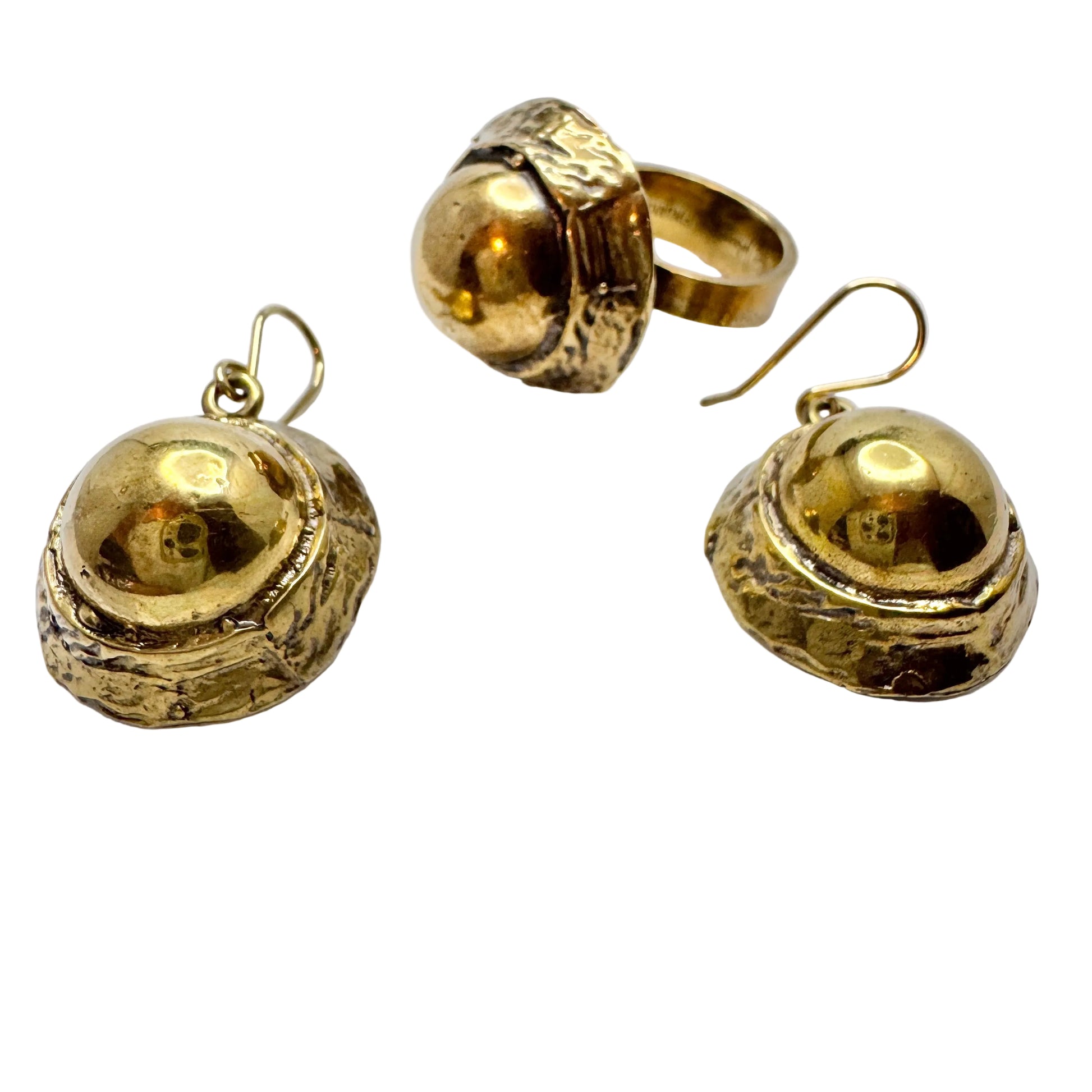 Owe Johansson, Finland c 1970s. Bold Vintage Bronze Ring + Earrings.