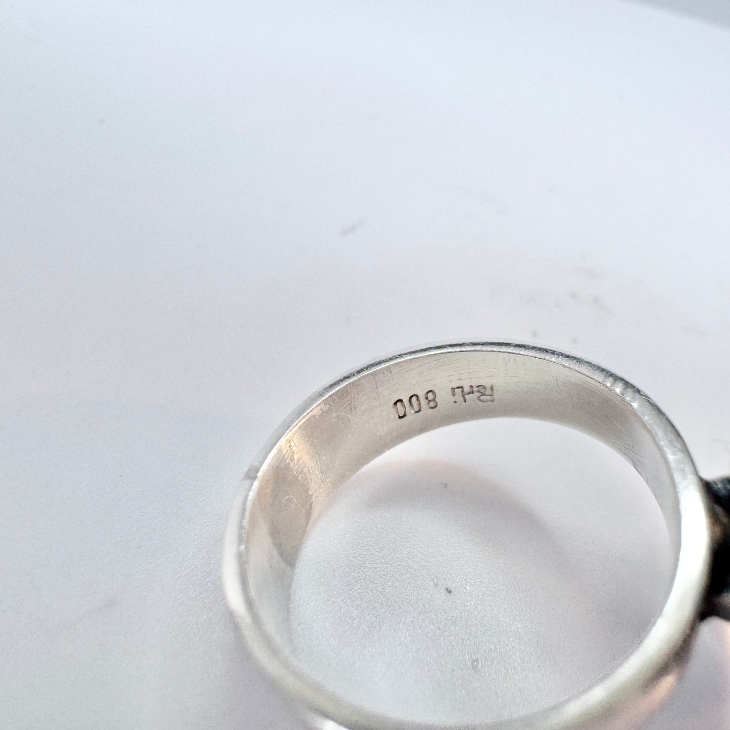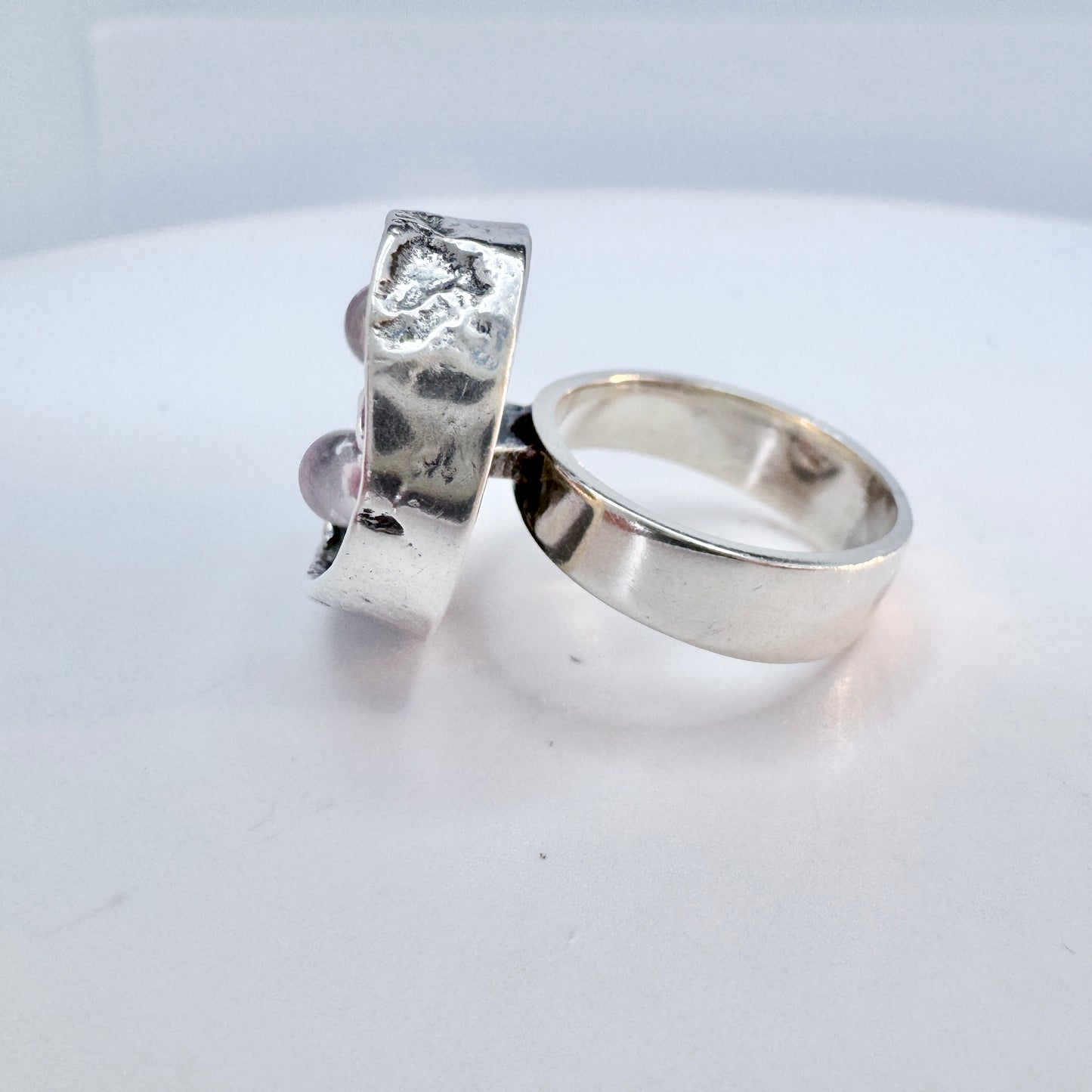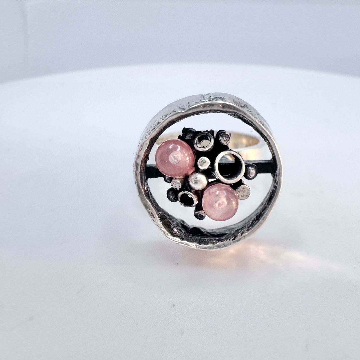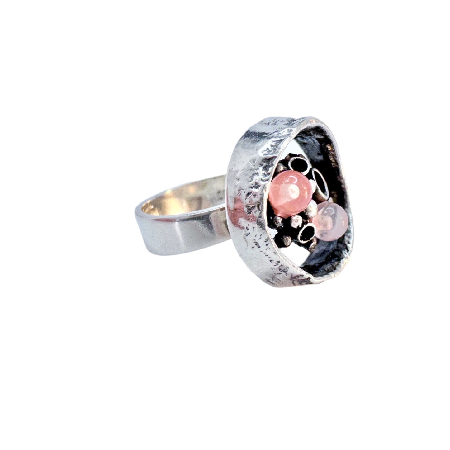 Wonderful and rare solid silver and rose quartz ring. Hallmarked for 800 silver, sought after Perli, Germany 1970s.
