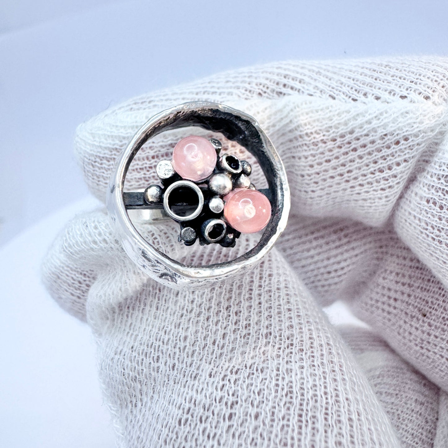 Perli, Germany 1970s. Vintage Modernist Rose Quartz Silver Ring