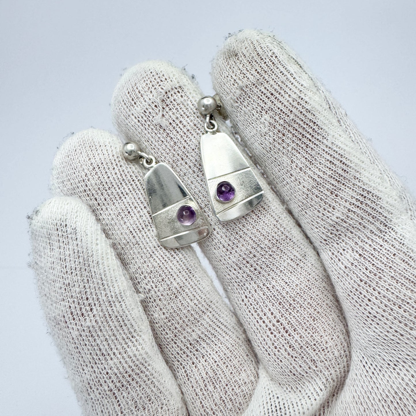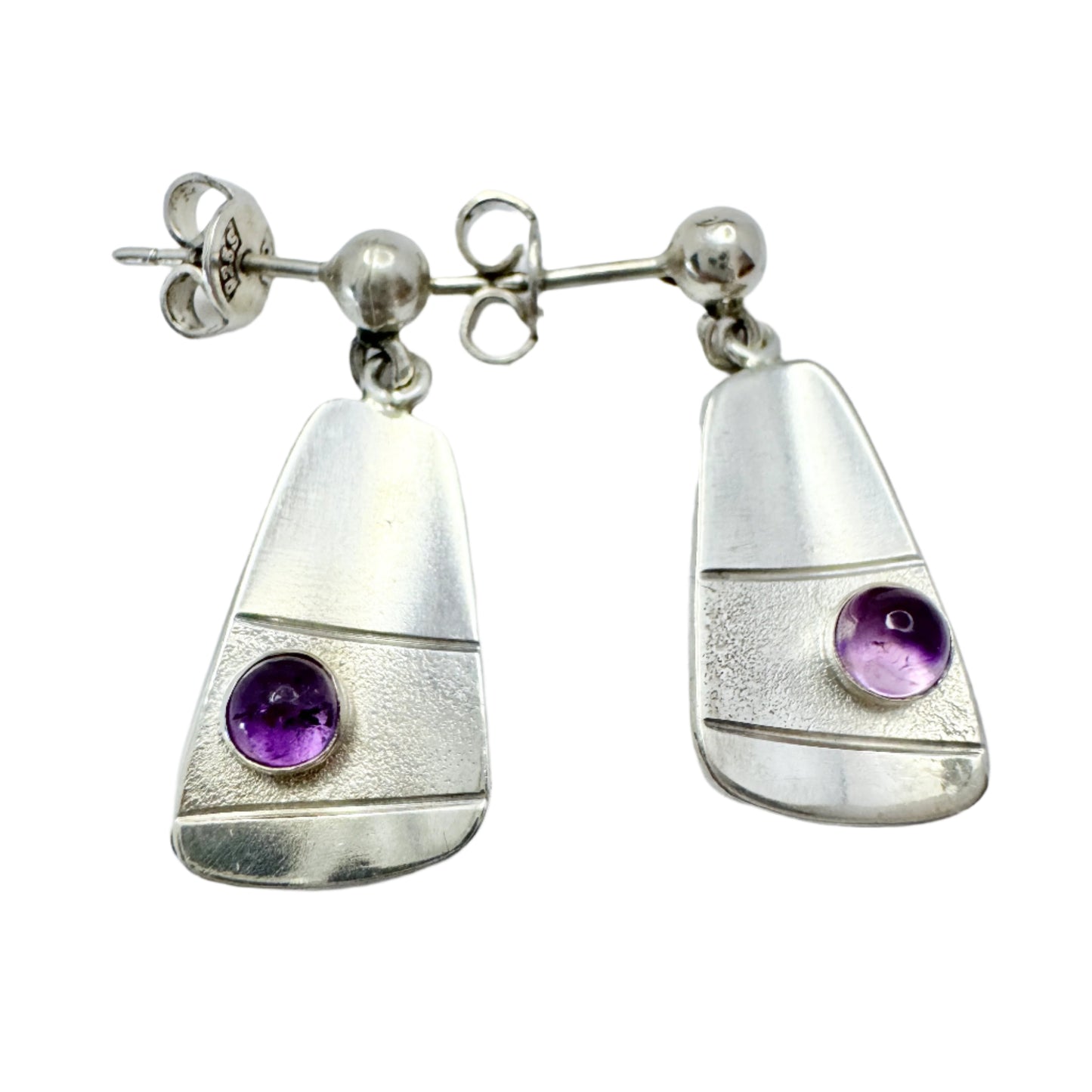 R Tennesmed、スウェーデン 1959 年。ヴィンテージ スターリング シルバー アメジスト イヤリング。