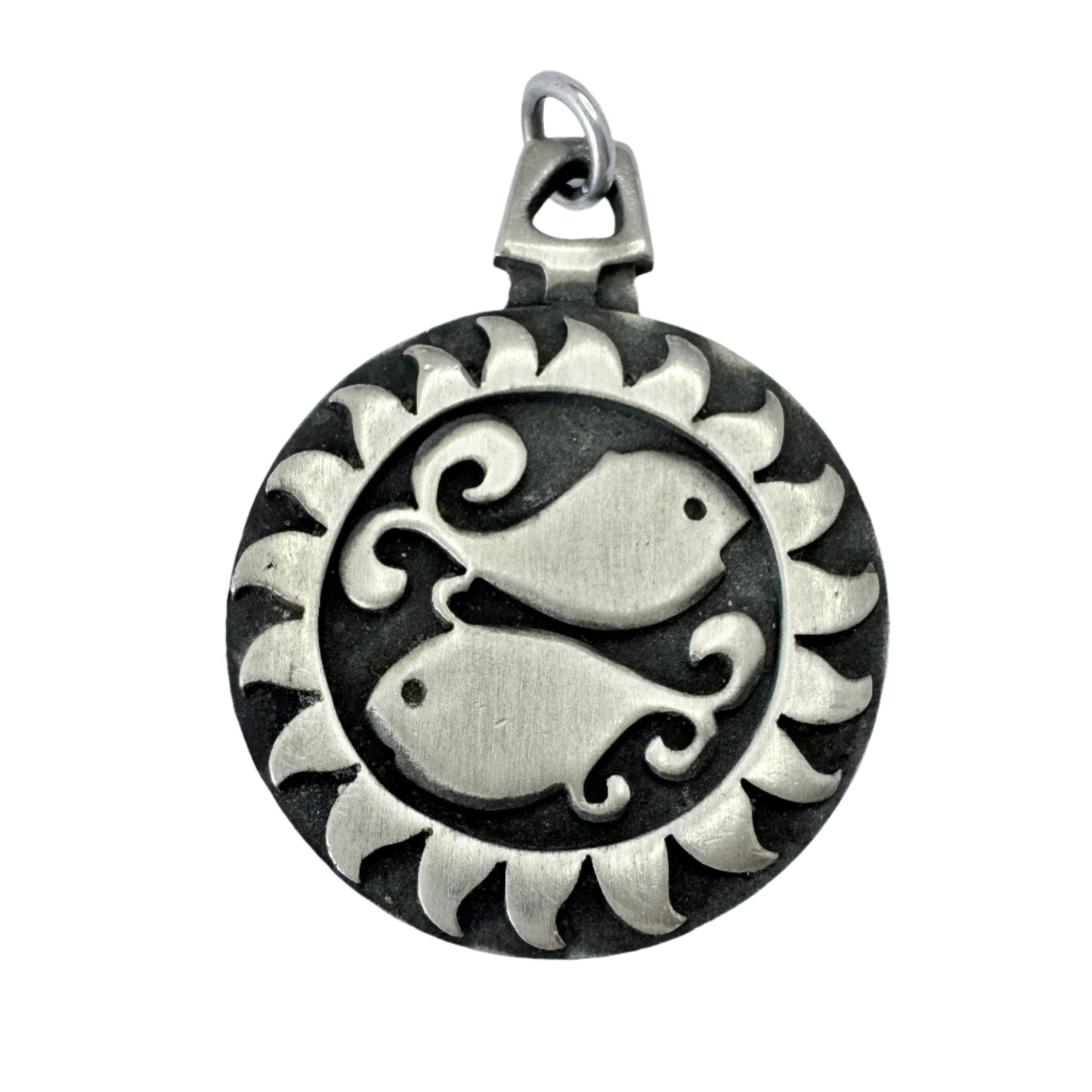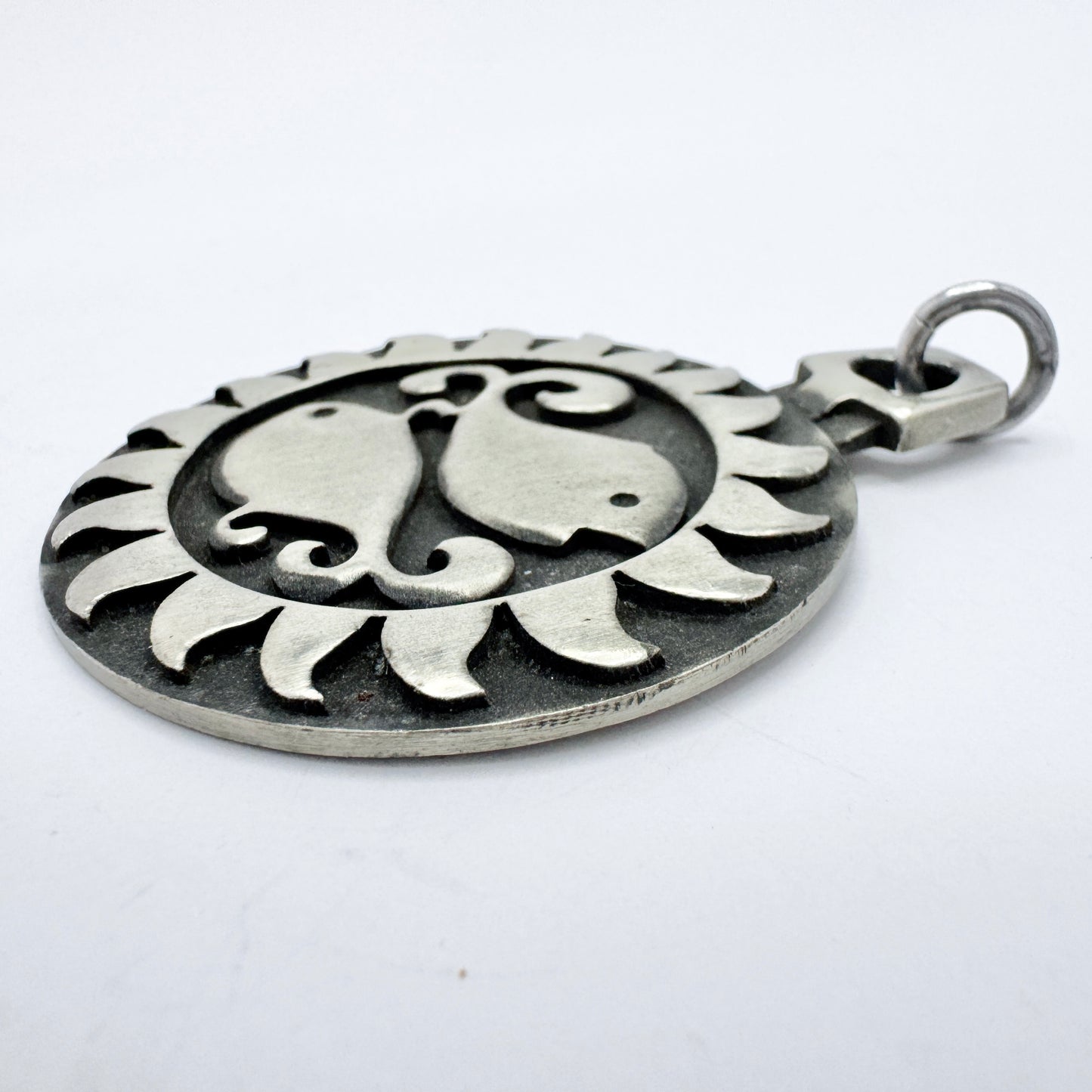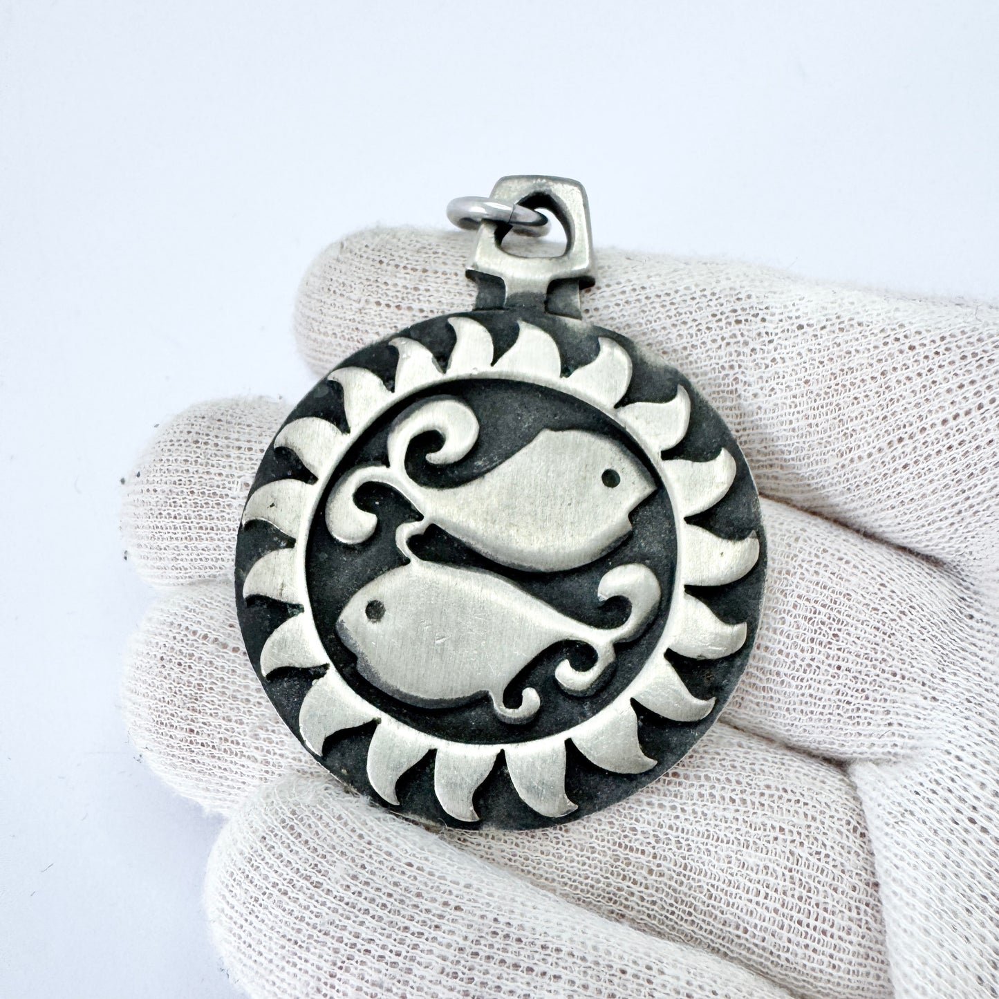 R Tennsmed, Sweden c 1970s. Chunky Vintage Pewter Zodiac Pisces Pendant.
