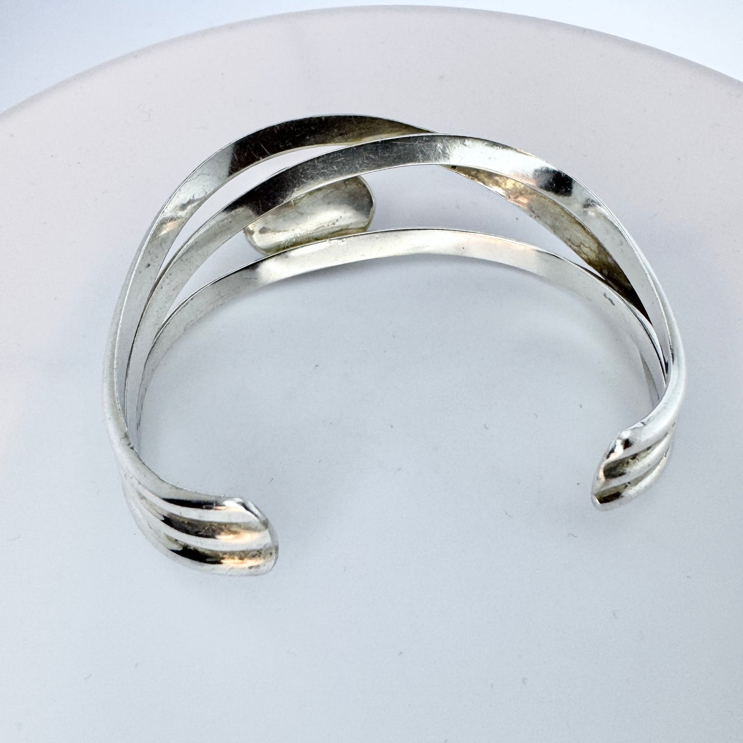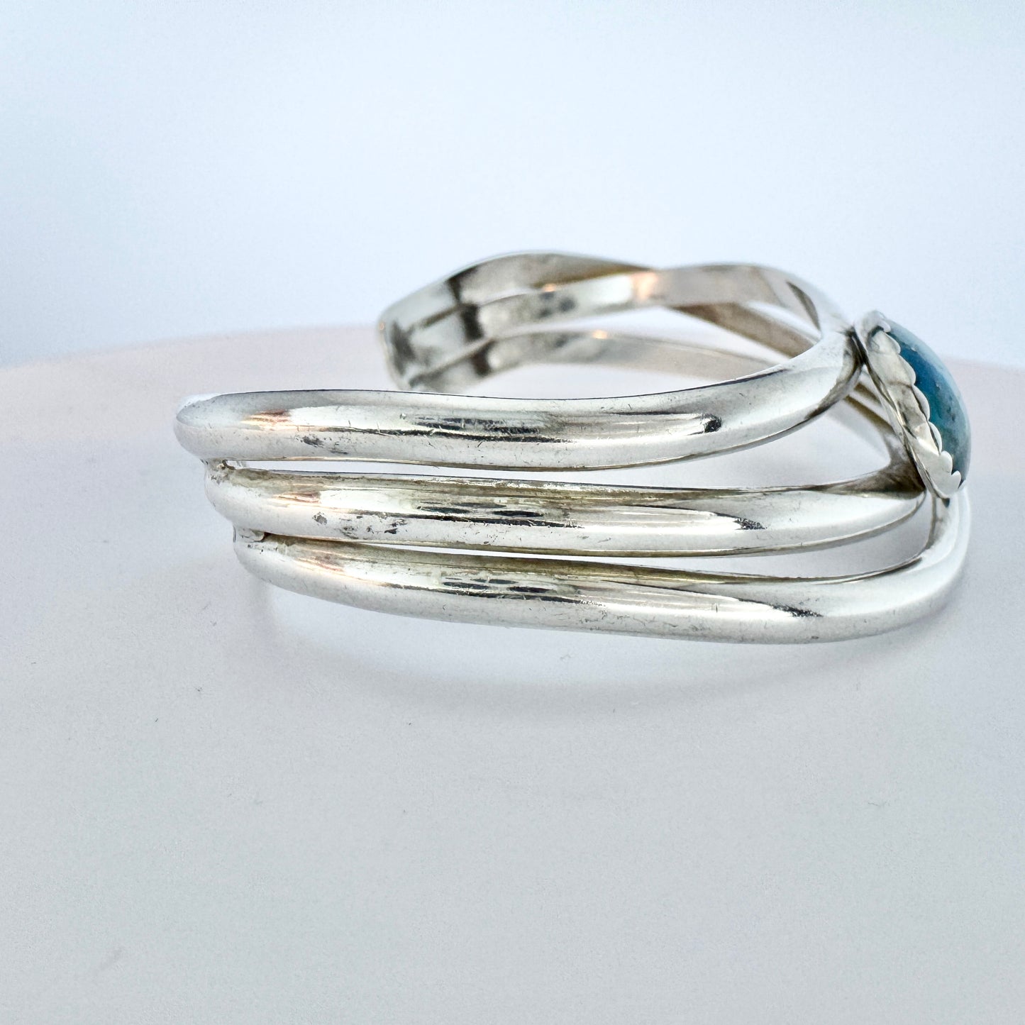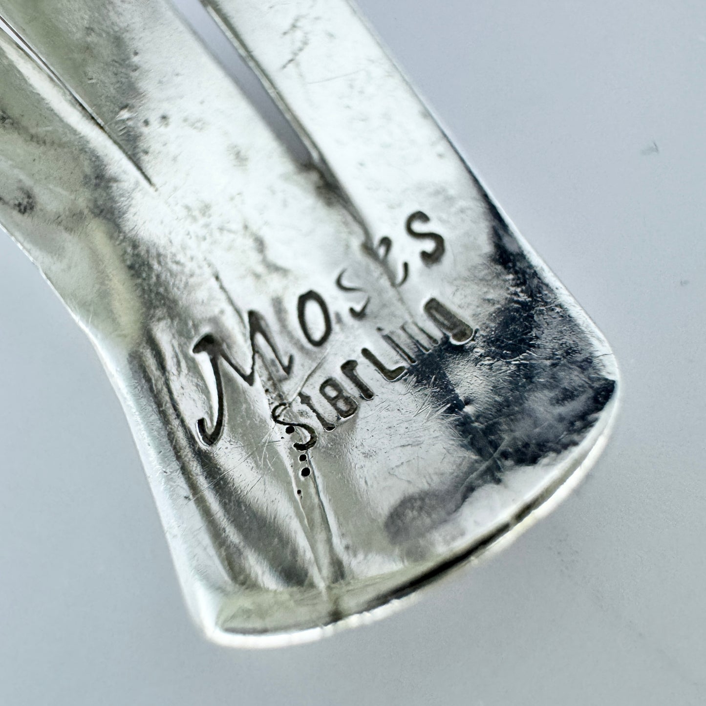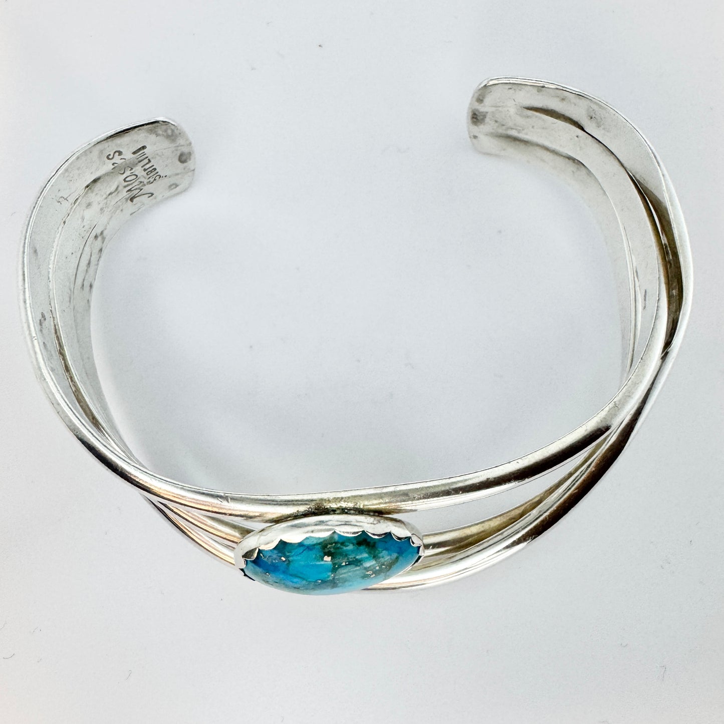 モーゼスのサイン入り、ビンテージ ネイティブ アメリカン スターリング シルバー ターコイズ カフ ブレスレット。