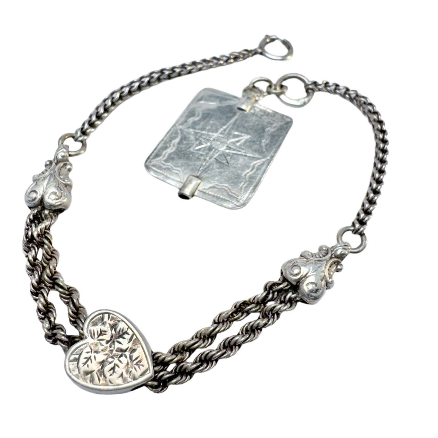 Charming antique solid silver pocket watch key and chain. Key hallmarked for Johan P Ljungström , Sweden between 1808-1830. Bale ring hallmarked for 830 silver, probably Denmark late 1800s. Clasp is later.
