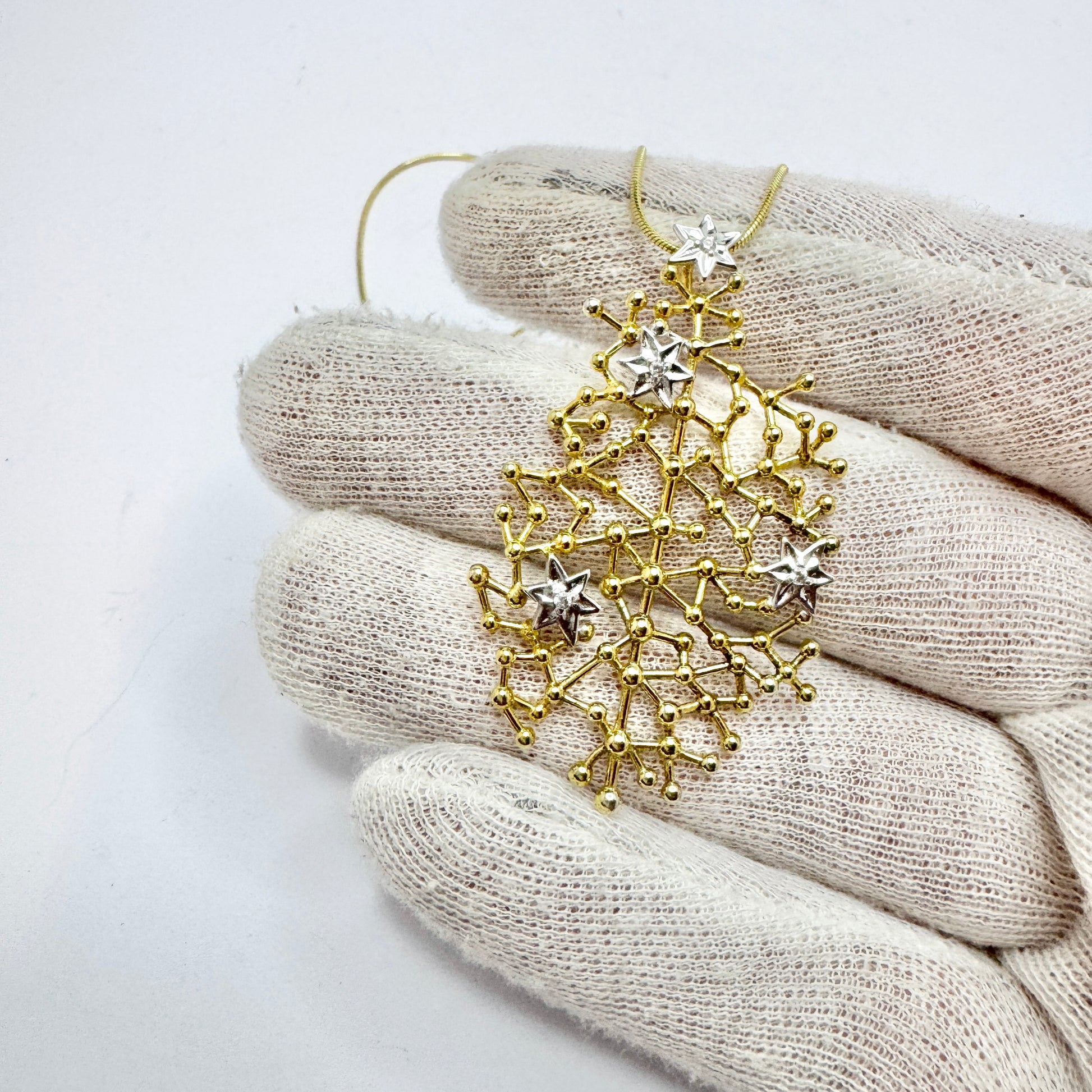 Tapio Wirkkala for Kultakeskus Finland Sterling CZ Pendant Necklace. Starry Sky