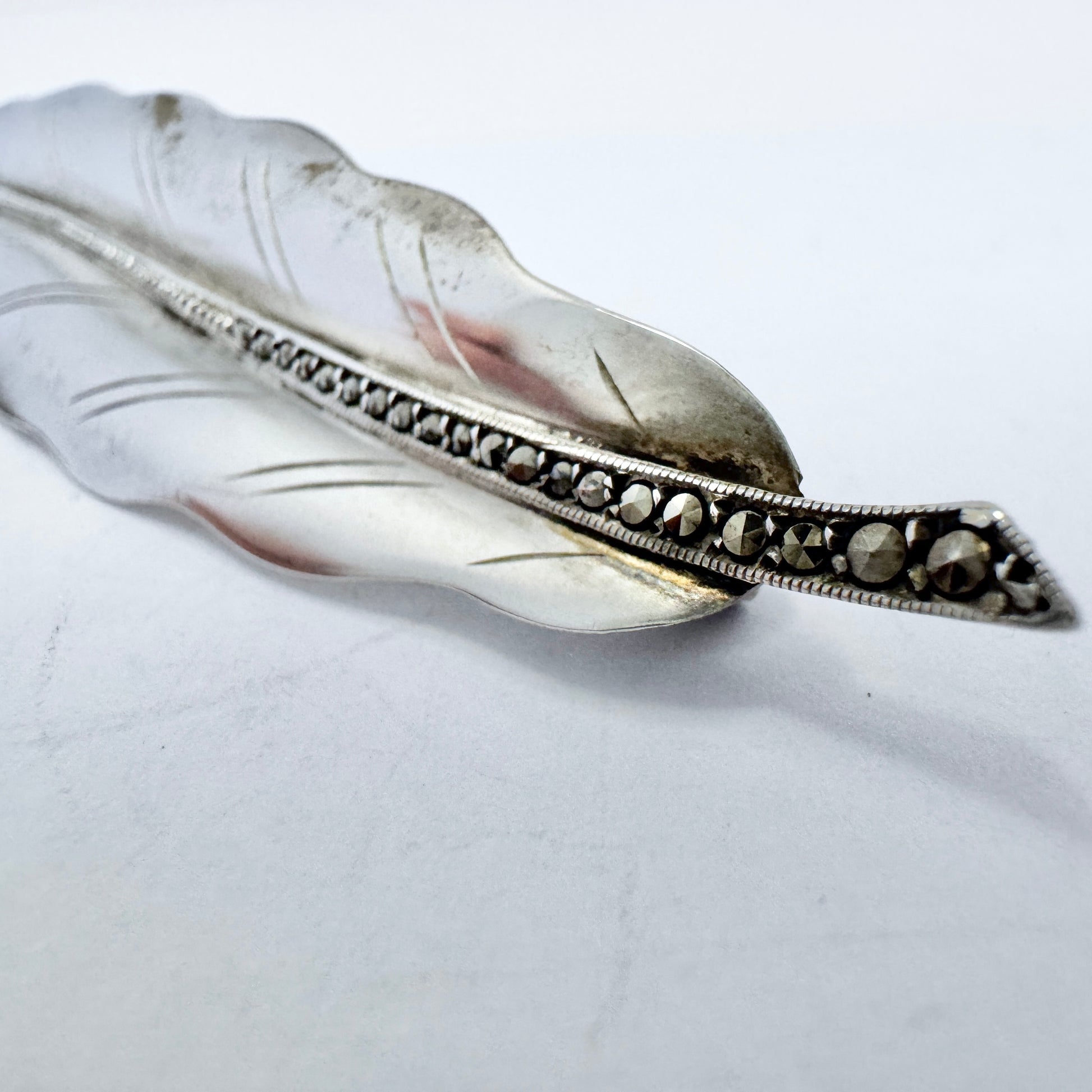 美しいヴィンテージの純銀の葉のブローチ 3 個。そのうち 1 個は白鉄鉱を使用。すべて 1940 年代から 1950 年代のドイツ、Teka Theodor Klotz の刻印入り。