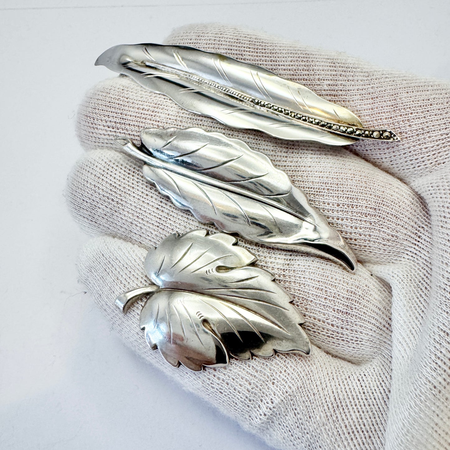 Teka Theodor Klotz、ドイツ、1940 ~ 1950 年代。純銀の葉のブローチ 3 個。