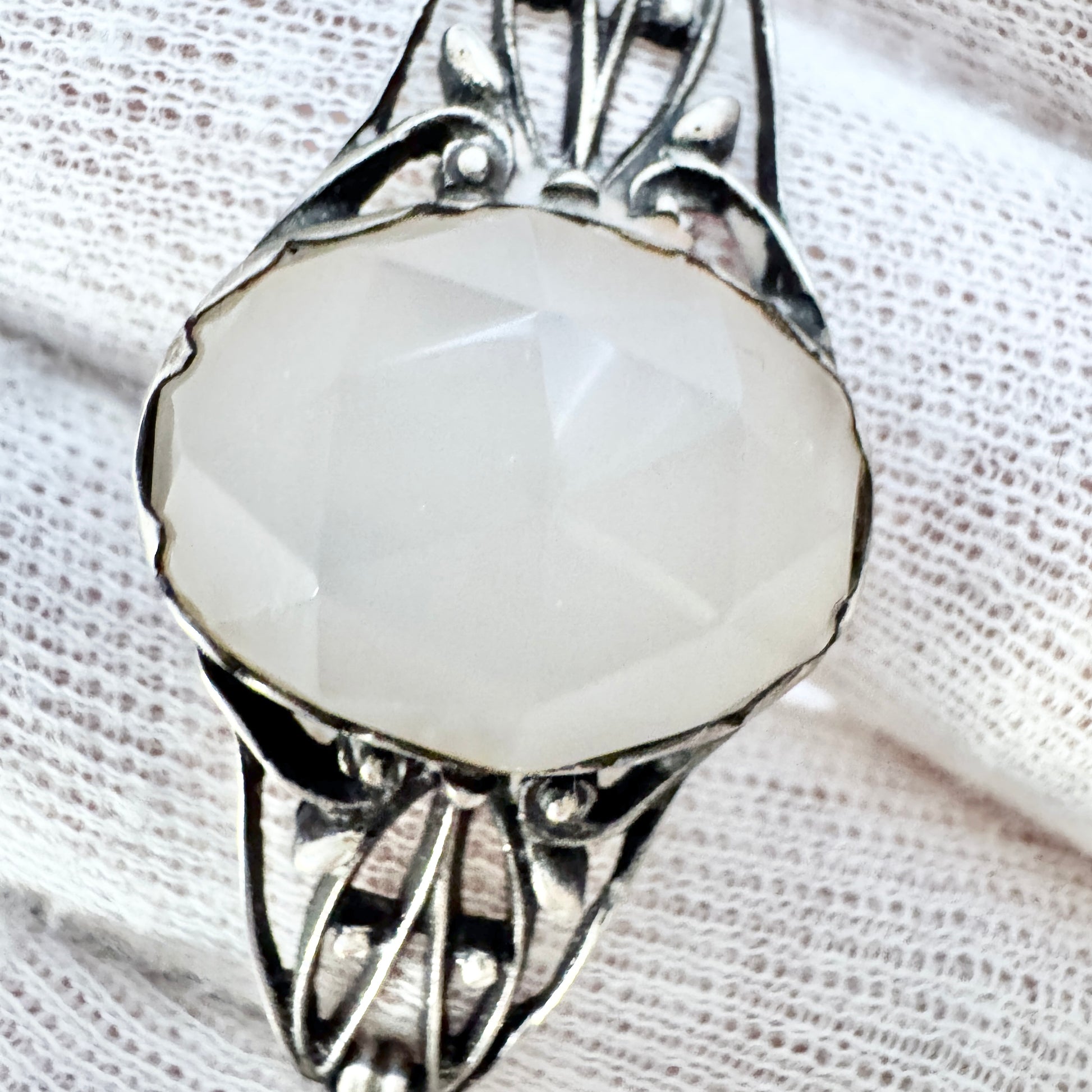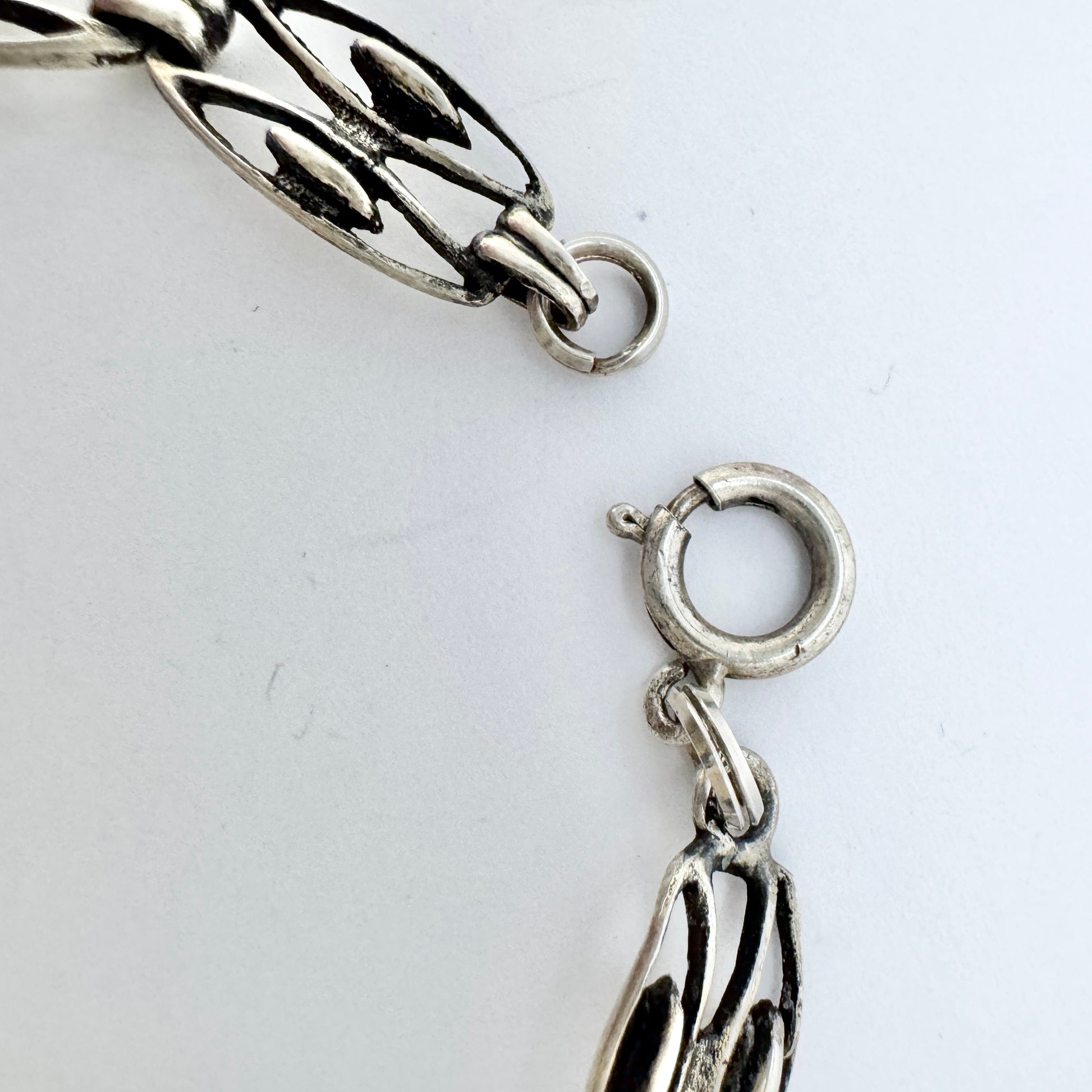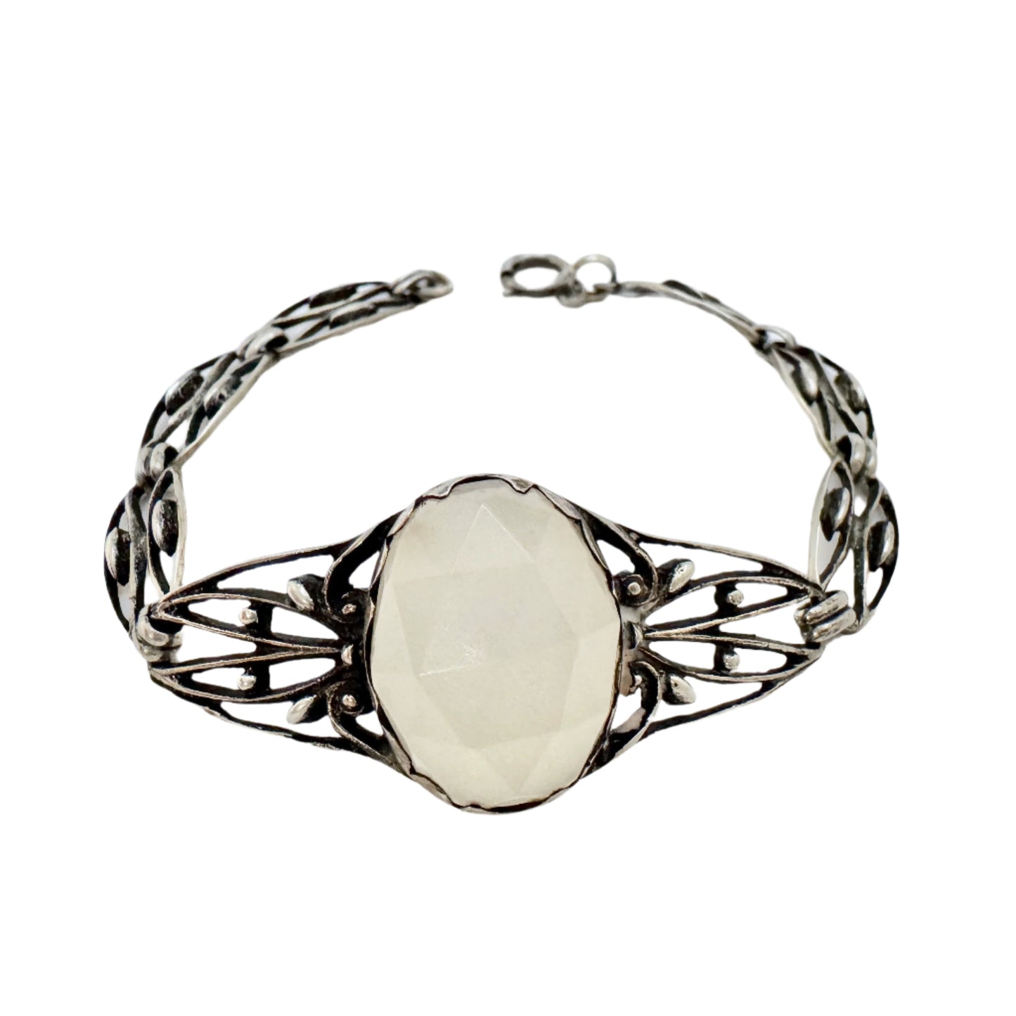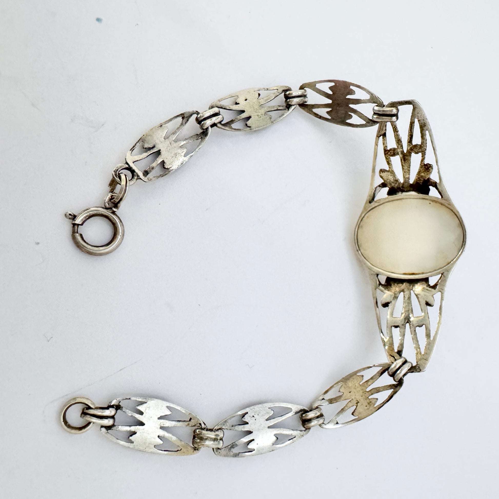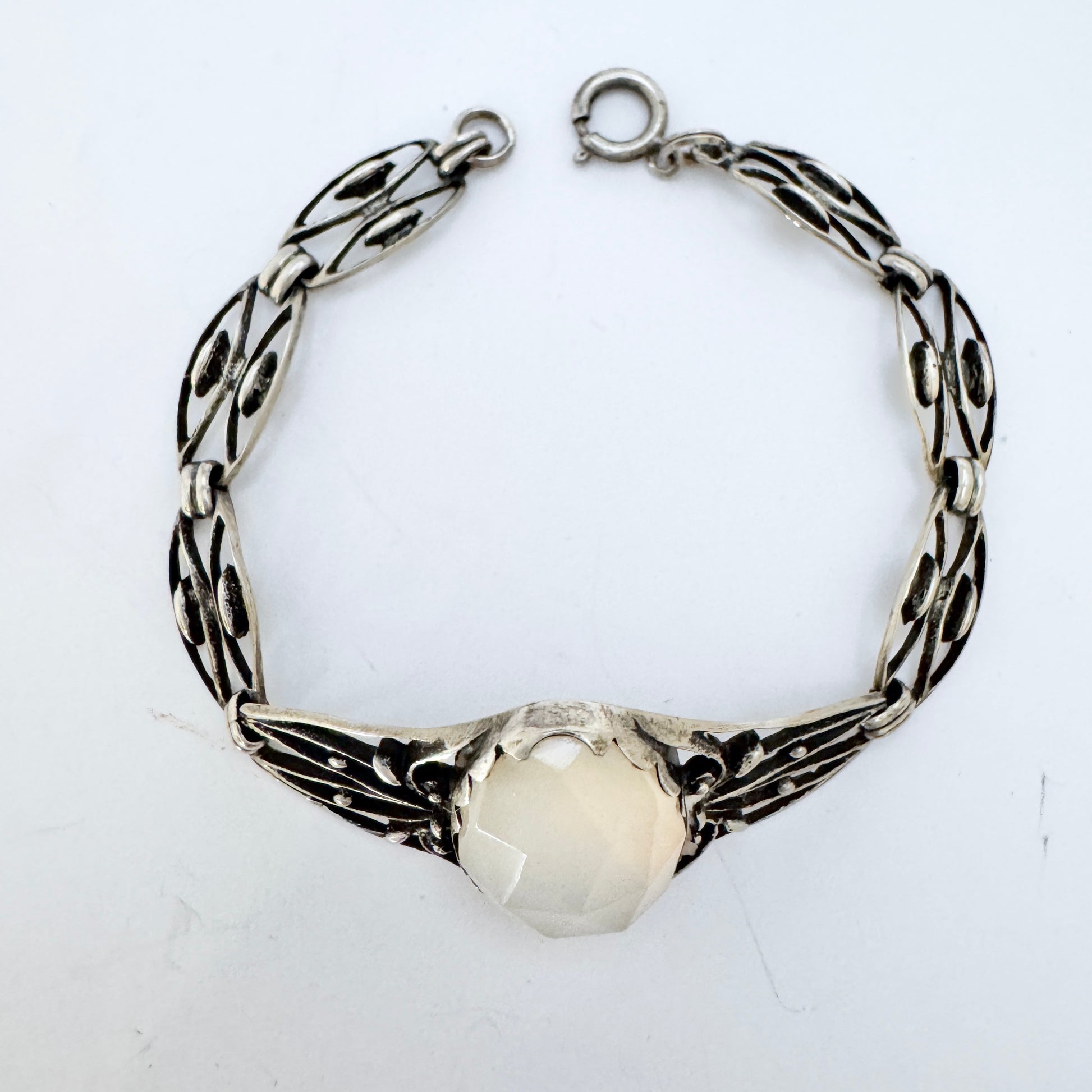 The Netherlands c 1930. Vintage Art Deco Solid Silver Milky Quartz Bracelet.