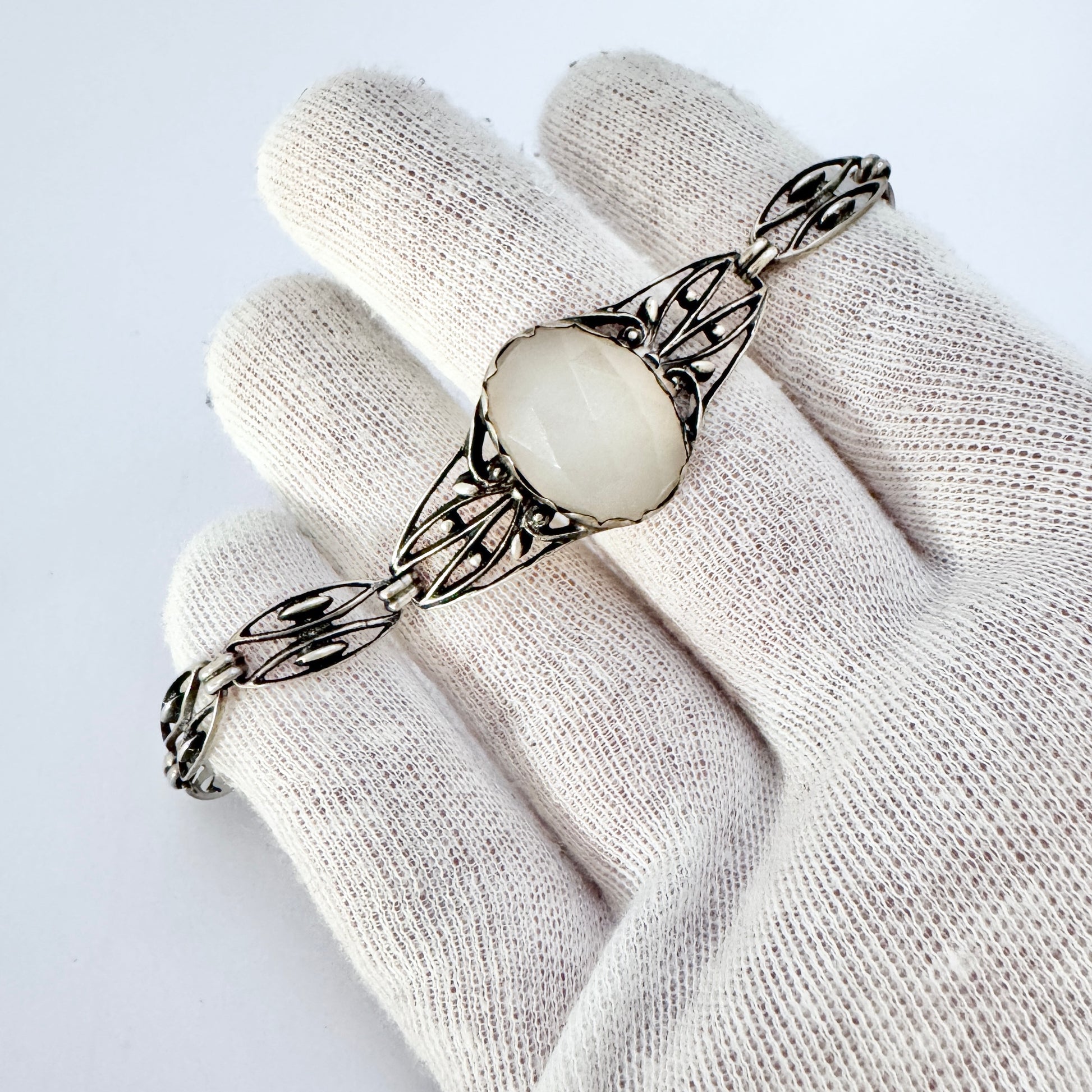 Wonderful vintage art deco solid silver milky quartz bracelet. Hallmarked with an unidentified Dutch makers mark.