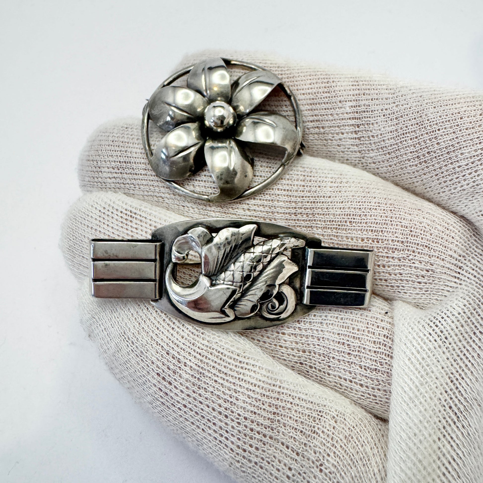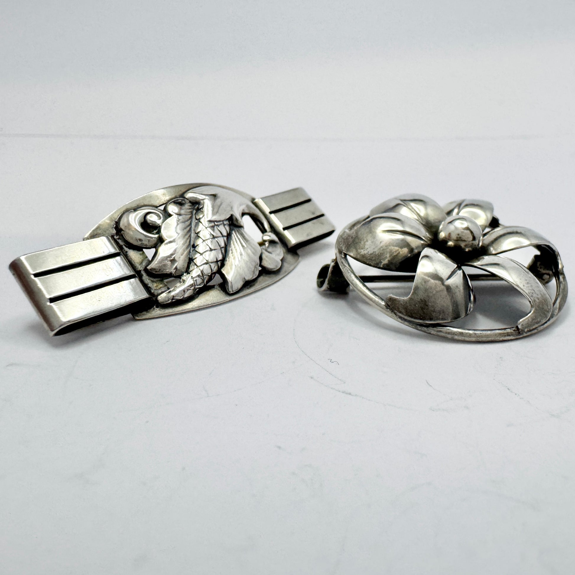 デンマークのヴィンテージ純銀製ブローチ 2 個。