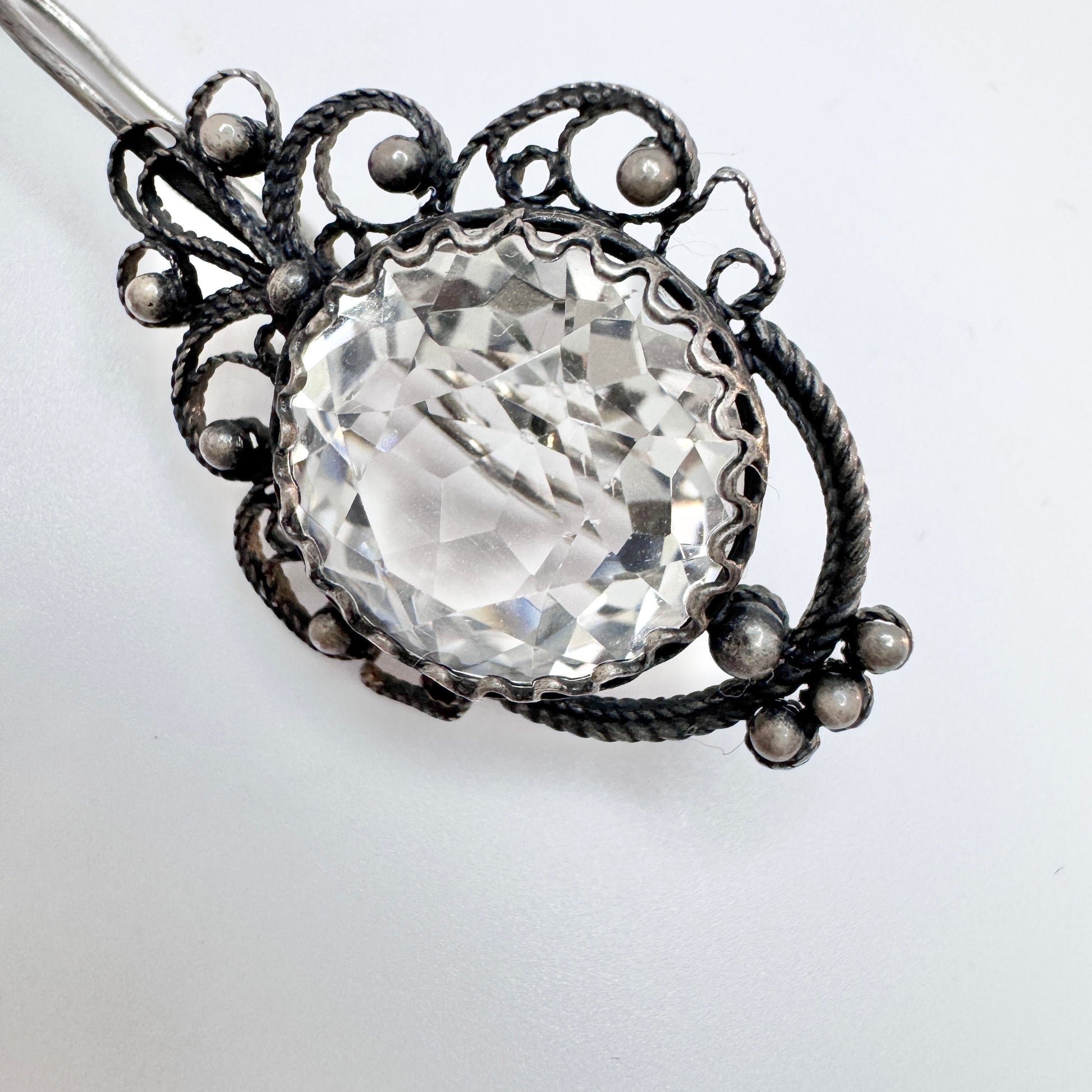 USSR. Vintage Solid Silver Rock Crystal Large Earrings.