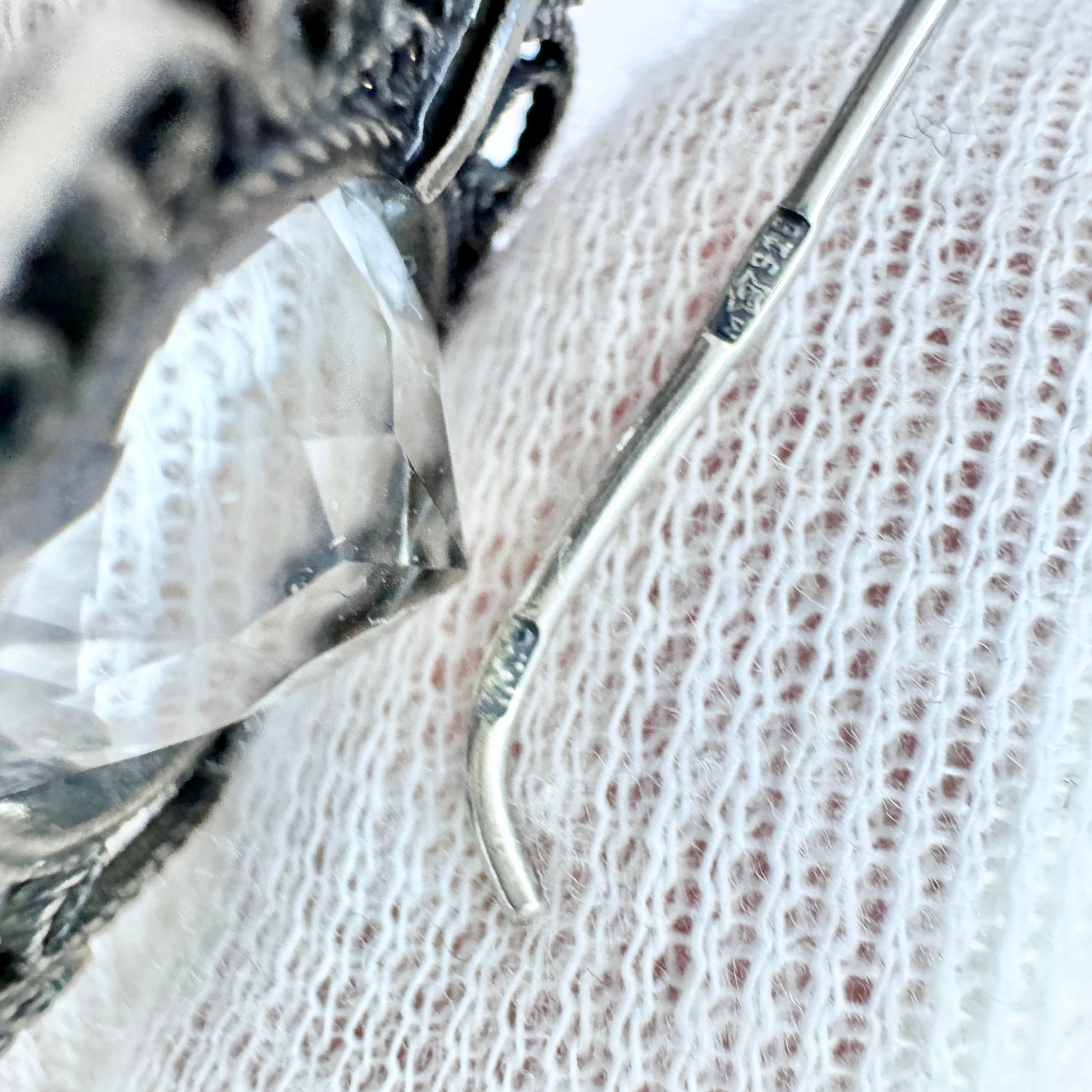 Beautiful vintage solid silver rock crystal pair of earrings. Hallmarked for 916 silver, Moscow, USSR / Soviet era.