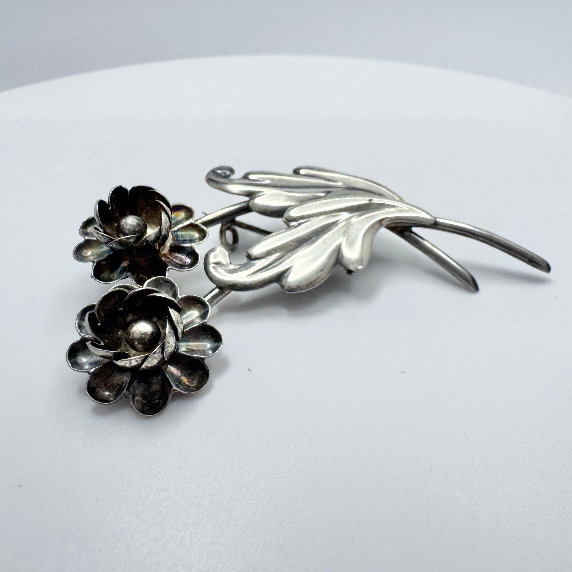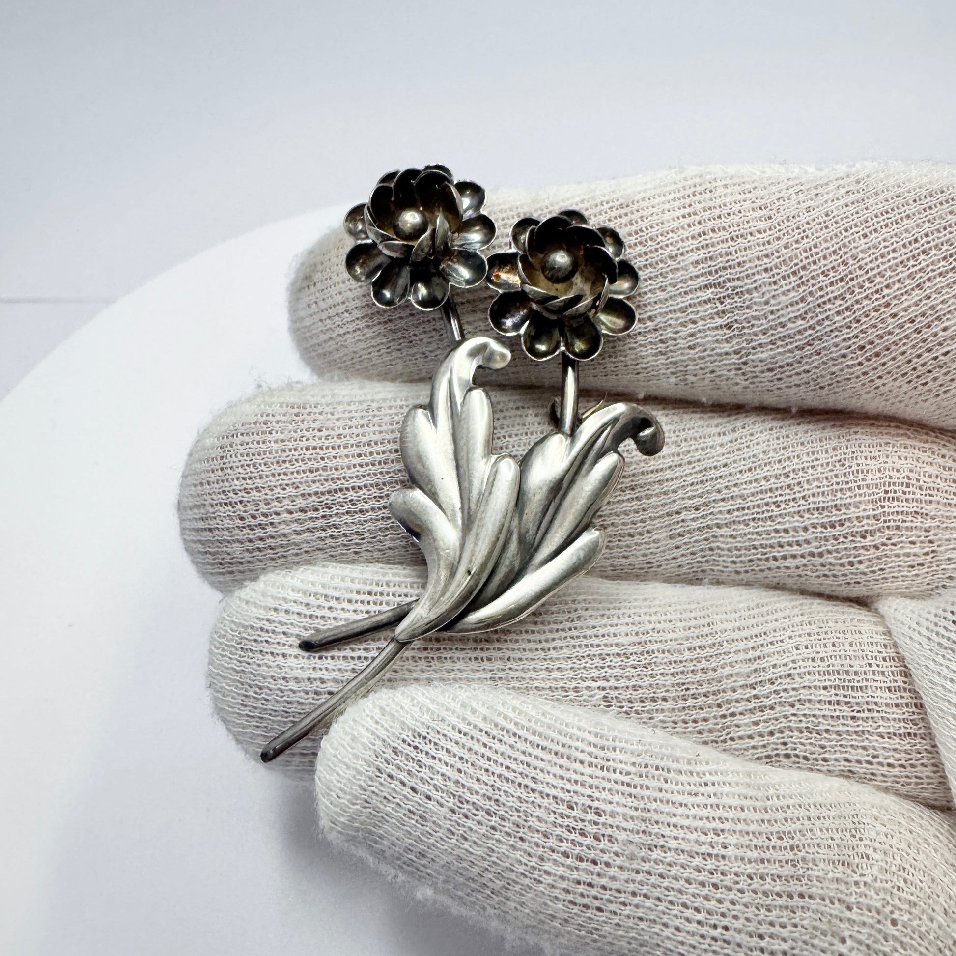 Victor Jansoon、スウェーデン、1946年。ヴィンテージの純銀製フラワーブローチ。