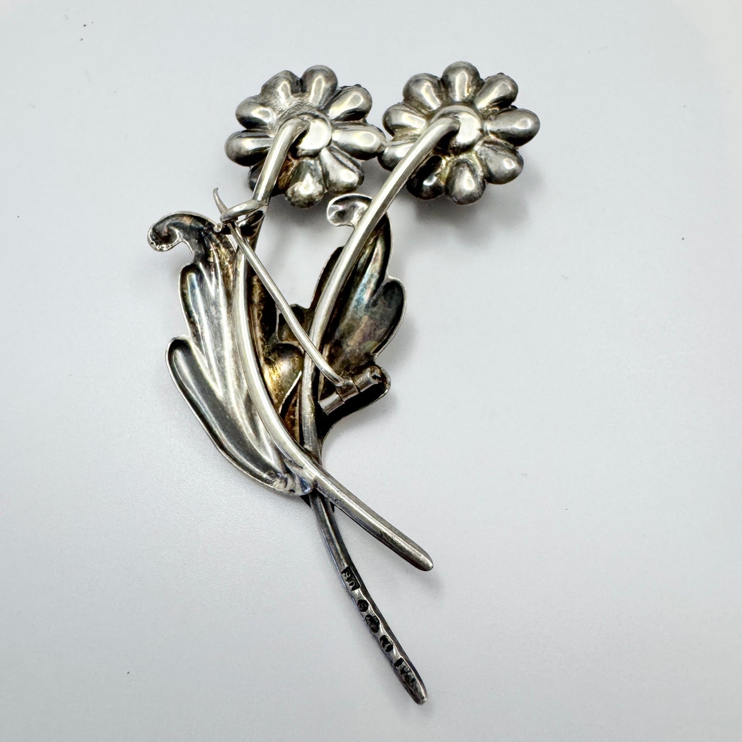 魅力的なヴィンテージの純銀製ブローチ。1946 年、スウェーデンの Victor Jansoon の刻印が完全に入っています。