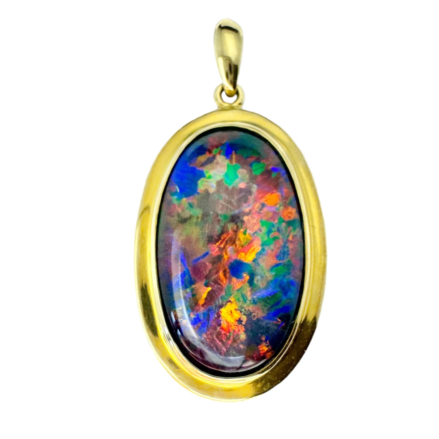 ヴィンテージ 18K ゴールド ブラック オパール トリプレット ペンダント。