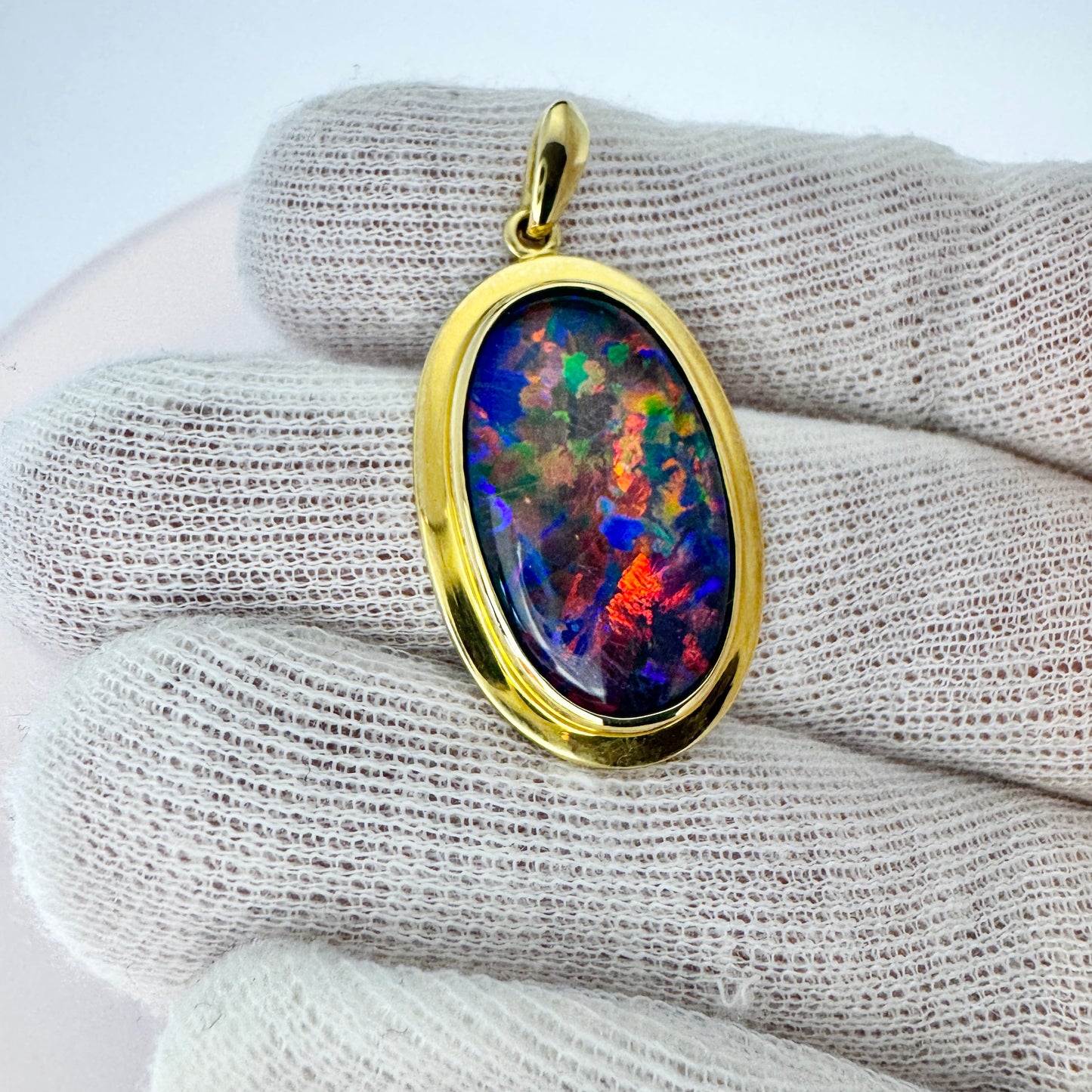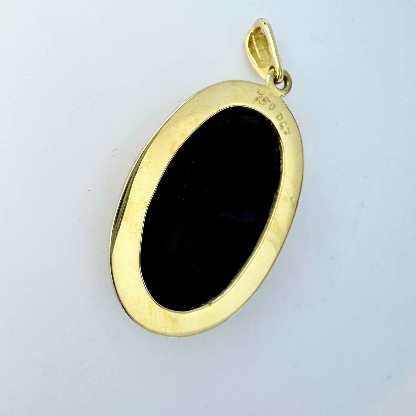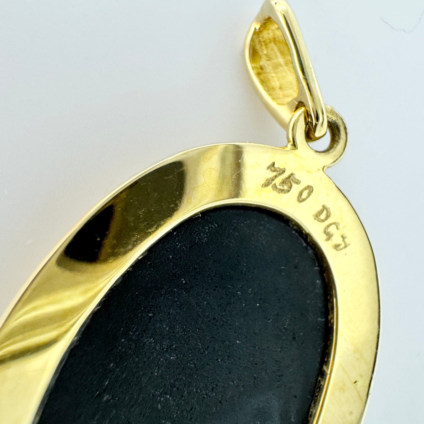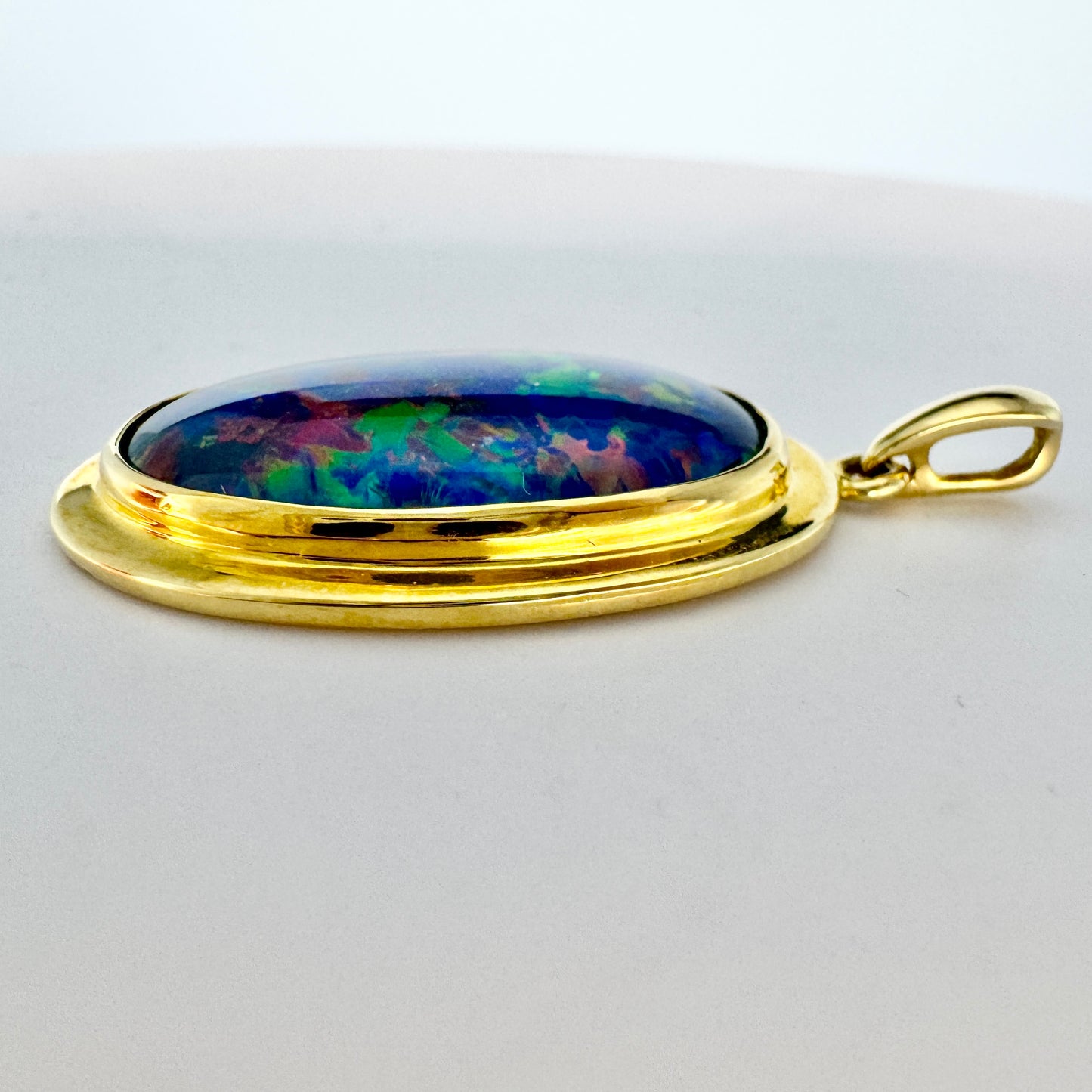 素晴らしいヴィンテージ 18K ゴールド ブラック オパール トリプレット ペンダント。18K ゴールドの刻印あり、署名は不明。