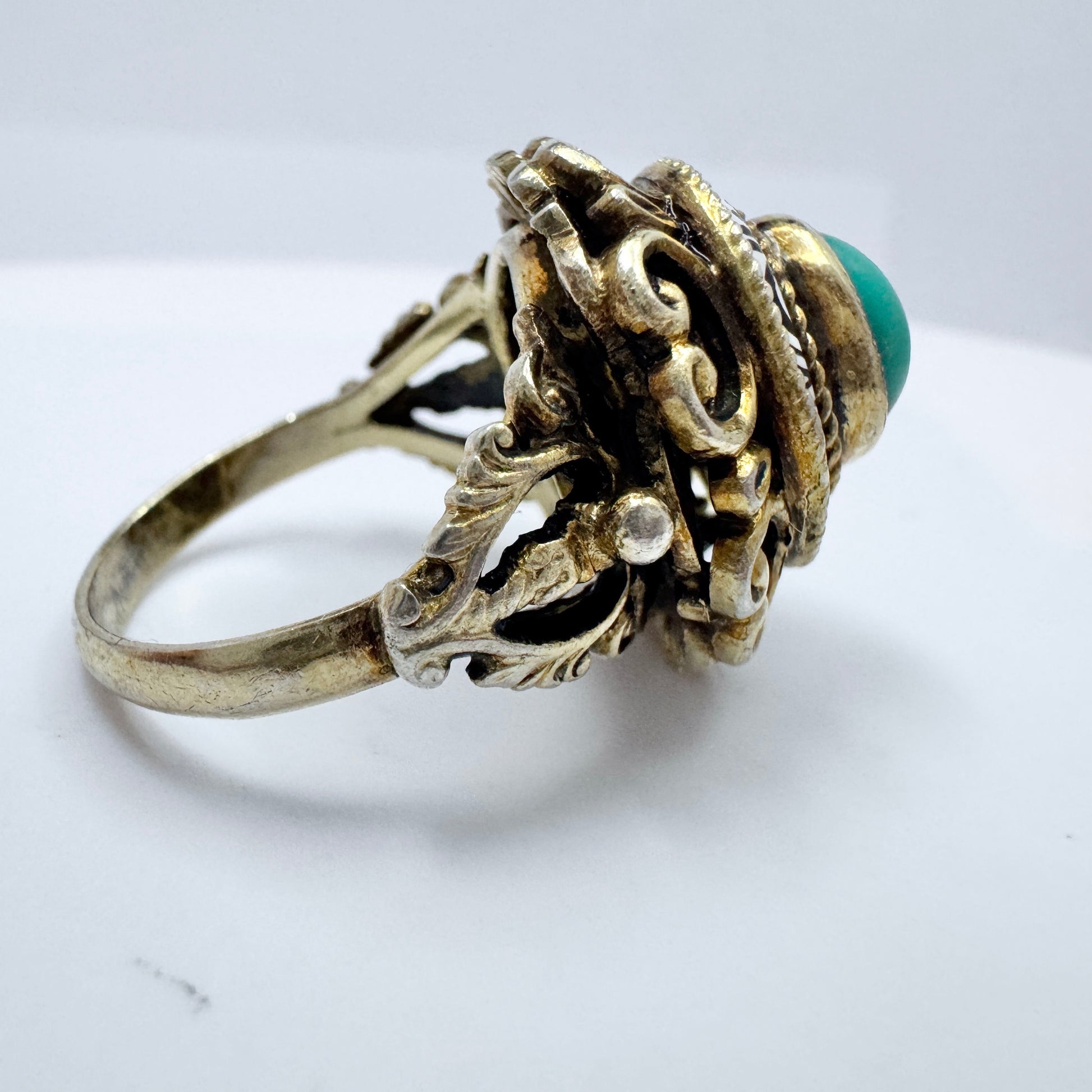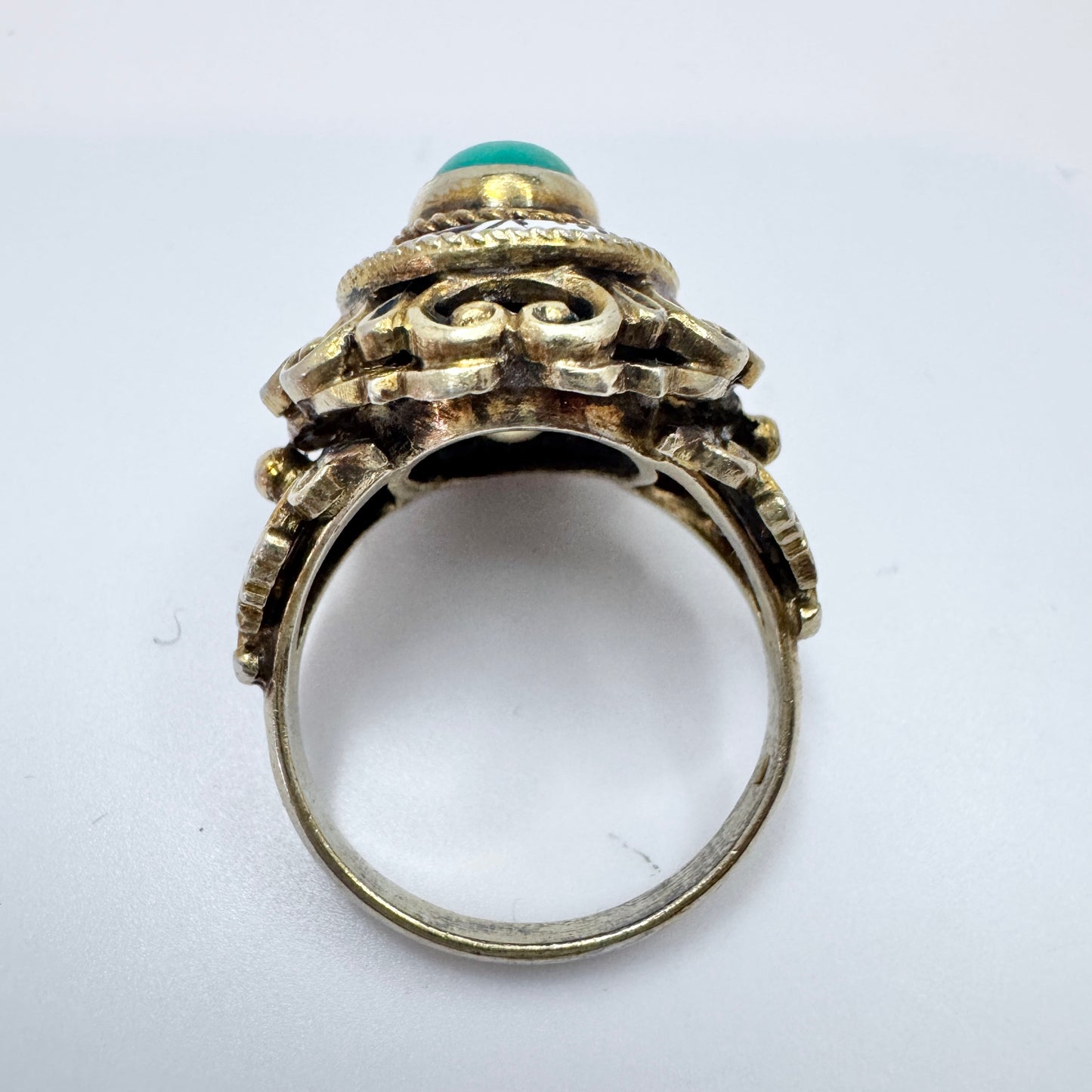 1930 年代から 1940 年代のヴィンテージ。純銀製ターコイズ エナメル透かし彫りリング。