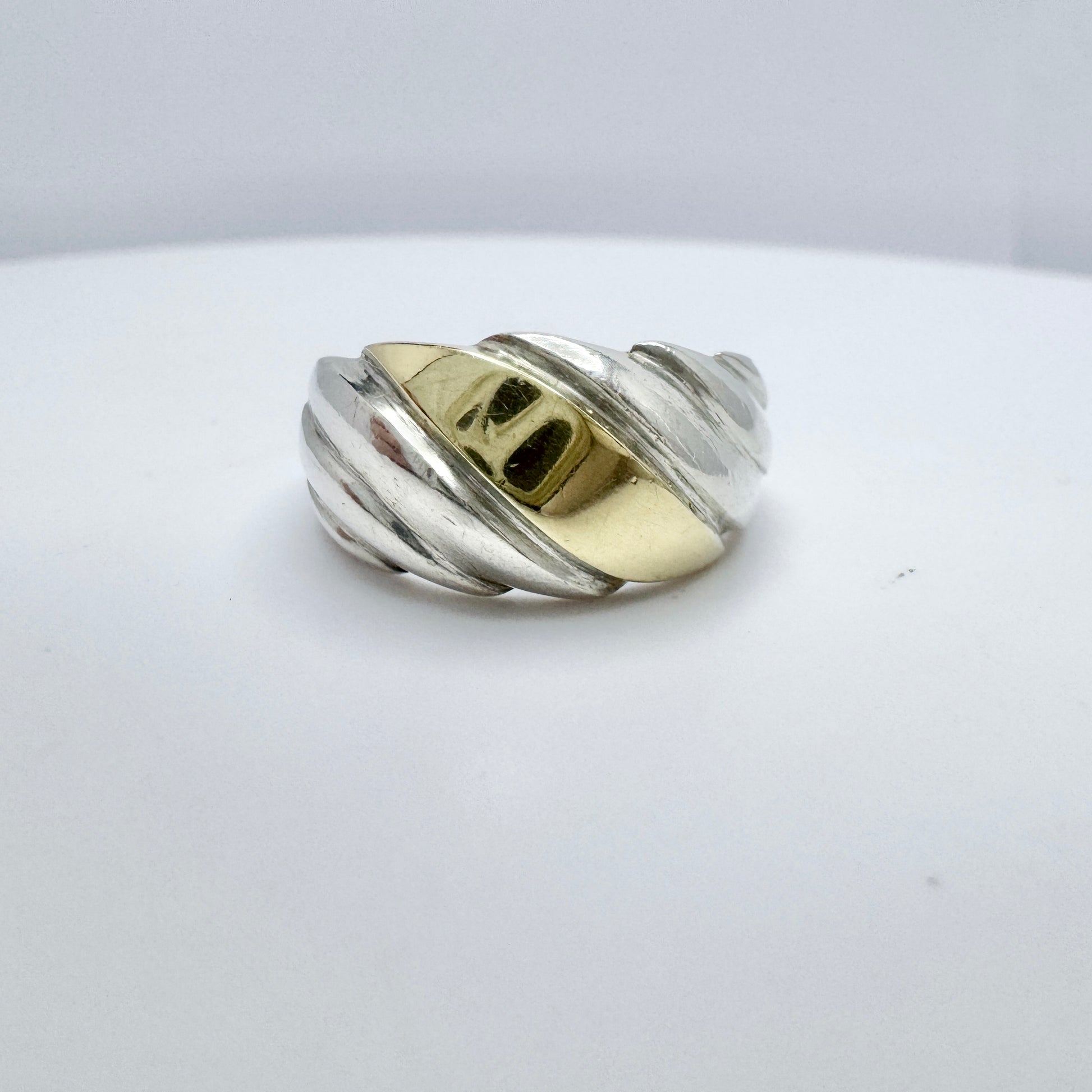 Beautiful vintage sterling silver 14k gold ring. Hallmarked for sterling silver (925) and 14k gold (585) + unidentified makers mark, ca 1980s.