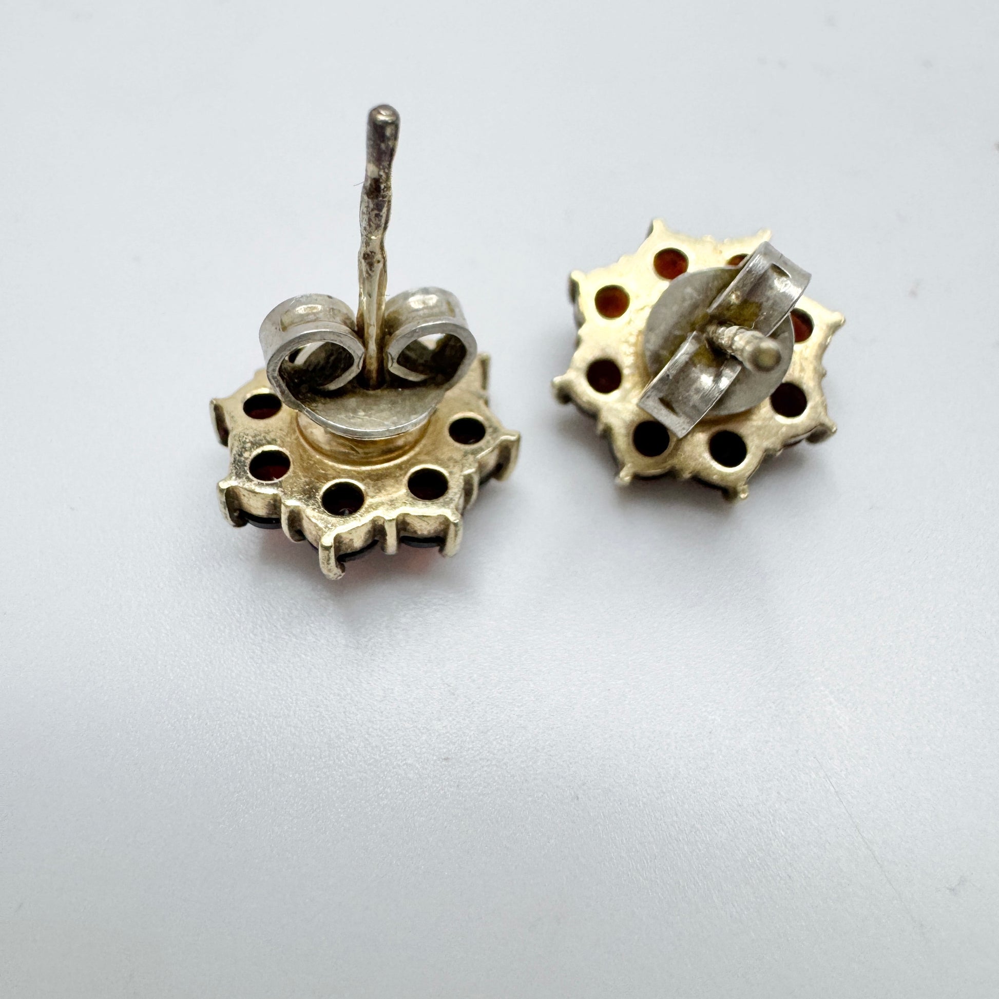 Vintage Solid Silver Garnet Cluster Stud Earrings.