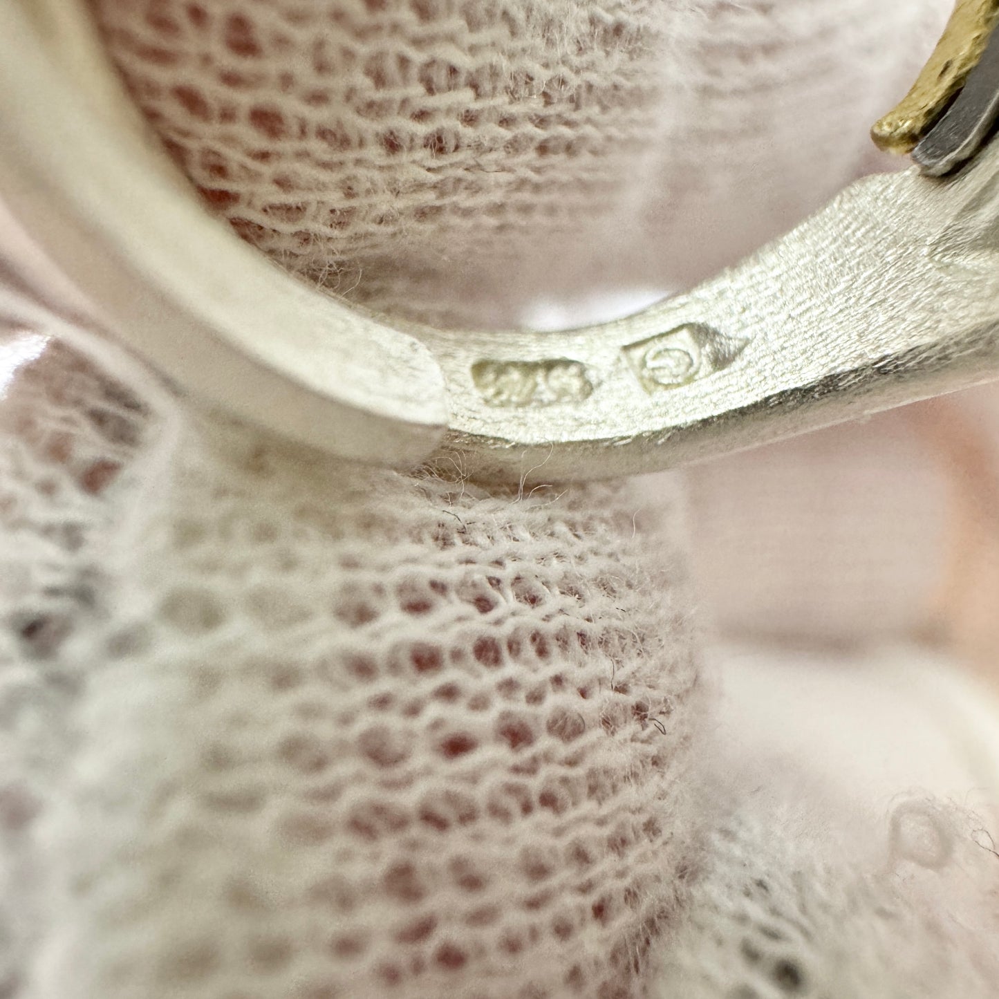 署名/メーカーマーク付き。スターリングシルバーのパール調節可能なサイズリング。