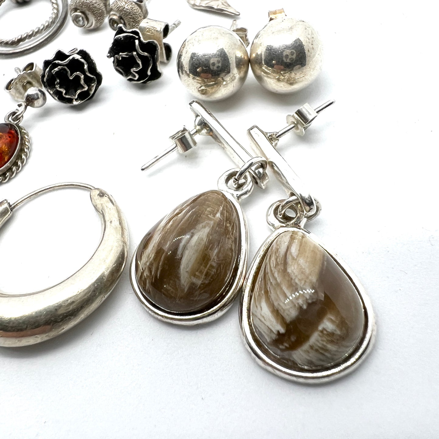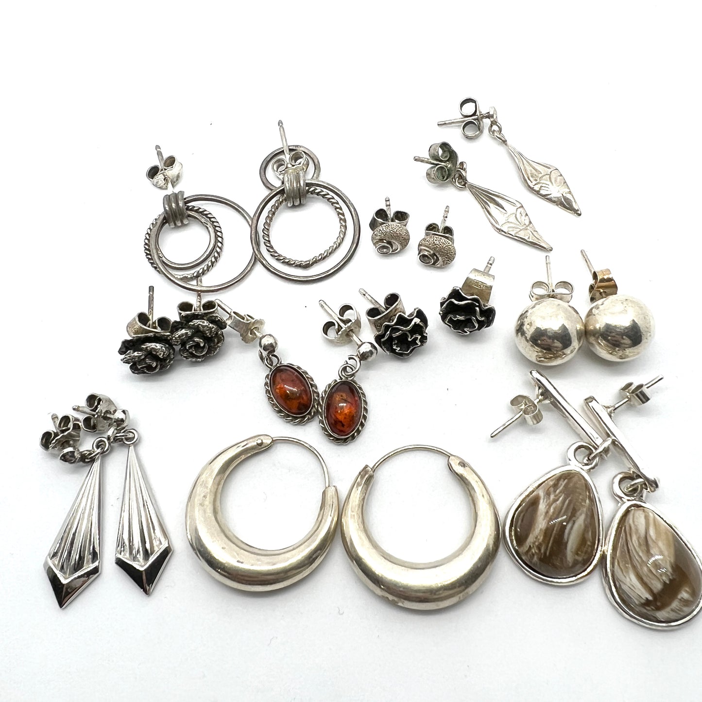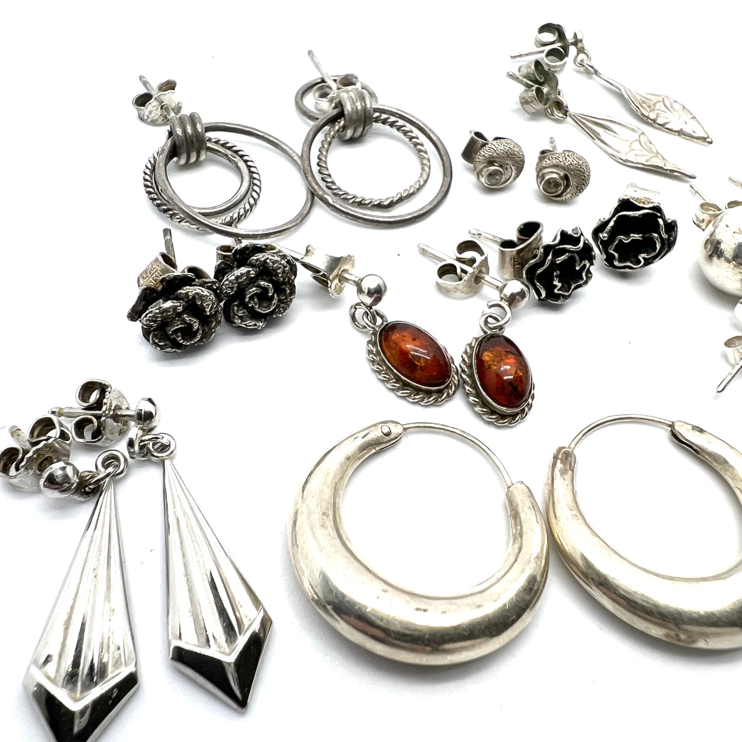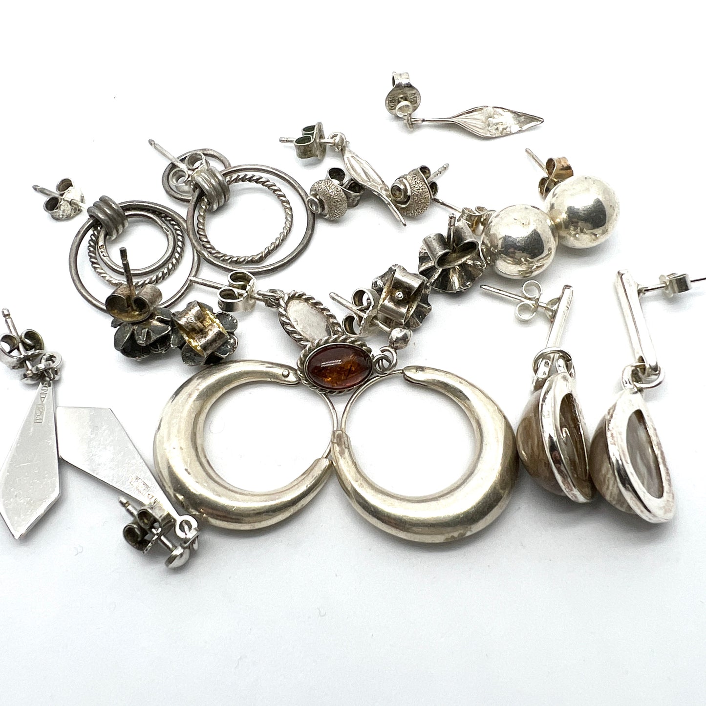 10 Pair of Vintage Silver Earrings. Scandinavian. Job Lot.
