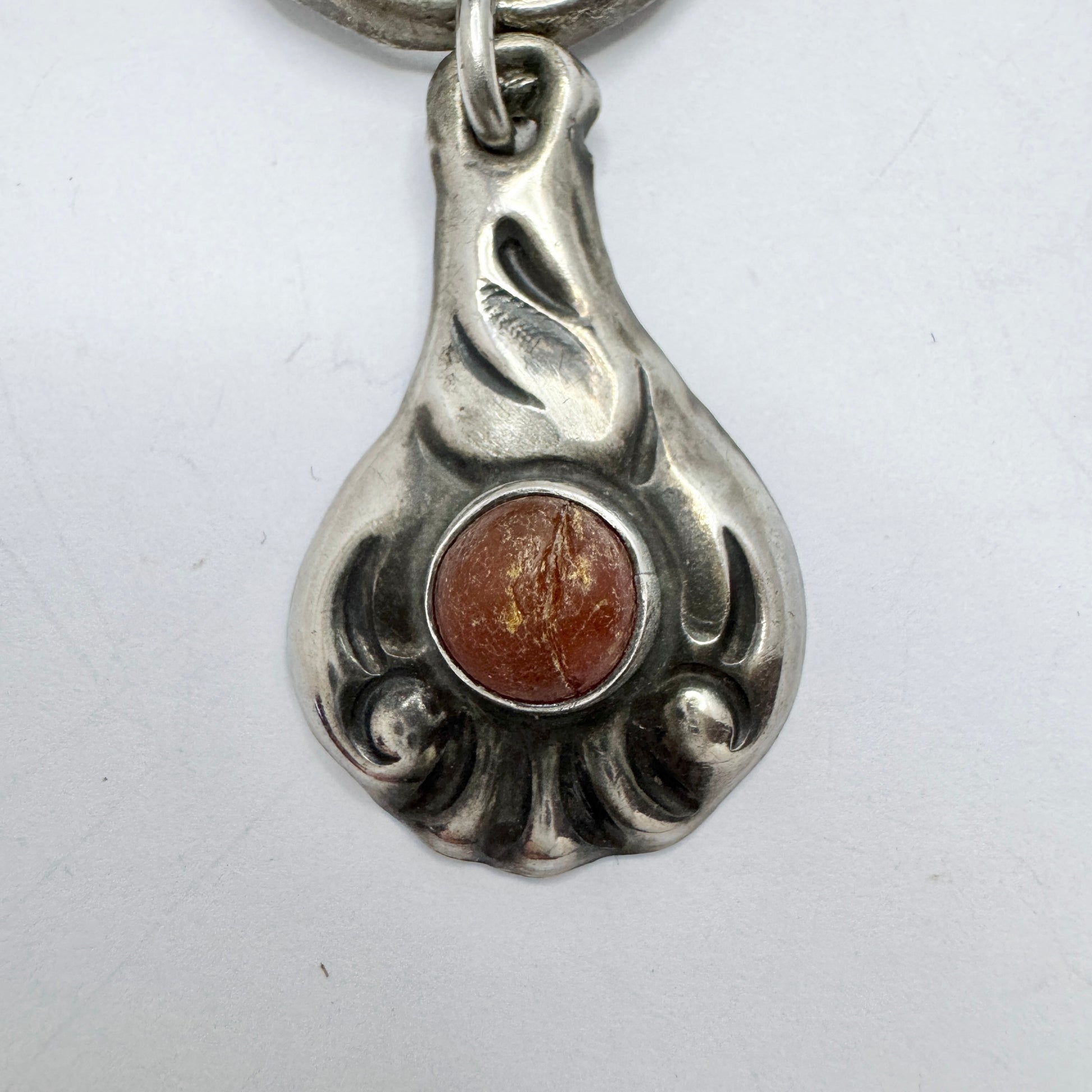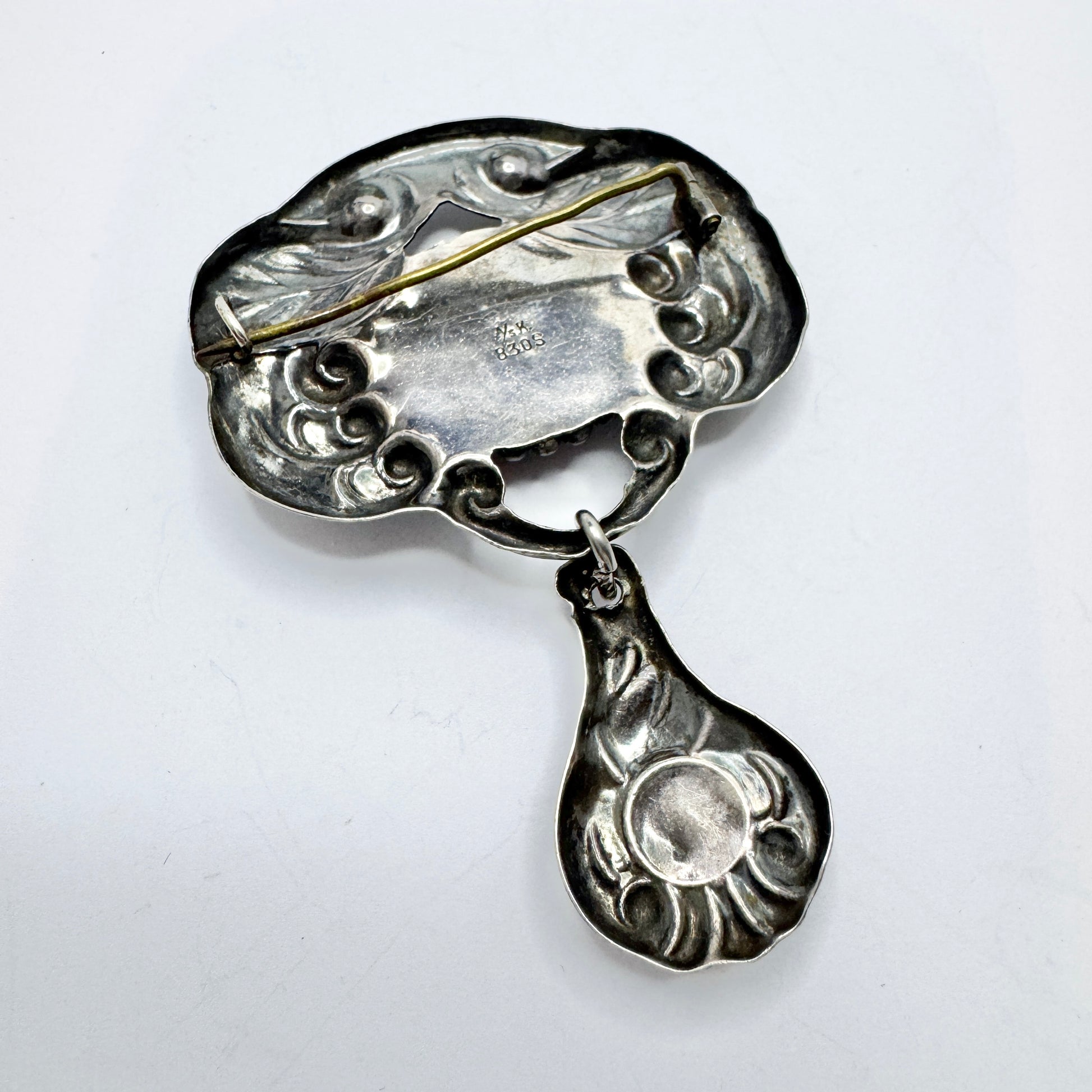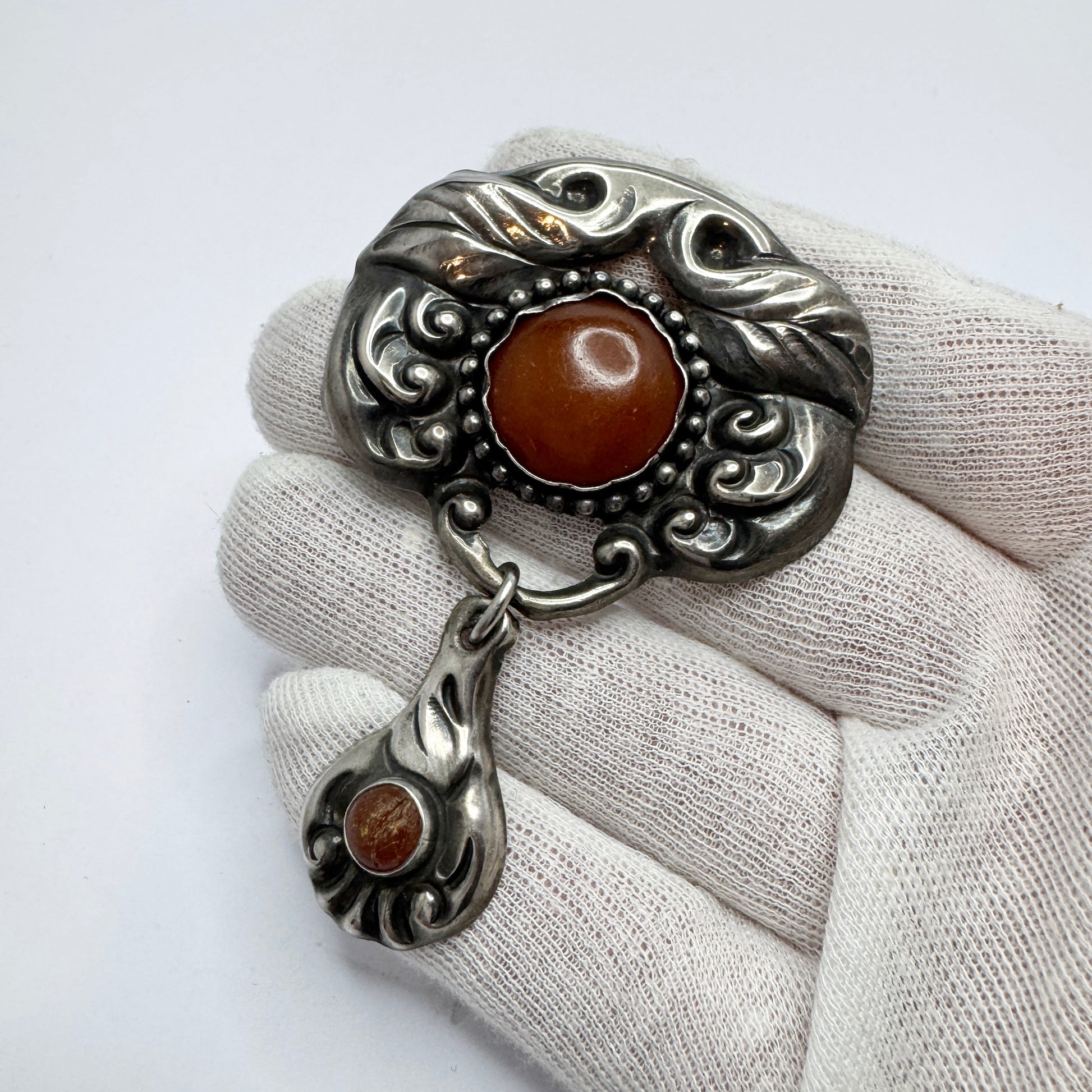 A/S K. Denmark ca 1920. Antique Art Nouveau Skønvike Silver Amber Brooch.
