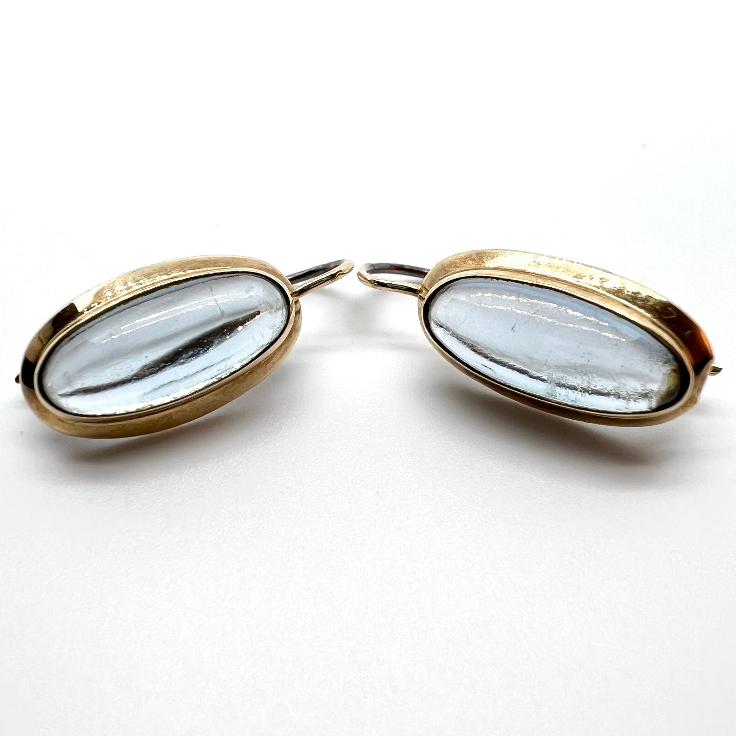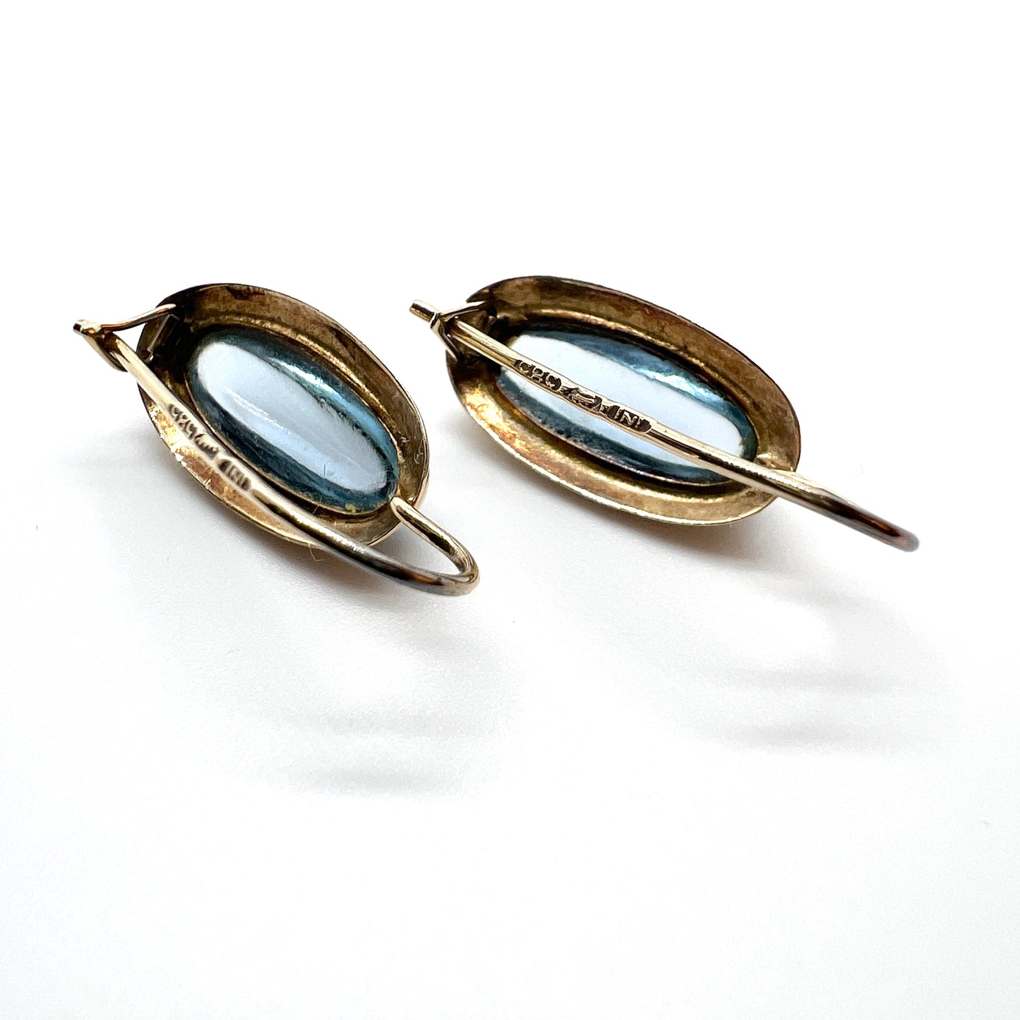 Wonderful and sought after vintage 14k gold blue synthetic spinel pair of earrings. Hallmarked for 14k gold, Aleksanteri Nykänen, Finland 1960s.