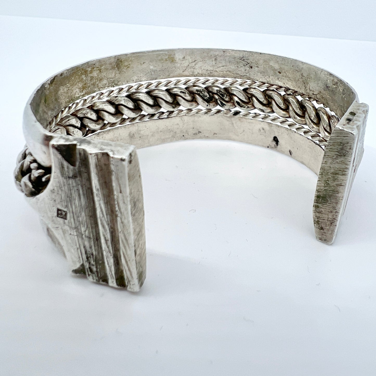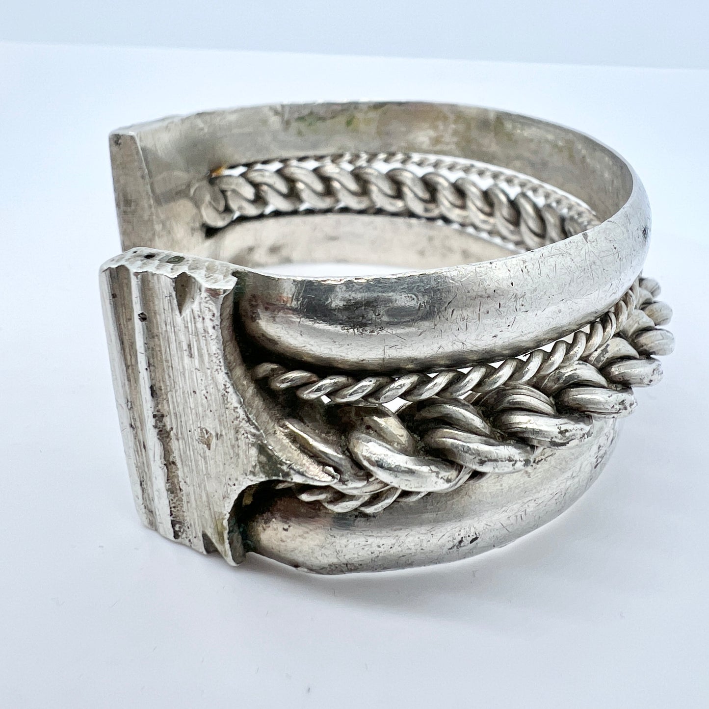 Bold and heavy vintage solid silver cuff bracelet. Hallmarked for Alexandria, Egypt year 1965-67.