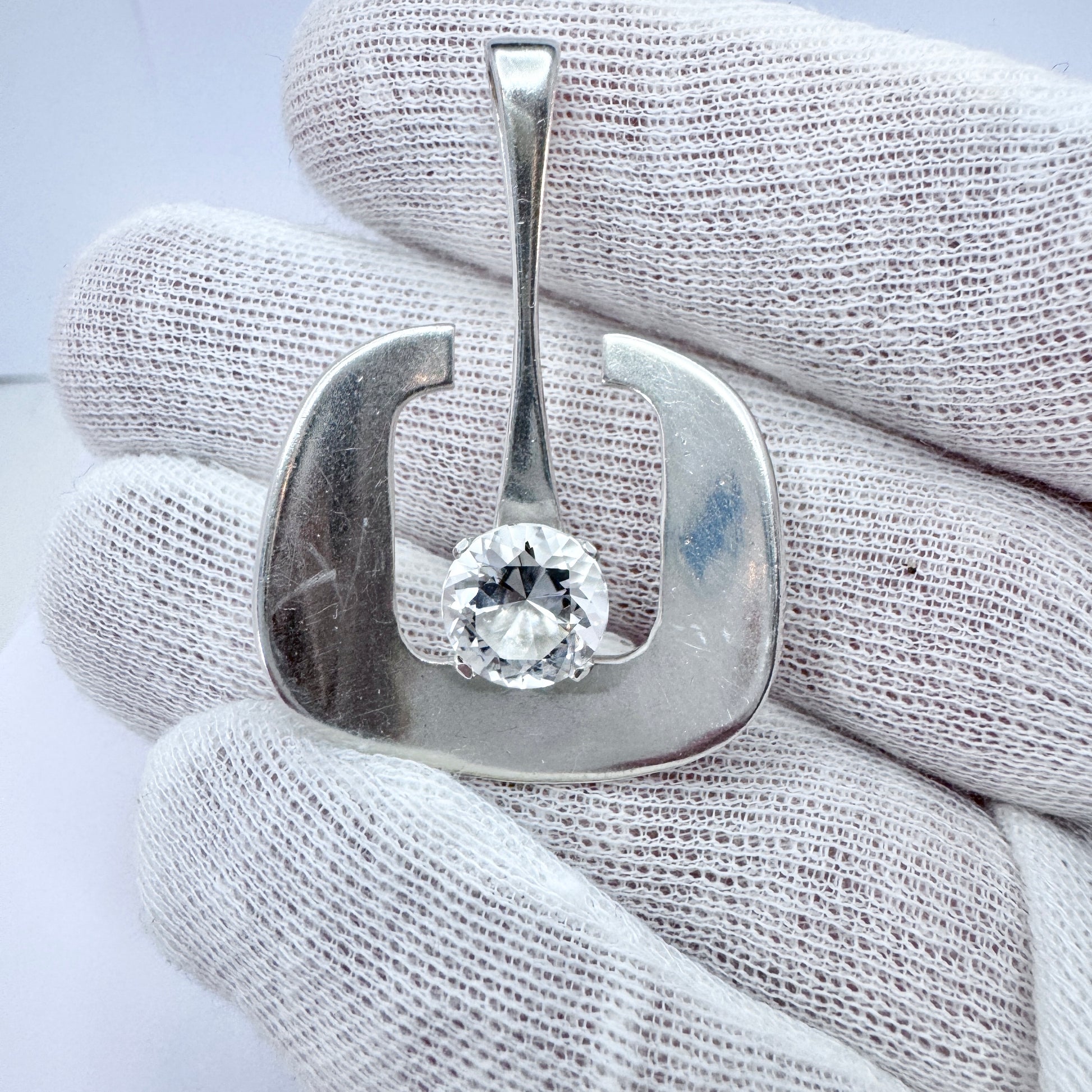 Alton, Sweden 1974 Vintage Modernist Sterling Silver Rock Crystal Pendant
