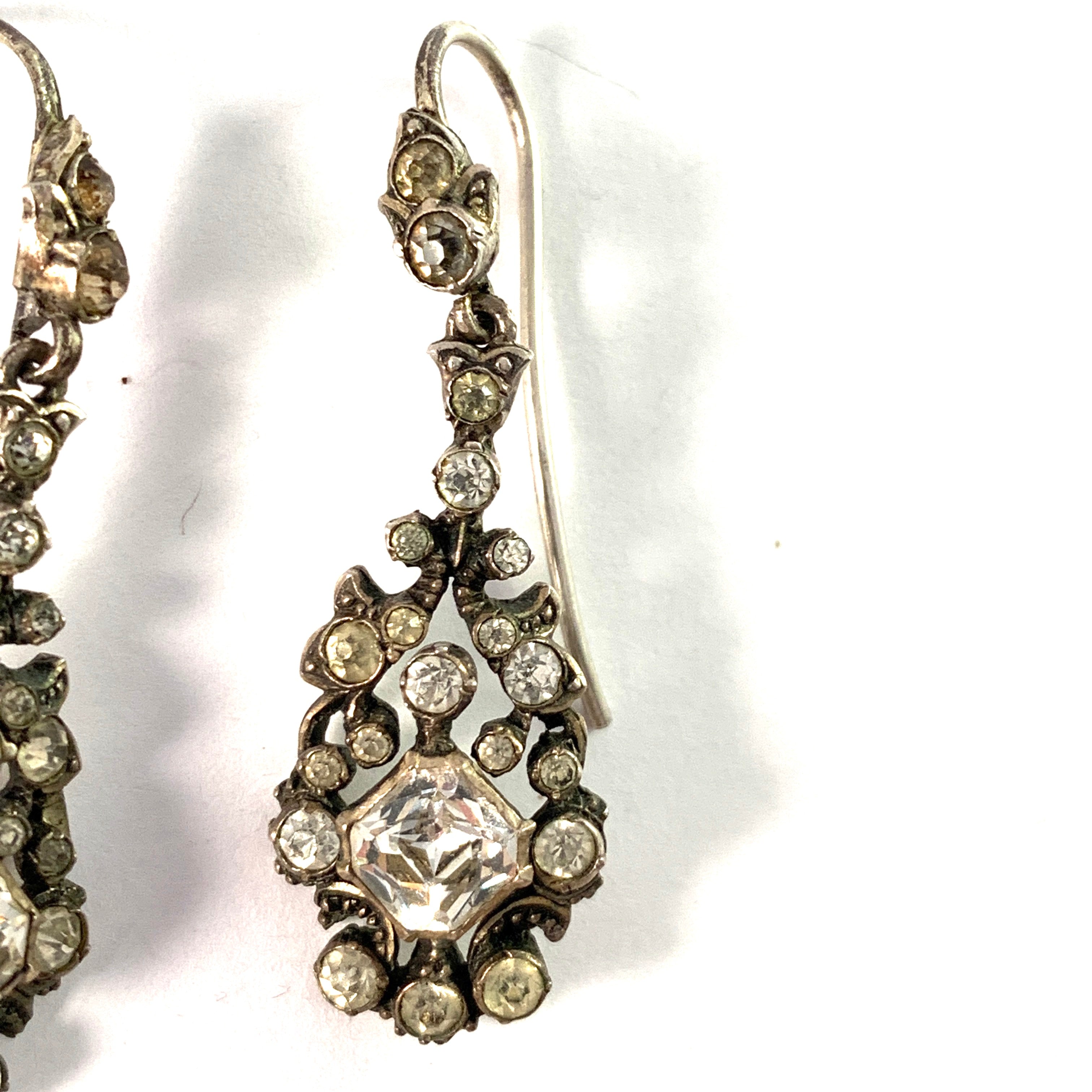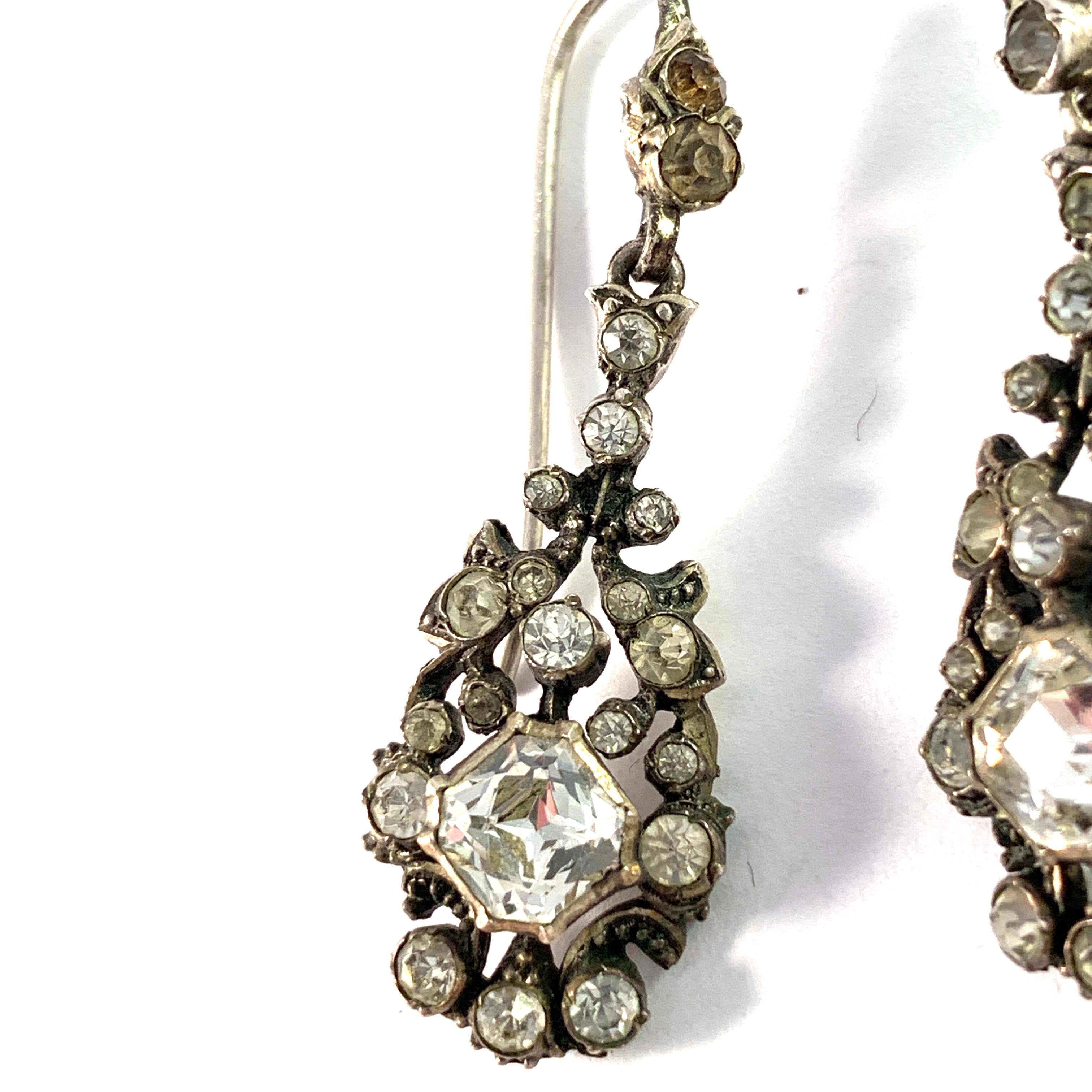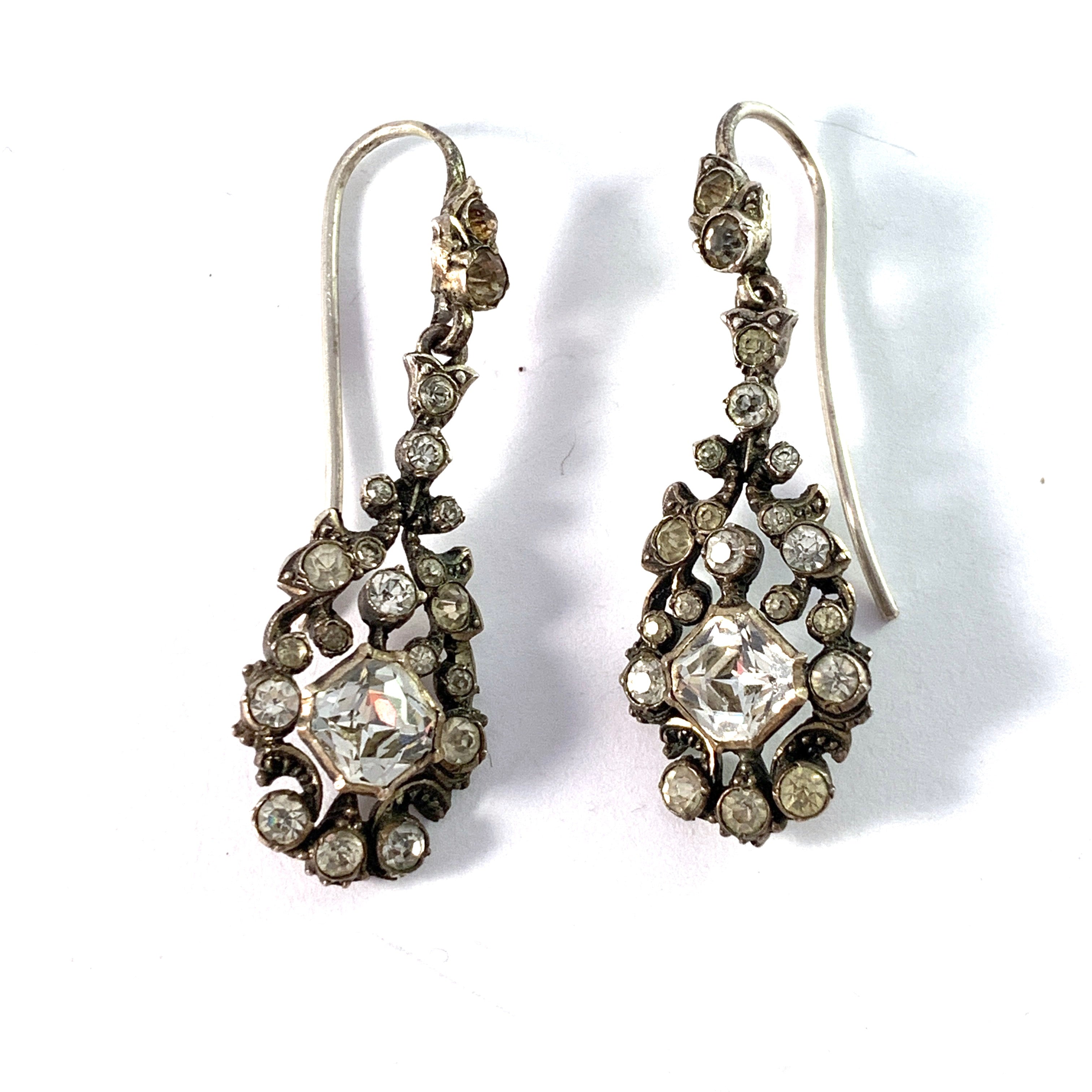 Wonderful and much sought after antique sterling silver foil back paste stone earrings. Hallmarked for 930 silver. Continental Europe.