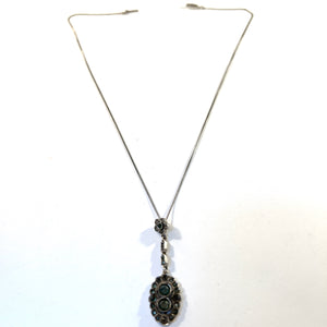Antique c 1920 Solid 835 Silver Green Paste Stone Pendant Necklace.