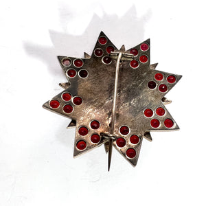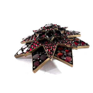 Antique early 1900s. Bohemian Garnet Gilt Metal Brooch.