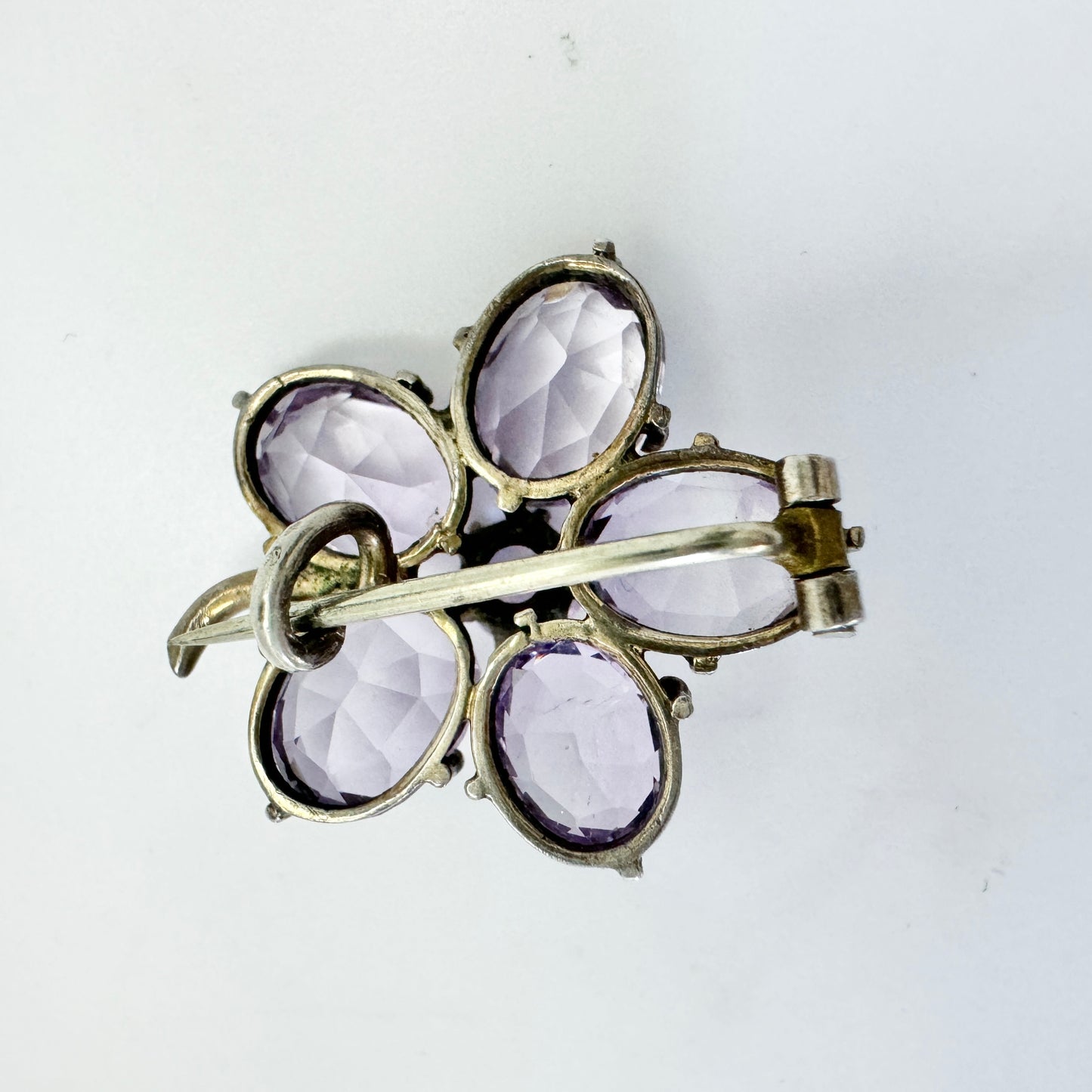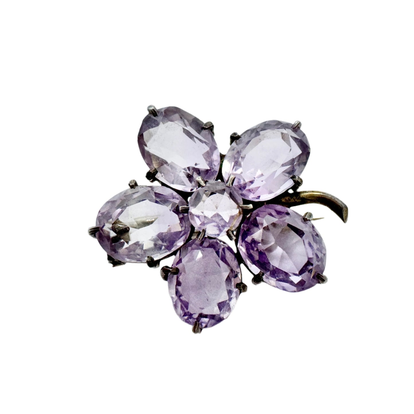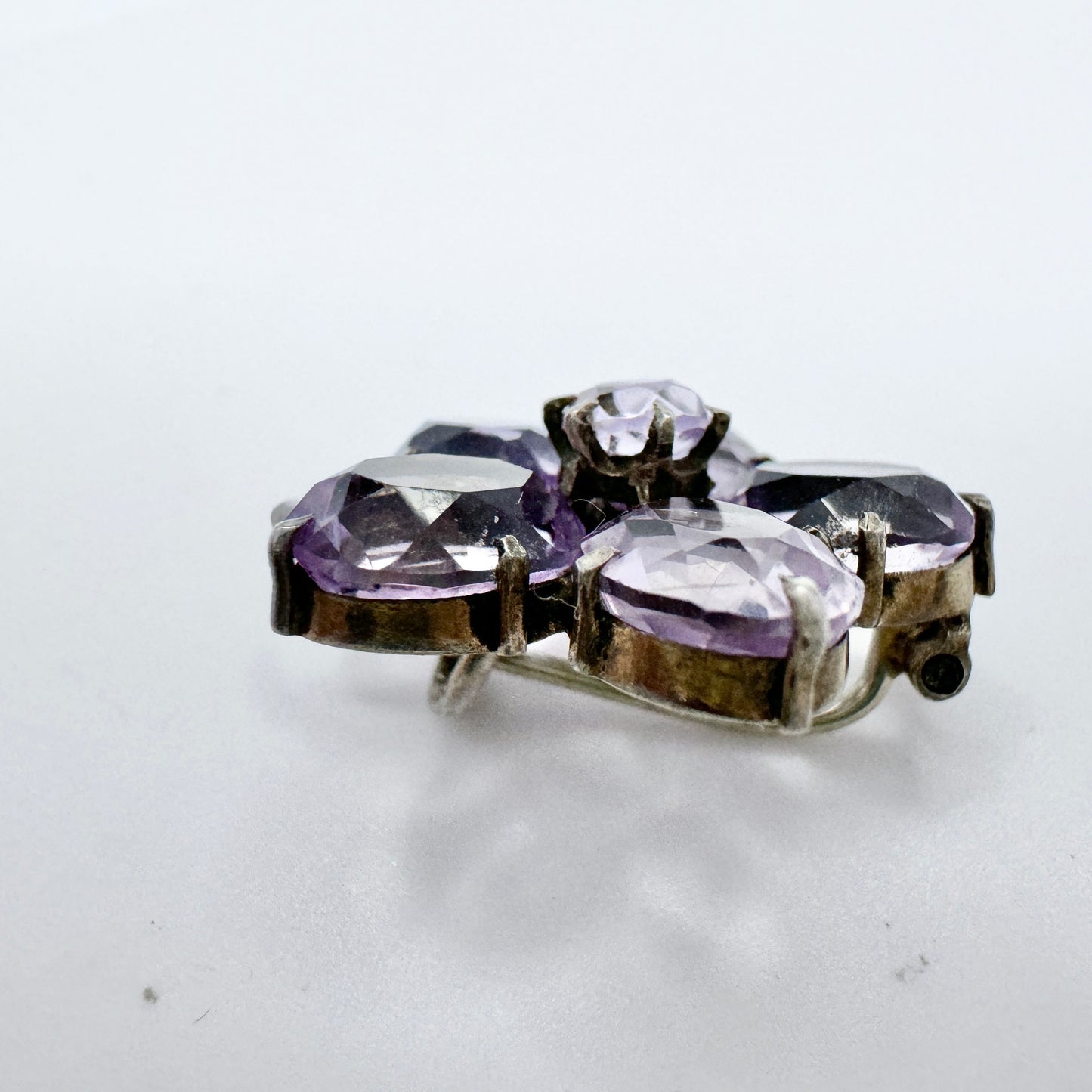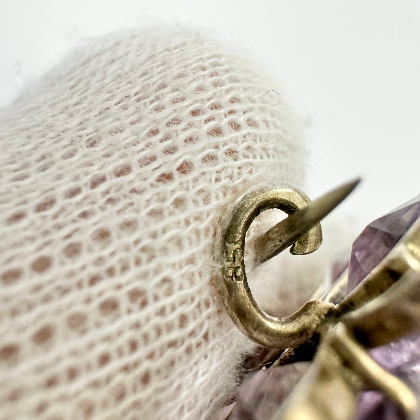 Very charming and sought after antique solid silver amethyst brooch. Indistinct hallmark, possibly "850" Continental Europe early 1900s.