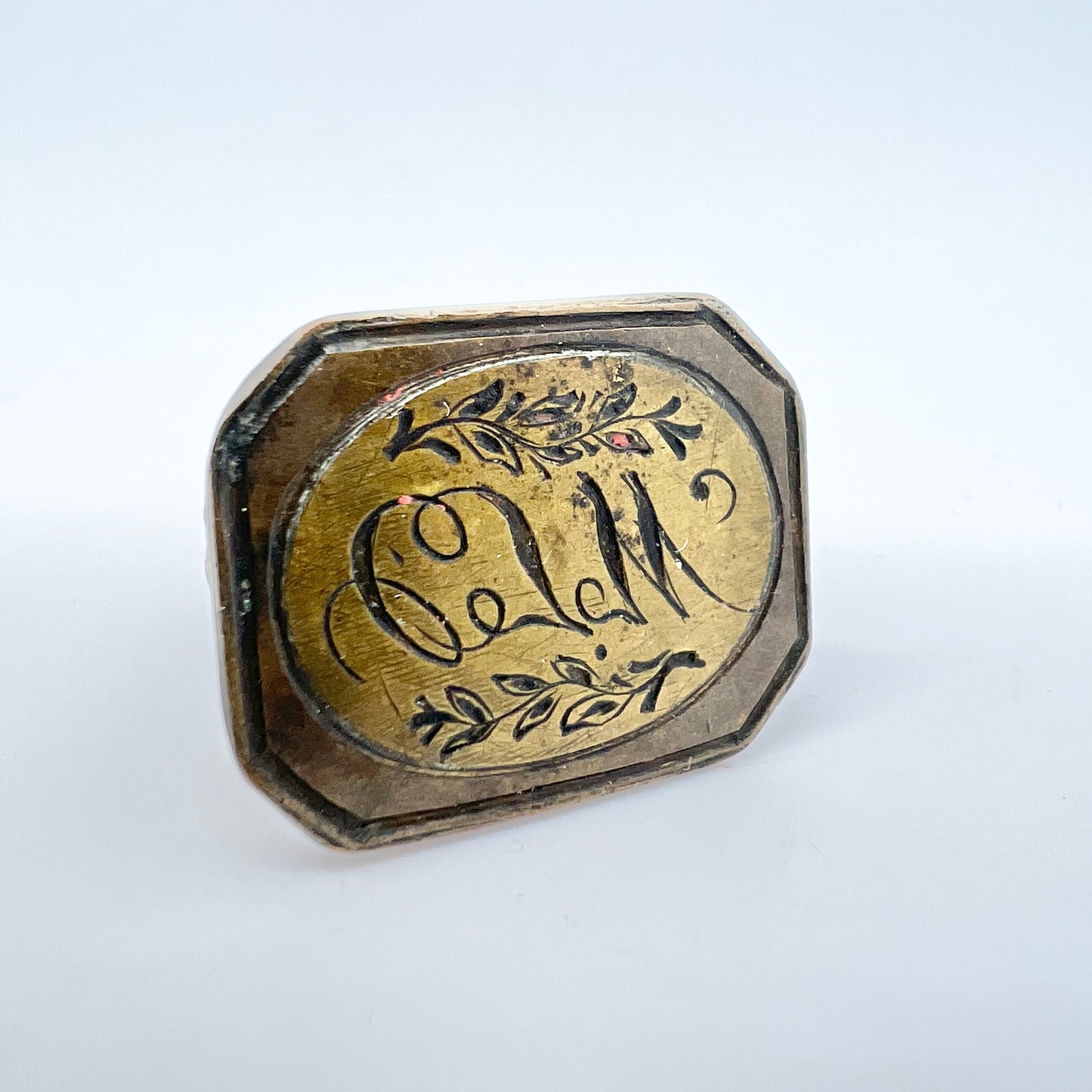 Charming antique fob seal pendant. Engraved with initials MLd. Made in Scandinavia, Denmark or Sweden early 1800s