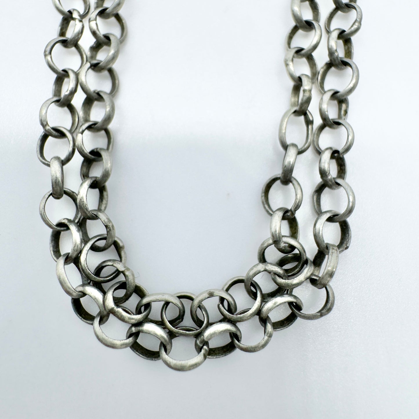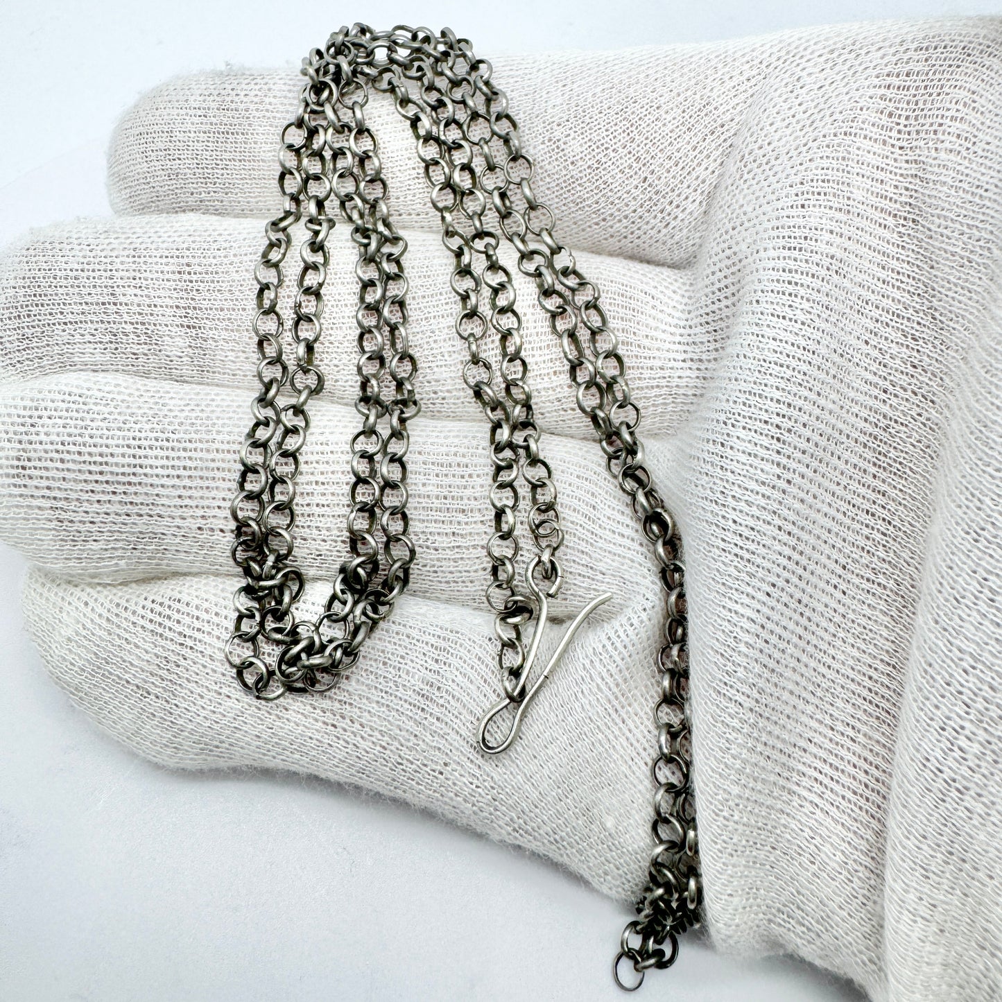 Antique mid 1800s Solid Silver 31 inch Belcher Chain Necklace.
