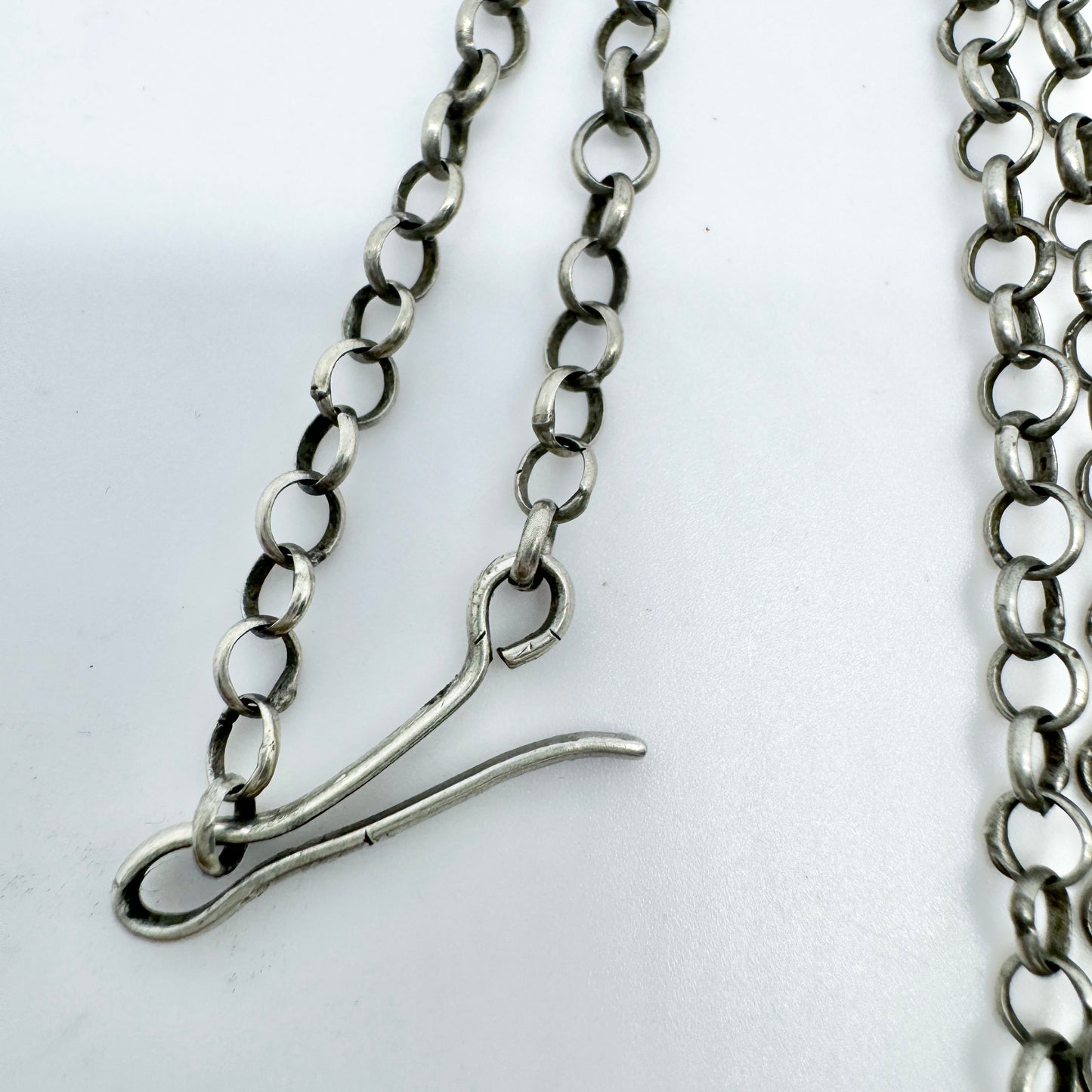 Very charming and rare antique solid silver chain necklace. Apparently unmarked. Originally attached to a Swedish vinaigrette pendant from 1840s. Each round link hand soldered.