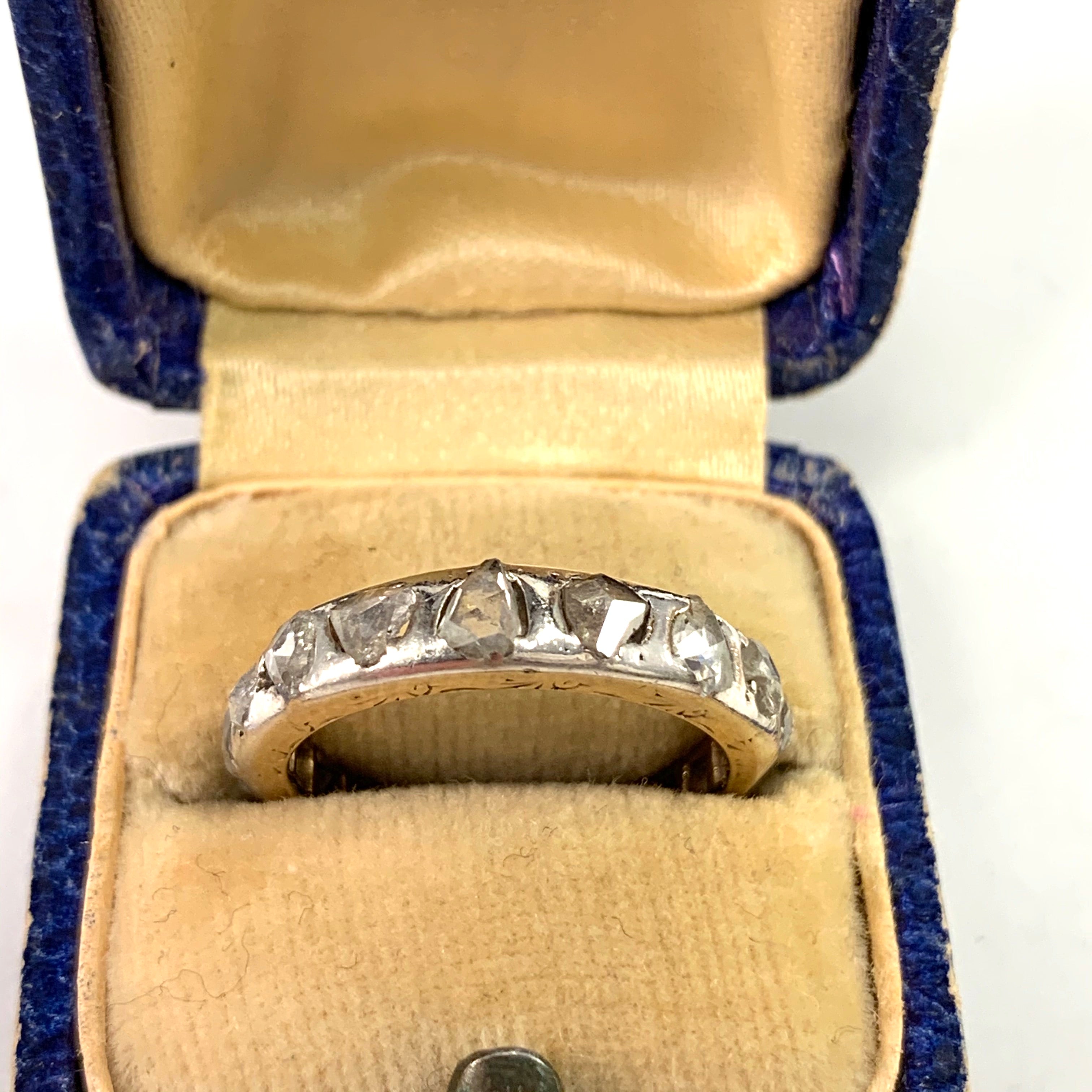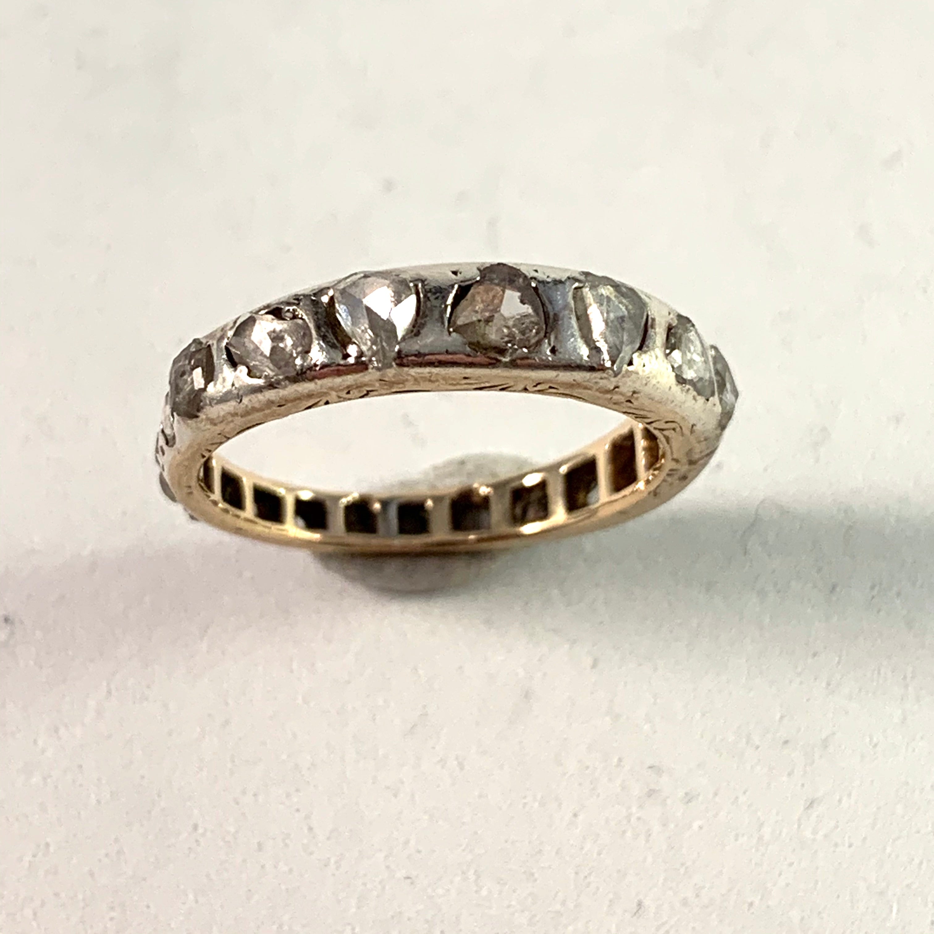 Antique Platinum Gold Rose Cut Diamond Eternity Ring.