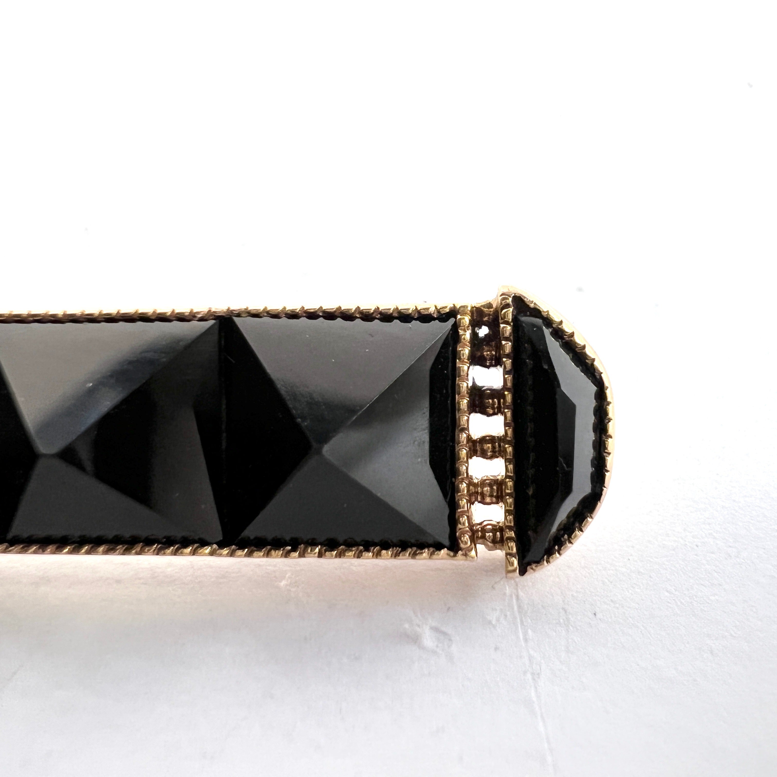 Antique Victorian 15k Gold Onyx Mourning Brooch Pin.