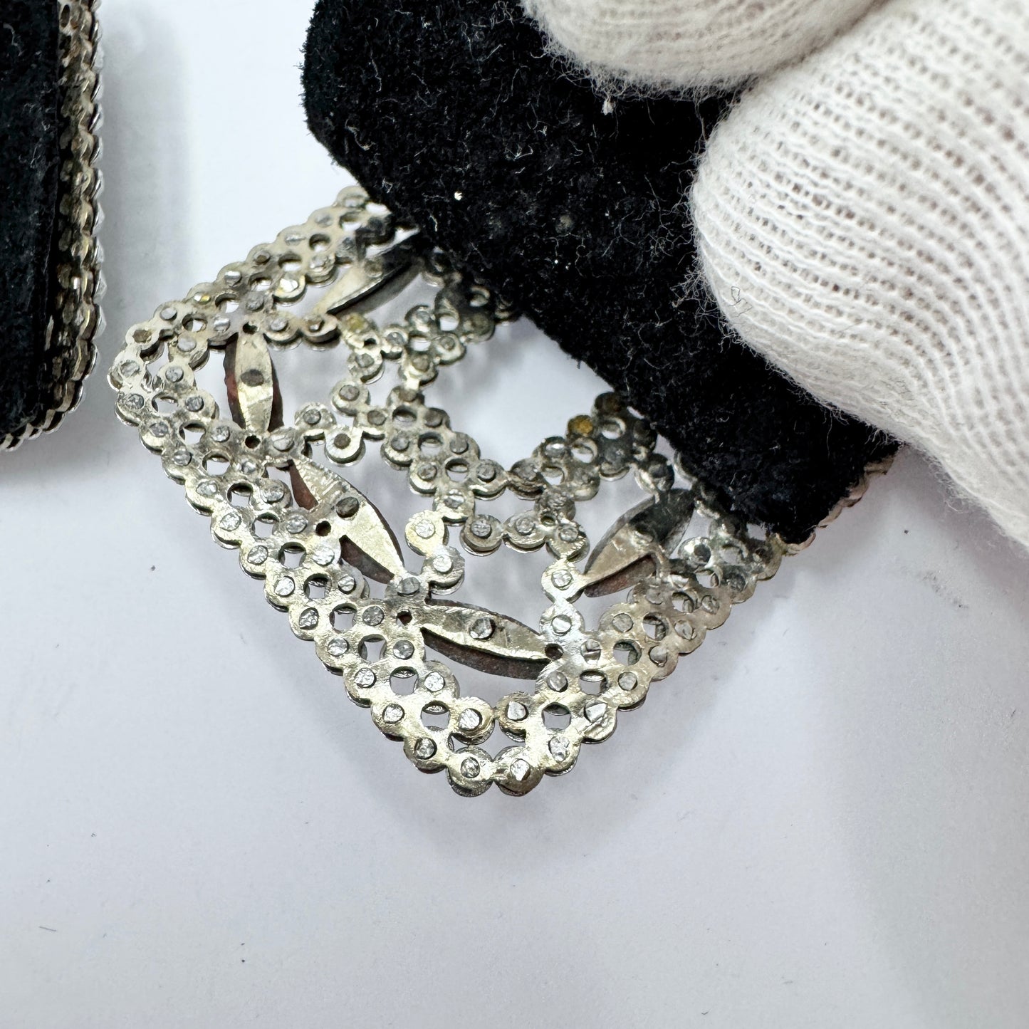 Very charming antique Victorian cut steel shoe buckles. Europe 1800s.