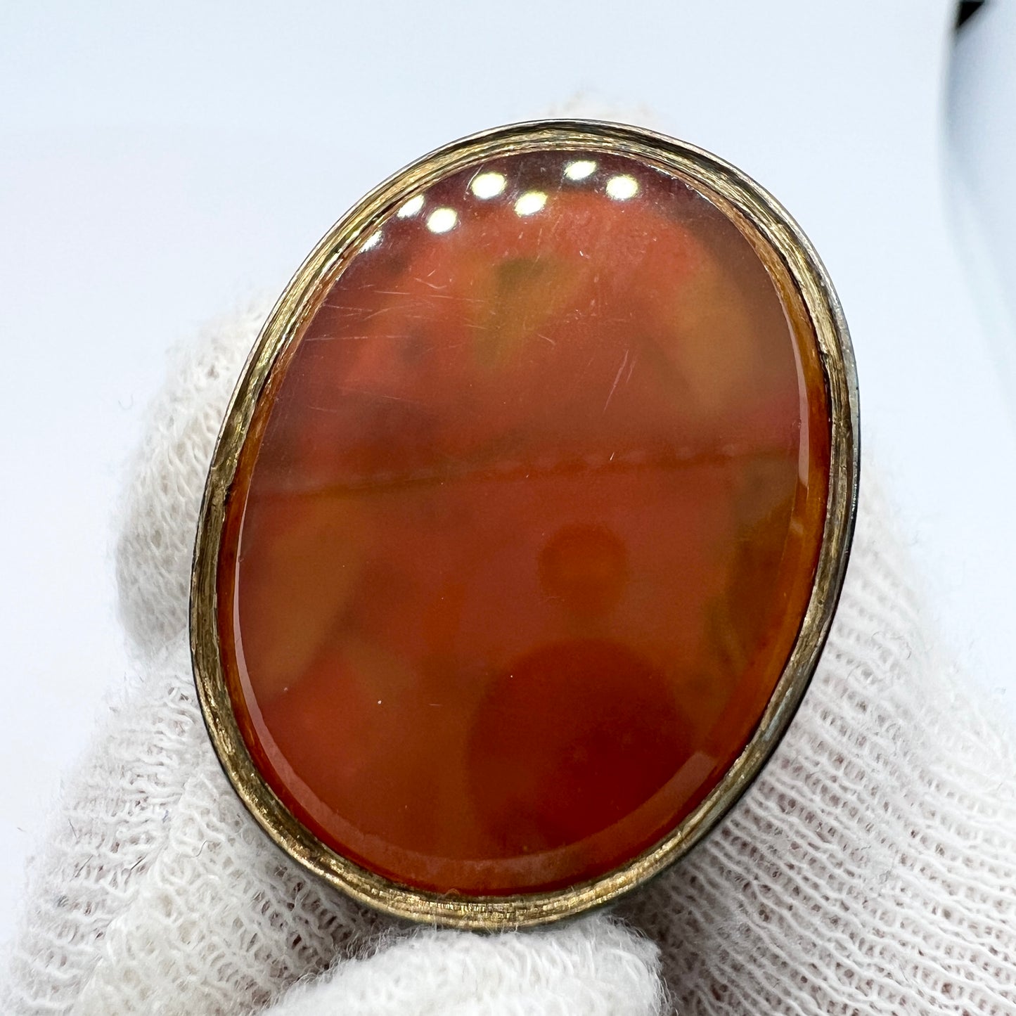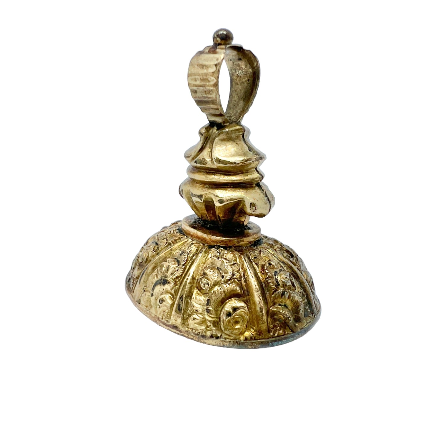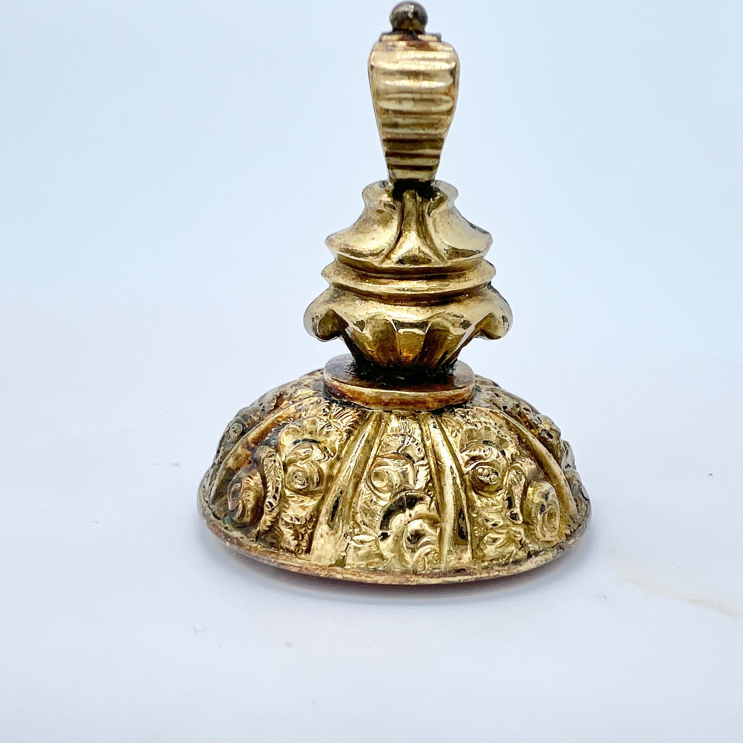 Very charming Victorian gilt bronze carnelian wax seal stamp pendant. c mid 1800s.
