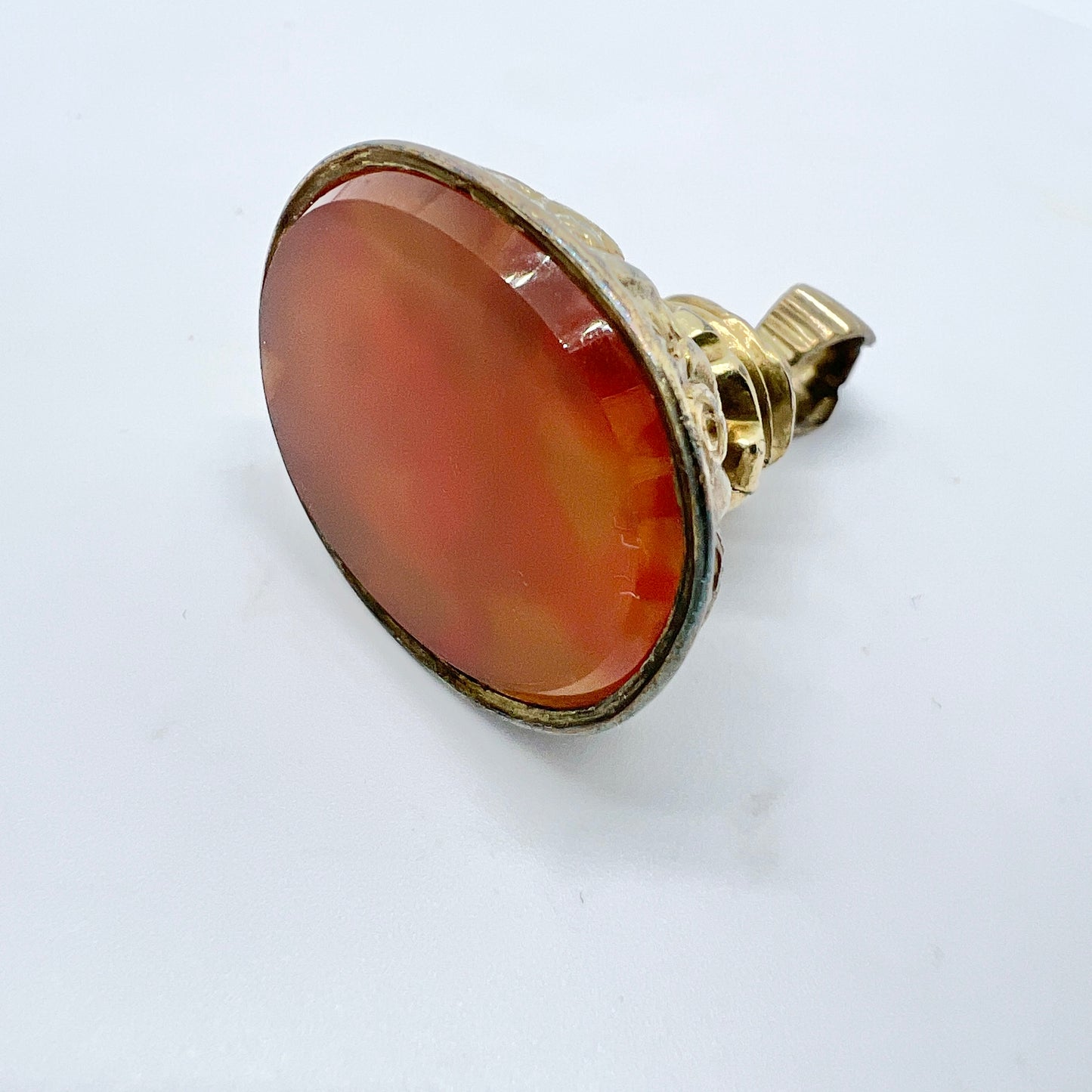 Antique Victorian Gilt Bronze Carnelian Fob Seal Stamp Pendant